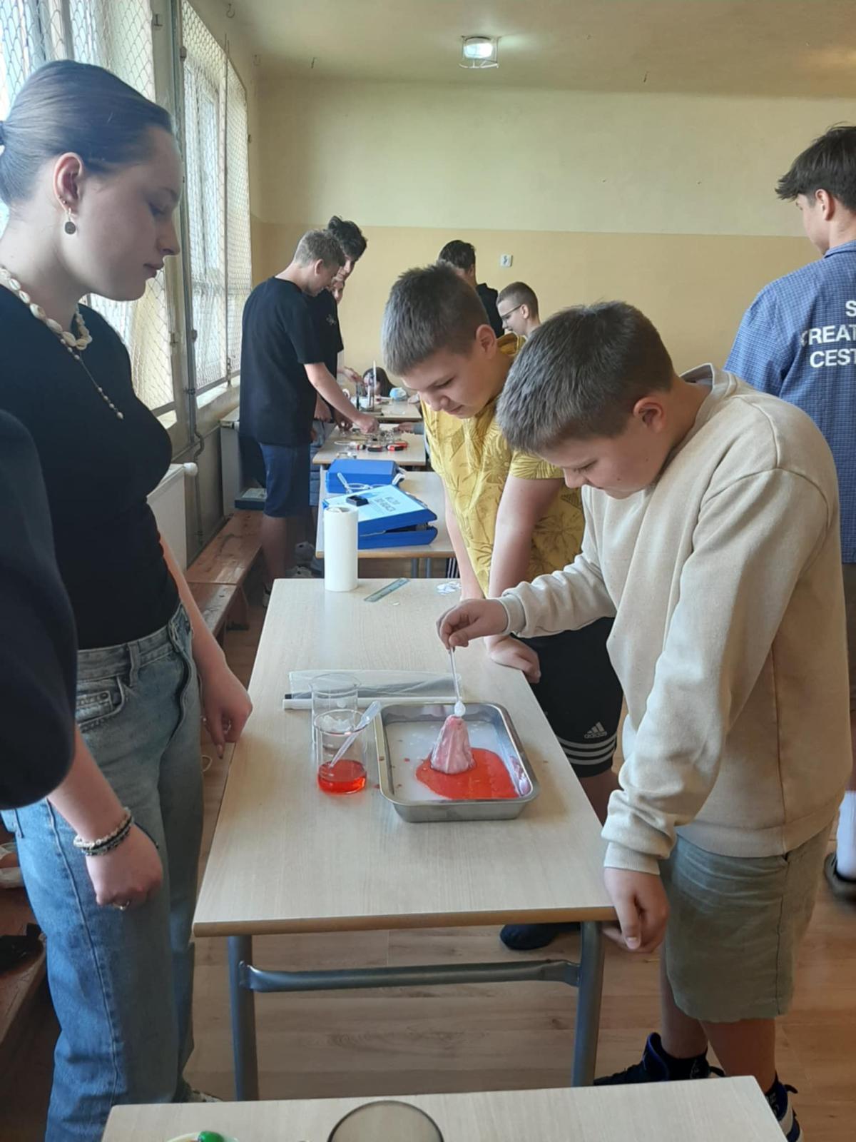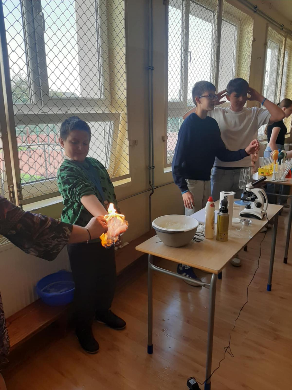 24 kwietnia w naszej szkole odbył się Dzień Doświadczeń który dostarczył uczniom wielu okazji do rozwijania umiejętności analitycznych oraz eksperymentowania z różnymi zjawiskami przyrodniczymi. Można było zobaczyć tęcze w probówce i na talerzyku, wulkan – widowiskowa reakcja chemiczna imitująca erupcję wulkanu, badanie pH substancji, próby ogniowe, tajemniczy atrament, uciekający pieprz, baloniki gazowe, preparaty mikroskopowe pyłku kwiatowego.