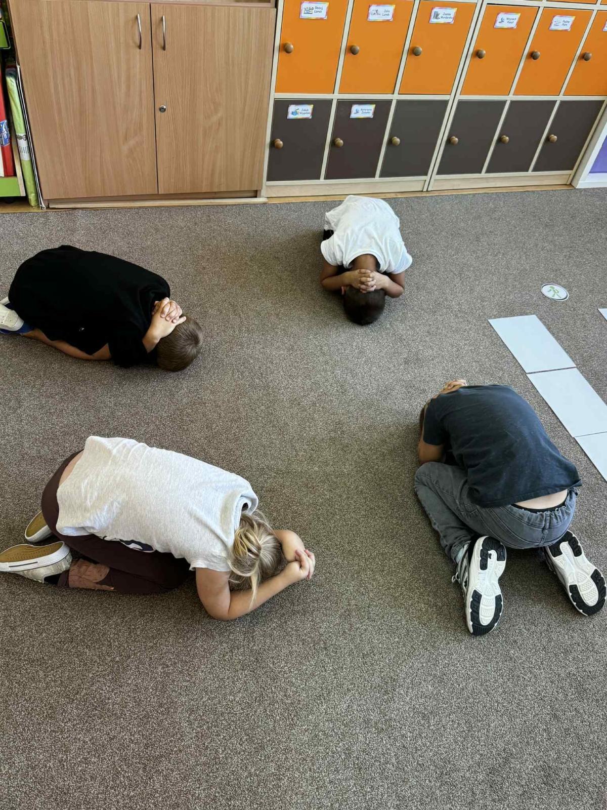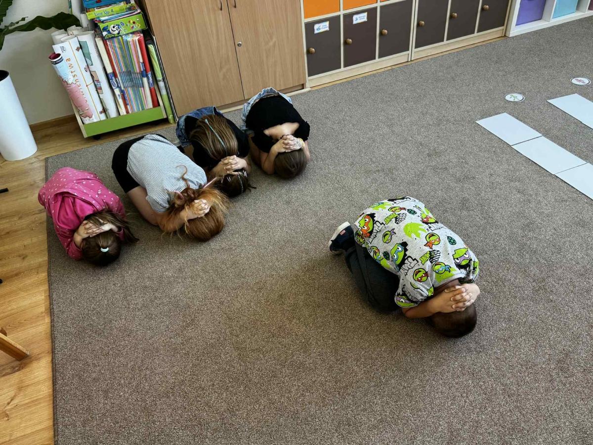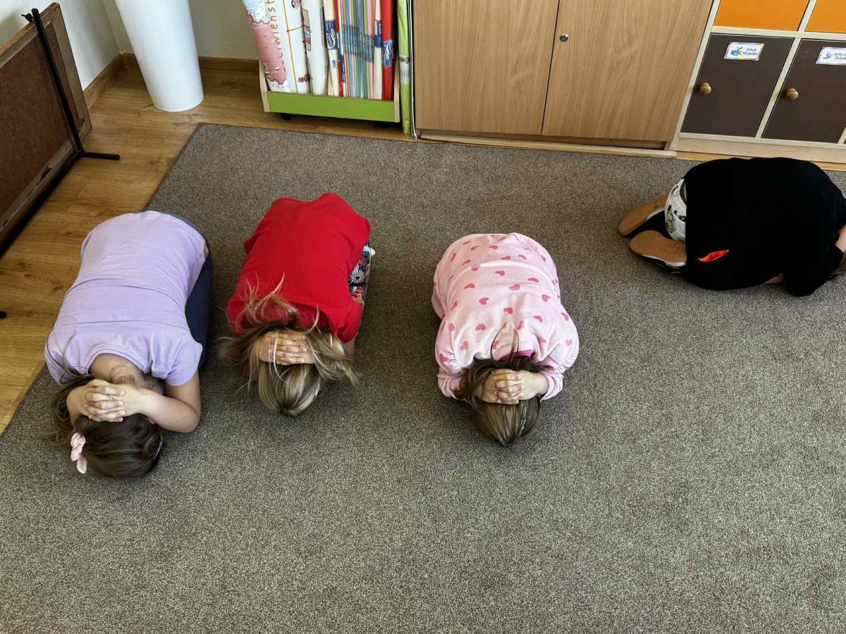 Uczniowie spotkali się również z głównym bohaterem projektu „Akademia Bezpiecznego Puchatka” – Puchatkiem, który towarzyszył im w odkrywaniu zasad bezpieczeństwa zarówno na drodze, jak i w szkole. Z zainteresowaniem słuchali czytanego tekstu, odpowiadali na pytania, recytowali wiersz Wandy Chotomskiej „Gdy zamierzasz przejść przez ulicę”, a także odgrywali scenki dotyczące bezpiecznego przechodzenia przez jezdnię. Podczas zajęć uczniowie ćwiczyli także pozycję bezpieczną, którą należy przyjąć w sytuacji ataku psa na drodze.