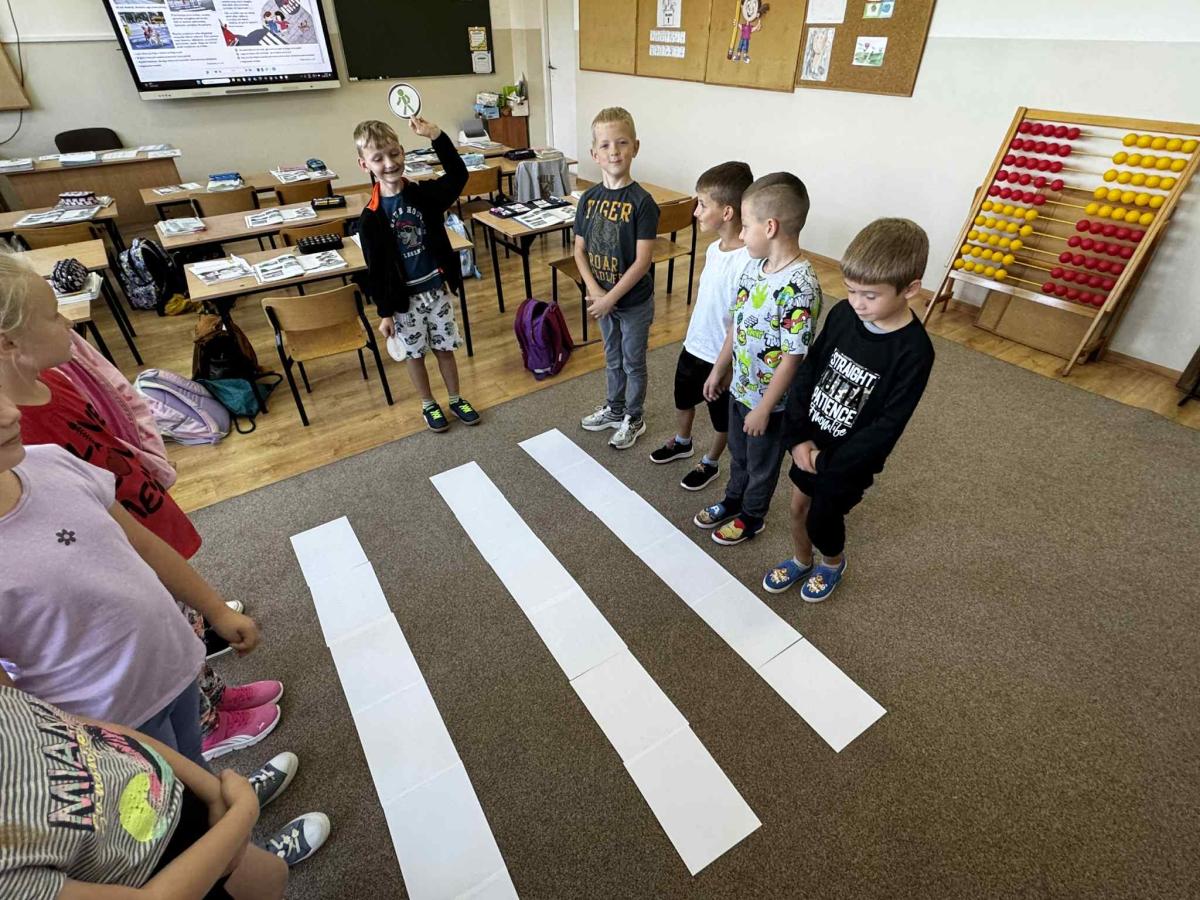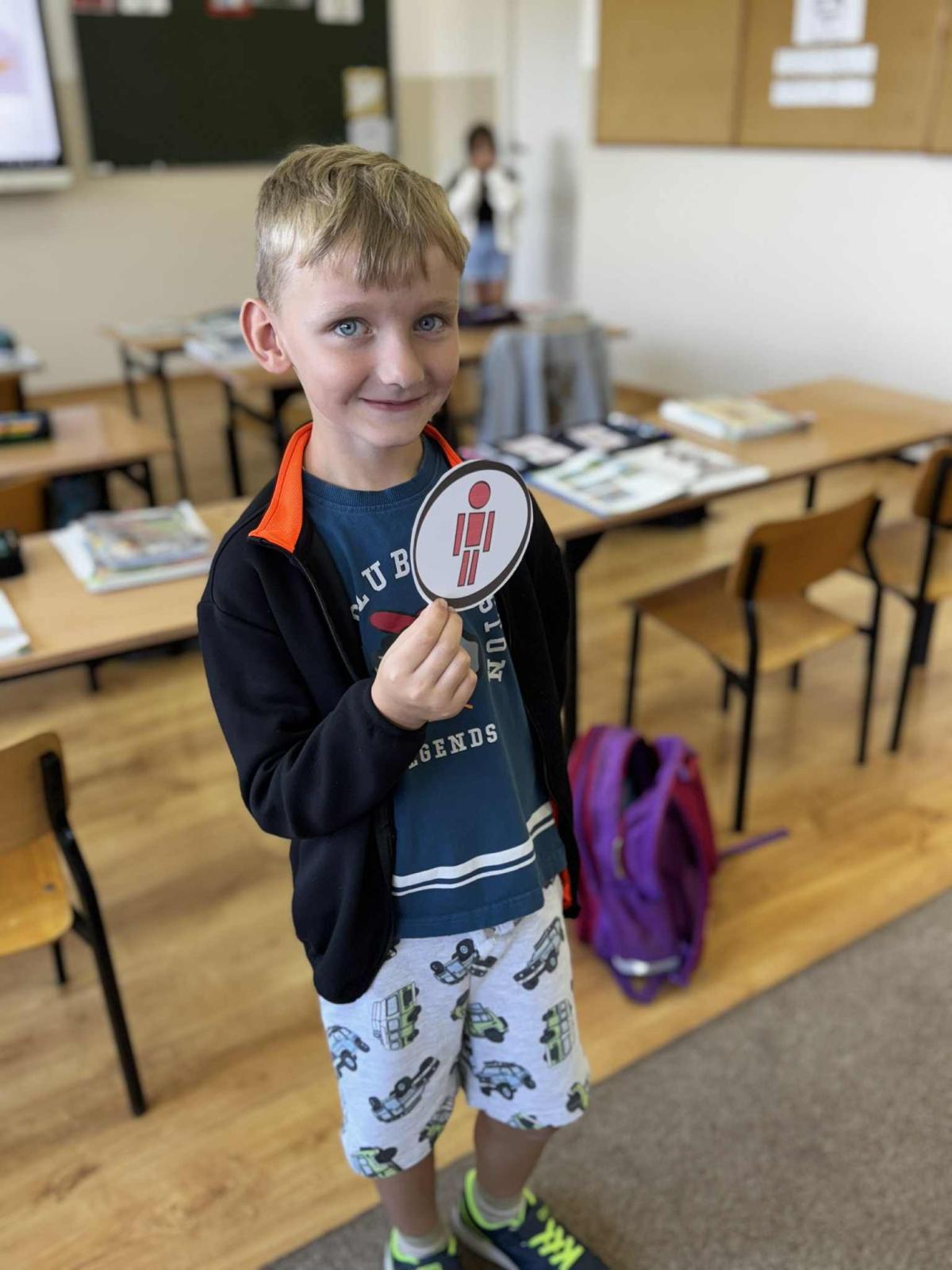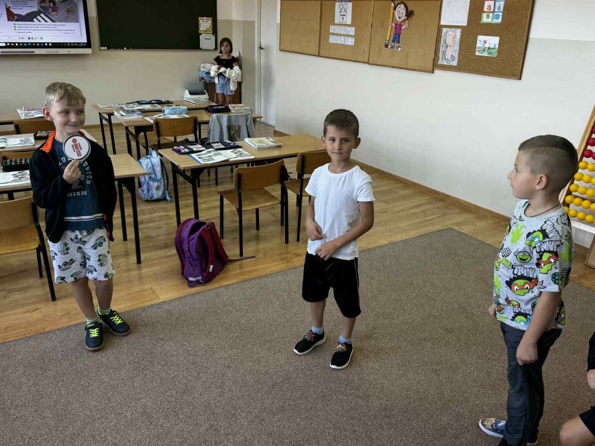 Podczas lekcji uczniowie omawiali sytuacje sprzyjające bezpiecznemu poruszaniu się oraz te, których należy unikać, aby nie doszło do nieszczęścia. Pierwszoklasiści poznali różne rodzaje znaków drogowych: ostrzegawcze, nakazujące, zakazujące i informacyjne.
