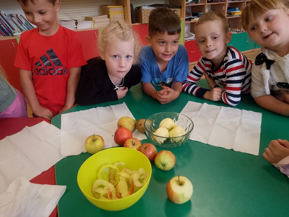 poznaliśmy budowę jabłka – dzieci odkryły, co kryje się w środku i do czego potrzebne są pestki,