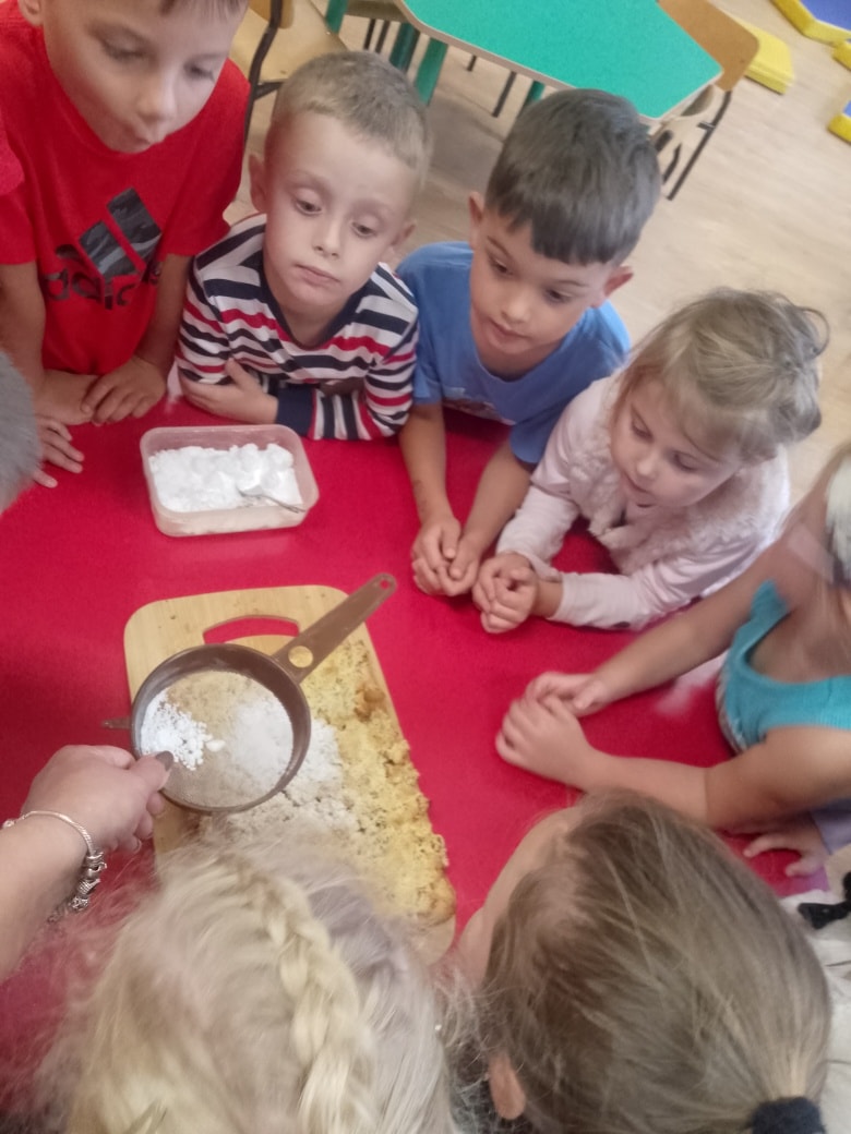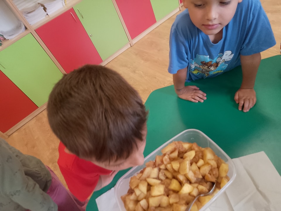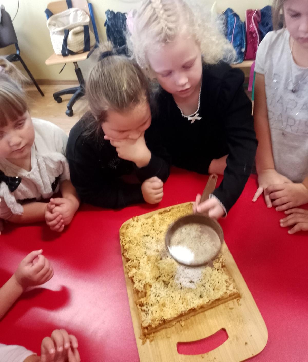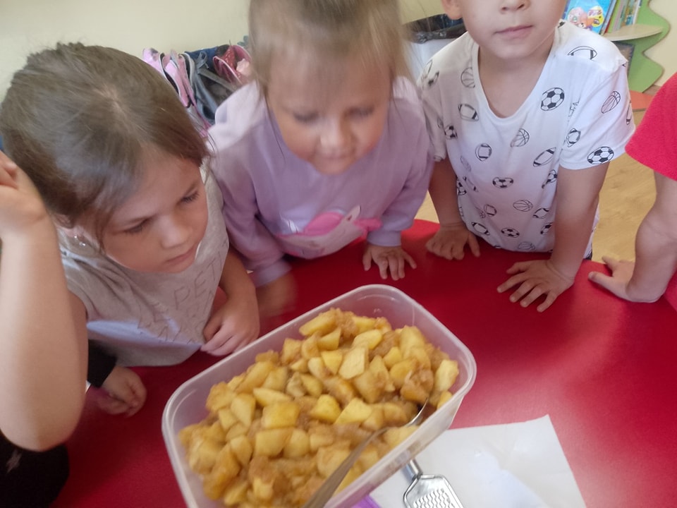 a na koniec upiekliśmy pyszną szarlotkę, która wszystkim smakowała wyśmienicie.