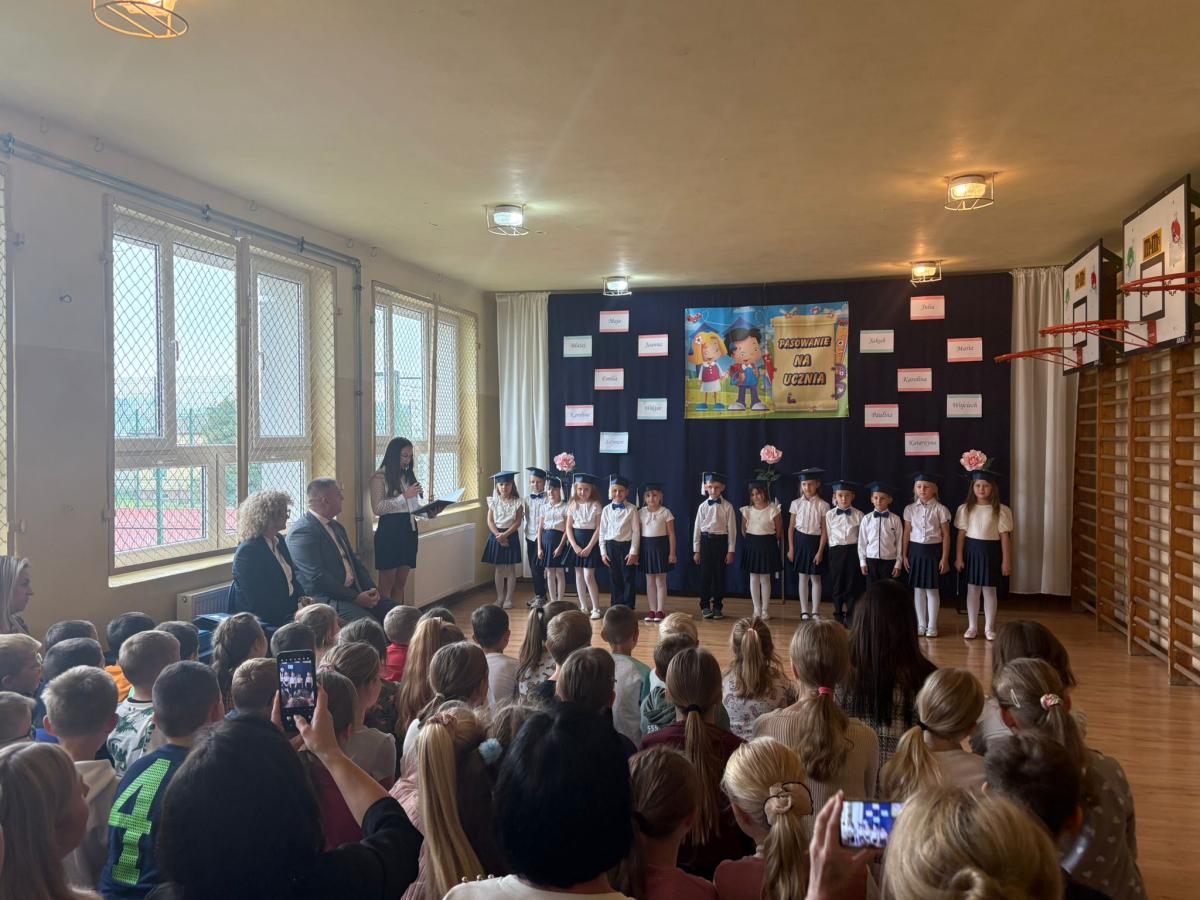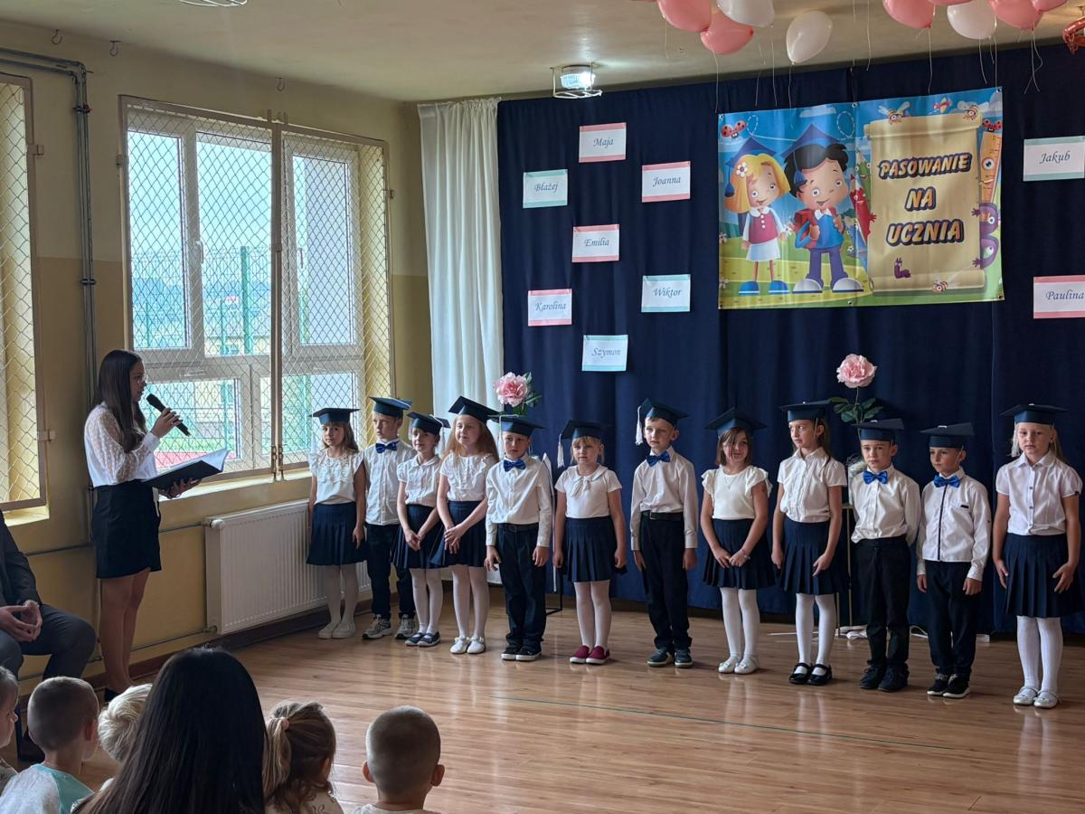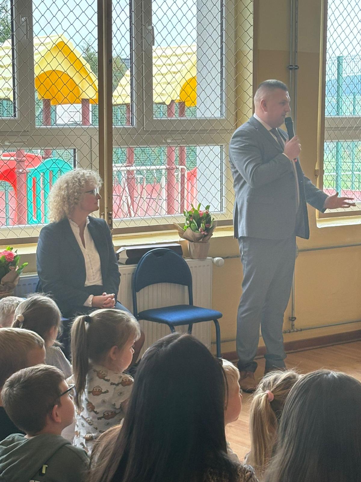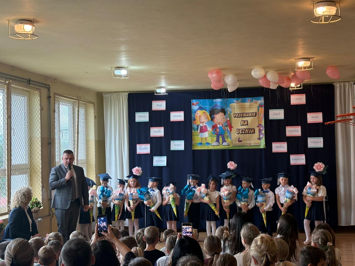 Uroczystość rozpoczął pan dyrektor Andrzej Potoniec, który serdecznie powitał najmłodszych uczniów oraz ich rodziny. W swoim przemówieniu życzył dzieciom powodzenia w nauce, wielu sukcesów i radosnych chwil spędzonych w murach szkoły.