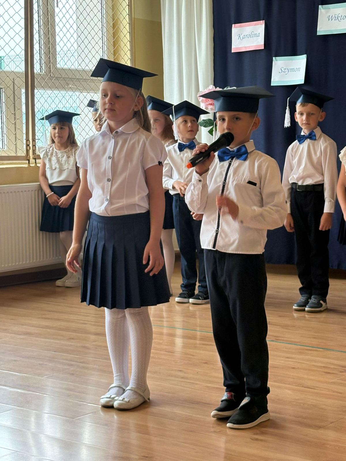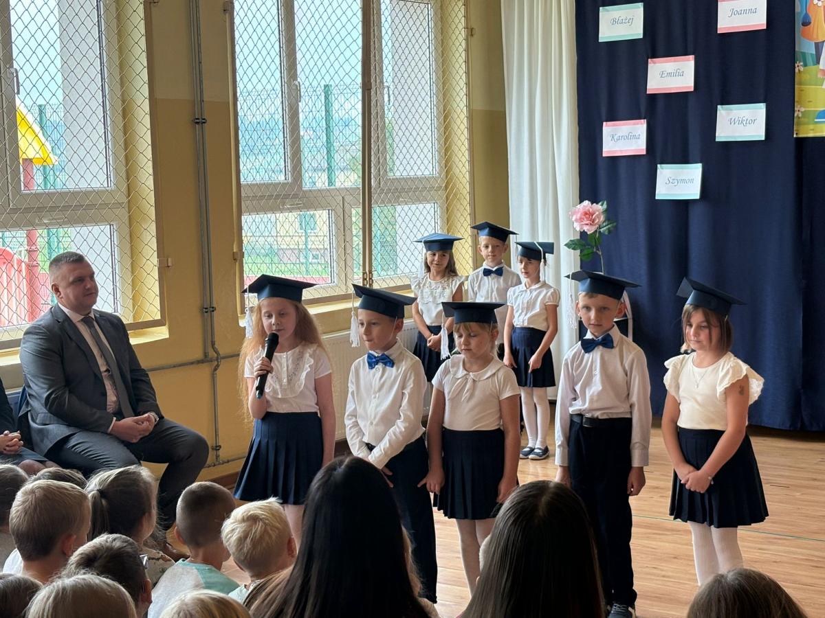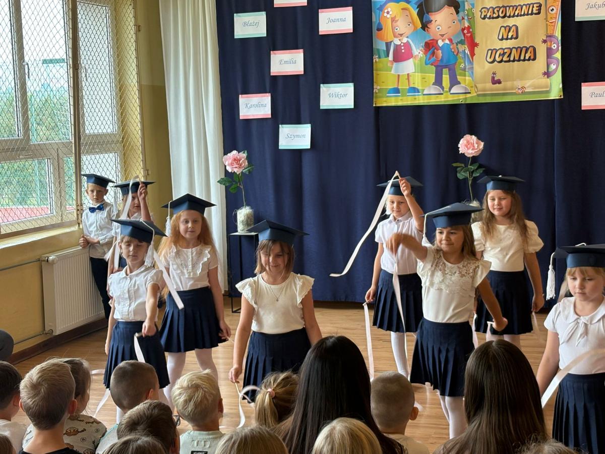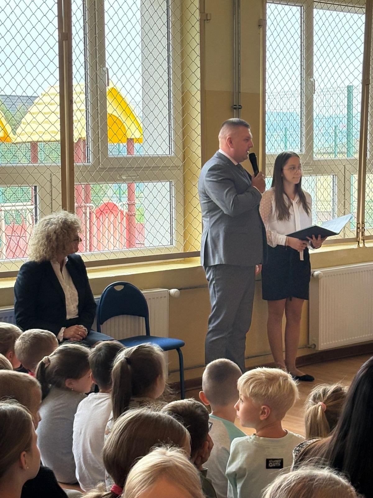 Uroczystość rozpoczął pan dyrektor Andrzej Potoniec, który serdecznie powitał najmłodszych uczniów oraz ich rodziny. W swoim przemówieniu życzył dzieciom powodzenia w nauce, wielu sukcesów i radosnych chwil spędzonych w murach szkoły.