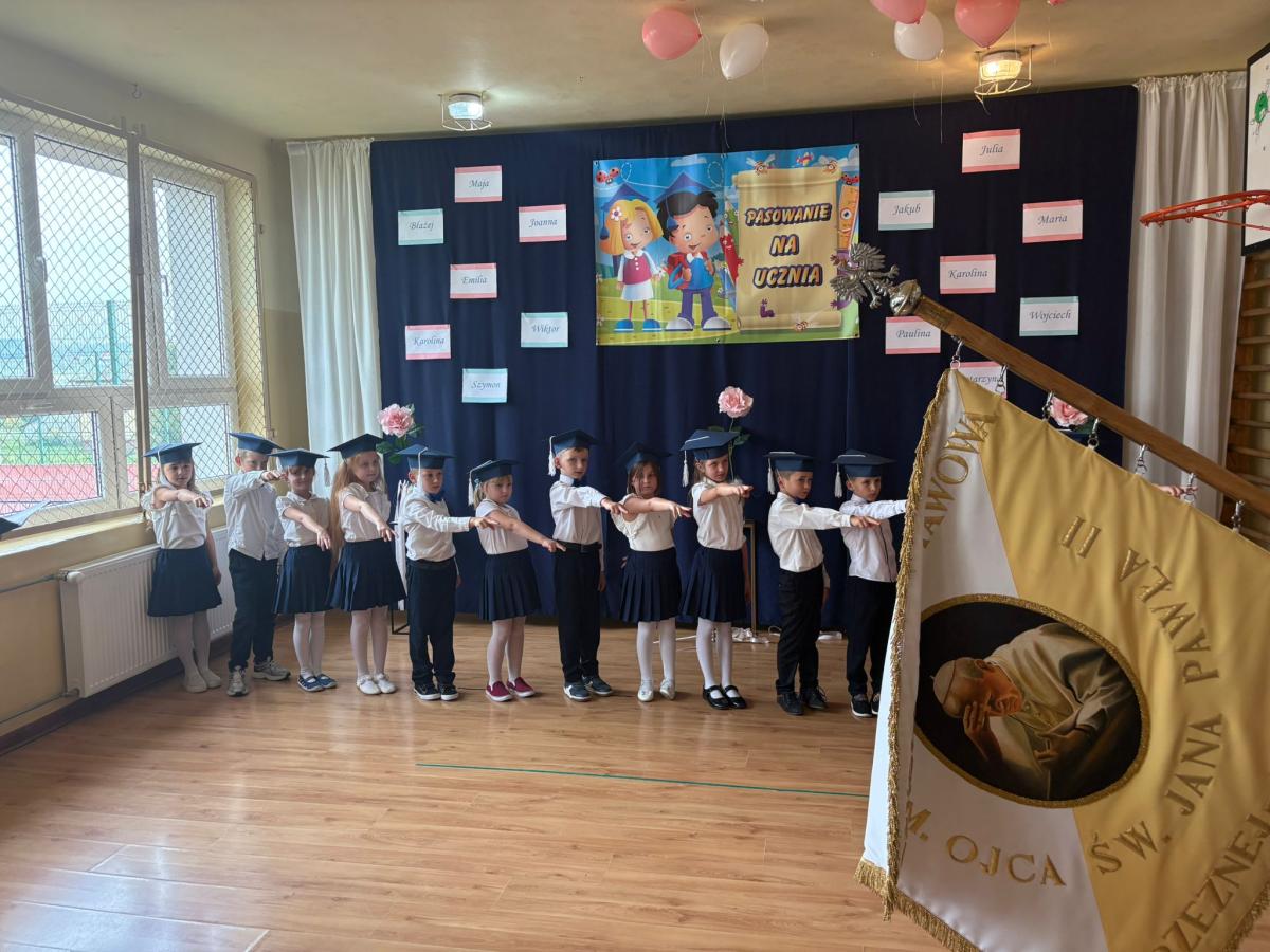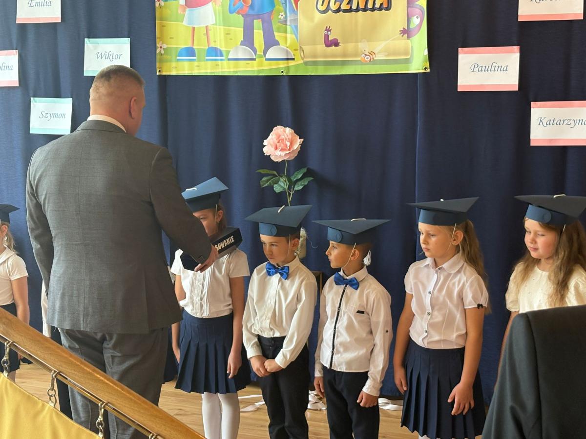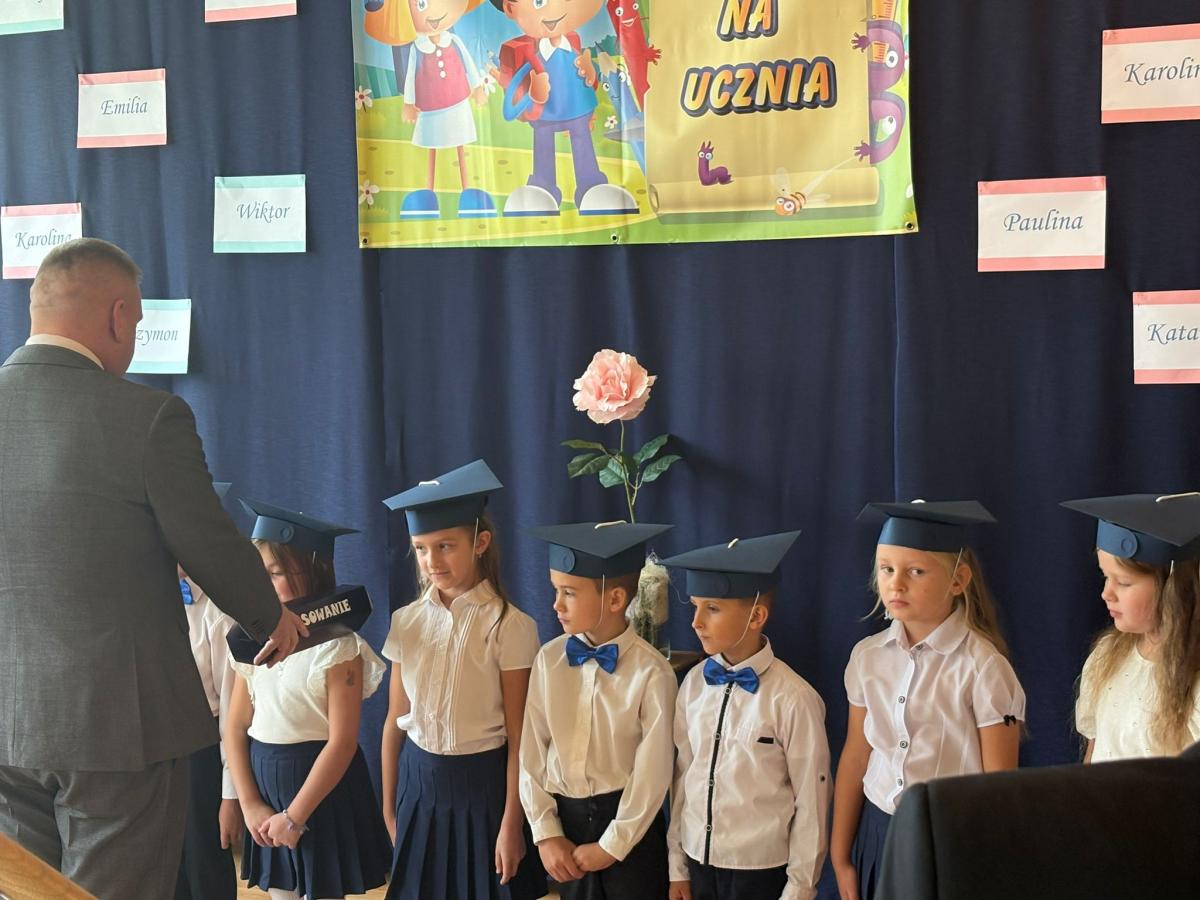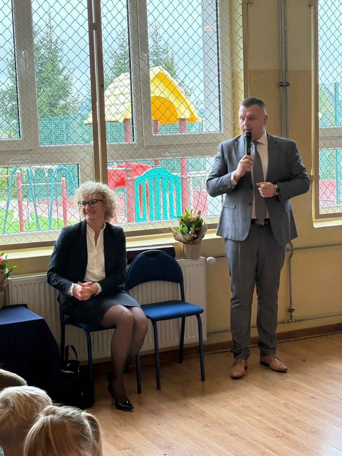 Uroczystość rozpoczął pan dyrektor Andrzej Potoniec, który serdecznie powitał najmłodszych uczniów oraz ich rodziny. W swoim przemówieniu życzył dzieciom powodzenia w nauce, wielu sukcesów i radosnych chwil spędzonych w murach szkoły.