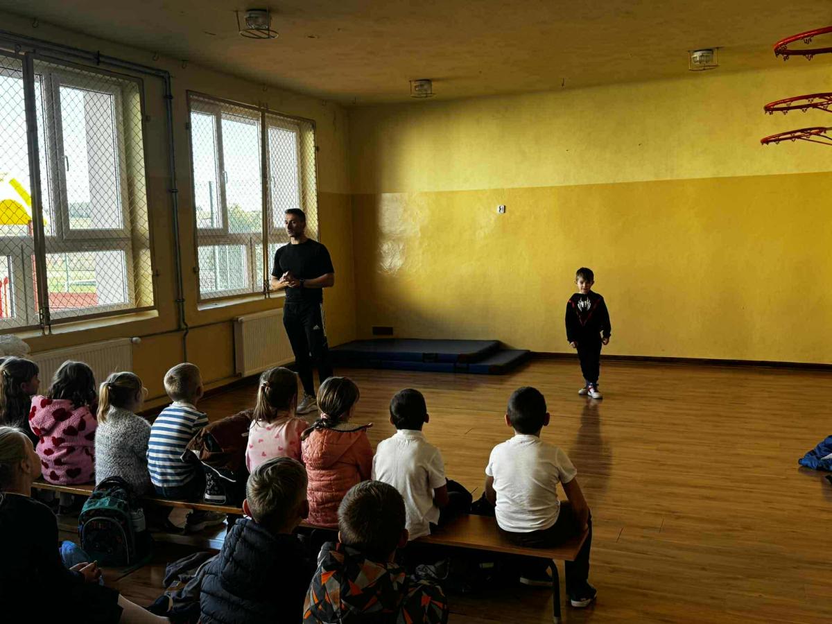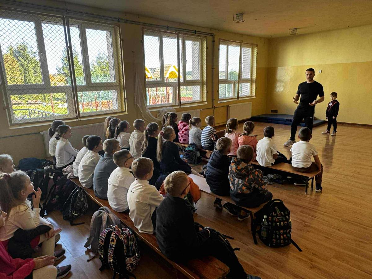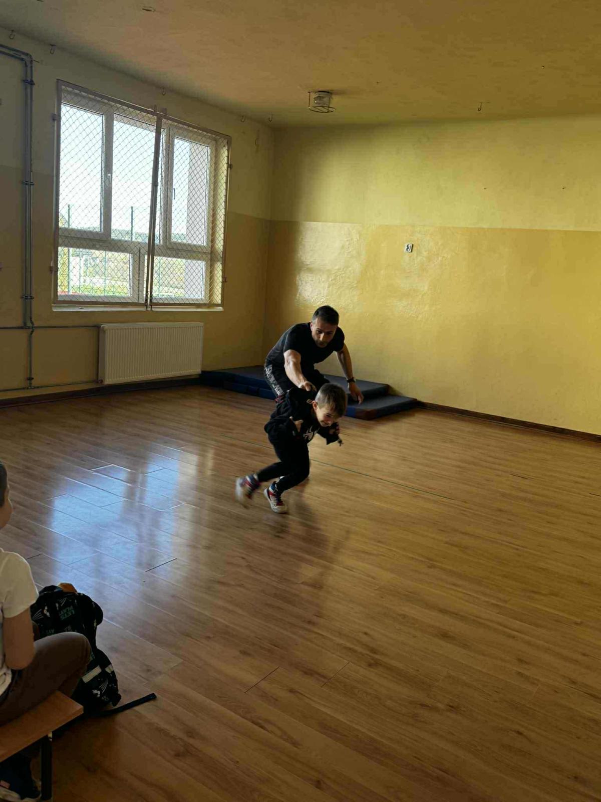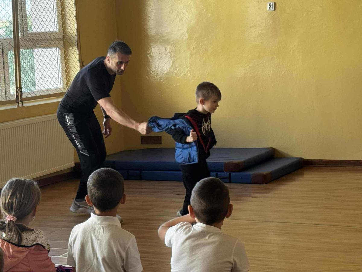 Dzieci dowiedziały się, jak reagować w sytuacjach zaczepienia przez obce osoby, jak rozpoznać potencjalnie niebezpieczne sytuacje oraz do kogo zwrócić się o pomoc. Pan Piotr wraz ze swoim synem zaprezentował praktyczne ćwiczenia, pokazując, w jaki sposób można się uwolnić z niektórych chwytów i zadbać o własne bezpieczeństwo.