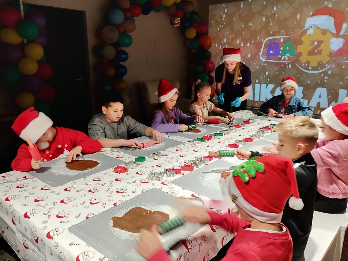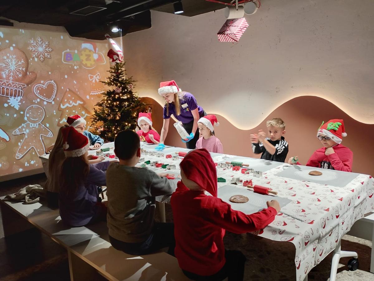 W Centrum Handlowym Gołąbkowice znajduje się magiczne miejsce – Centrum Aktywnej Rozrywki, w którym uczniowie klasy trzeciej spędzili wspaniałe chwile. Dzięki zaangażowaniu Rodziców trzecioklasiści 5 grudnia 2025 r. przeżyli wyjątkową przygodę w świątecznym klimacie pod hasłem – „MIKOŁAJKI W BAZIE” . Swoją przygodę rozpoczęli od Warsztatów pieczenia pierników – wałkowania ciasta, wycinania ciastek, a po upieczeniu ich dekorowania.