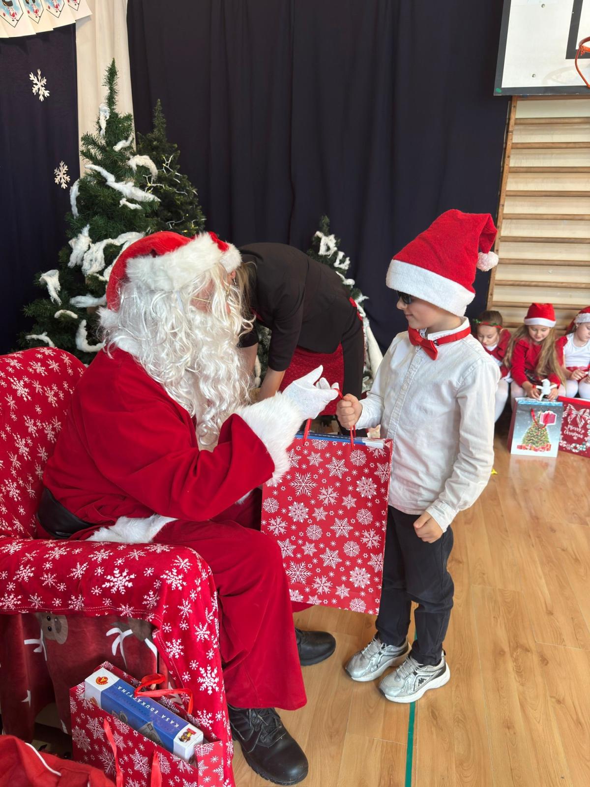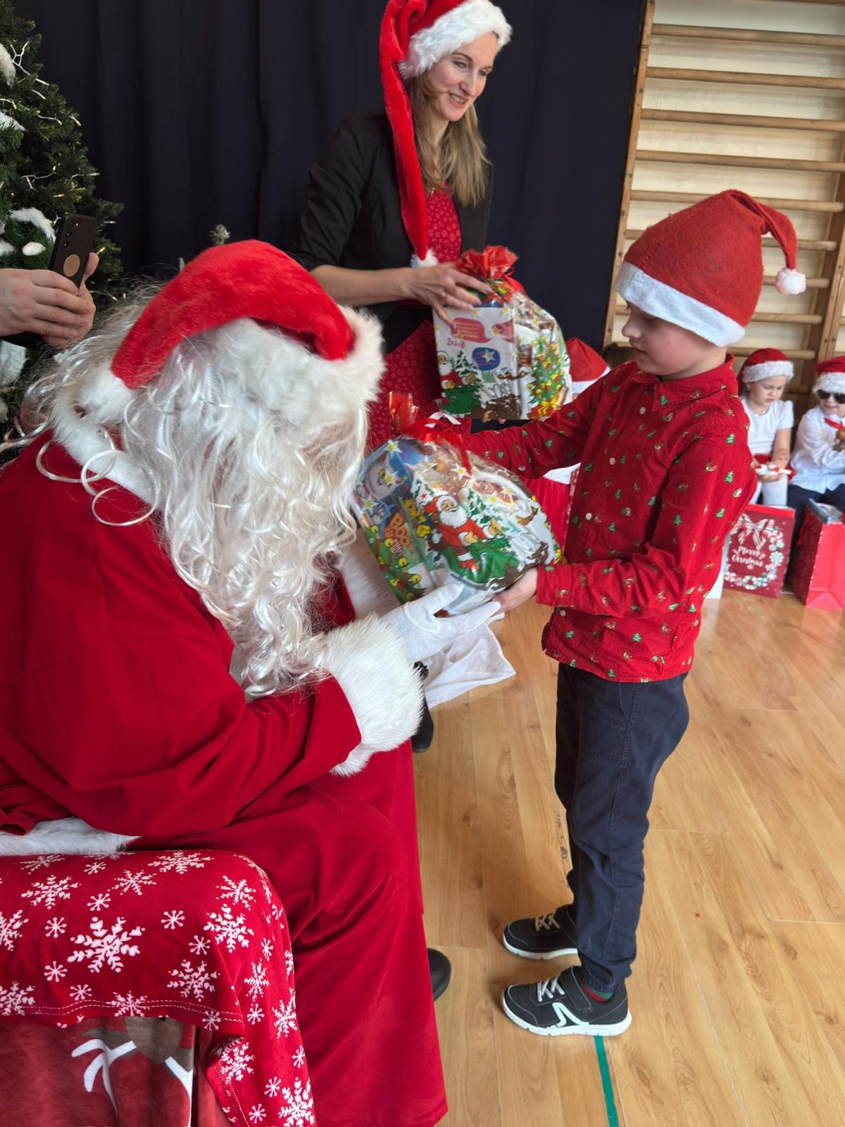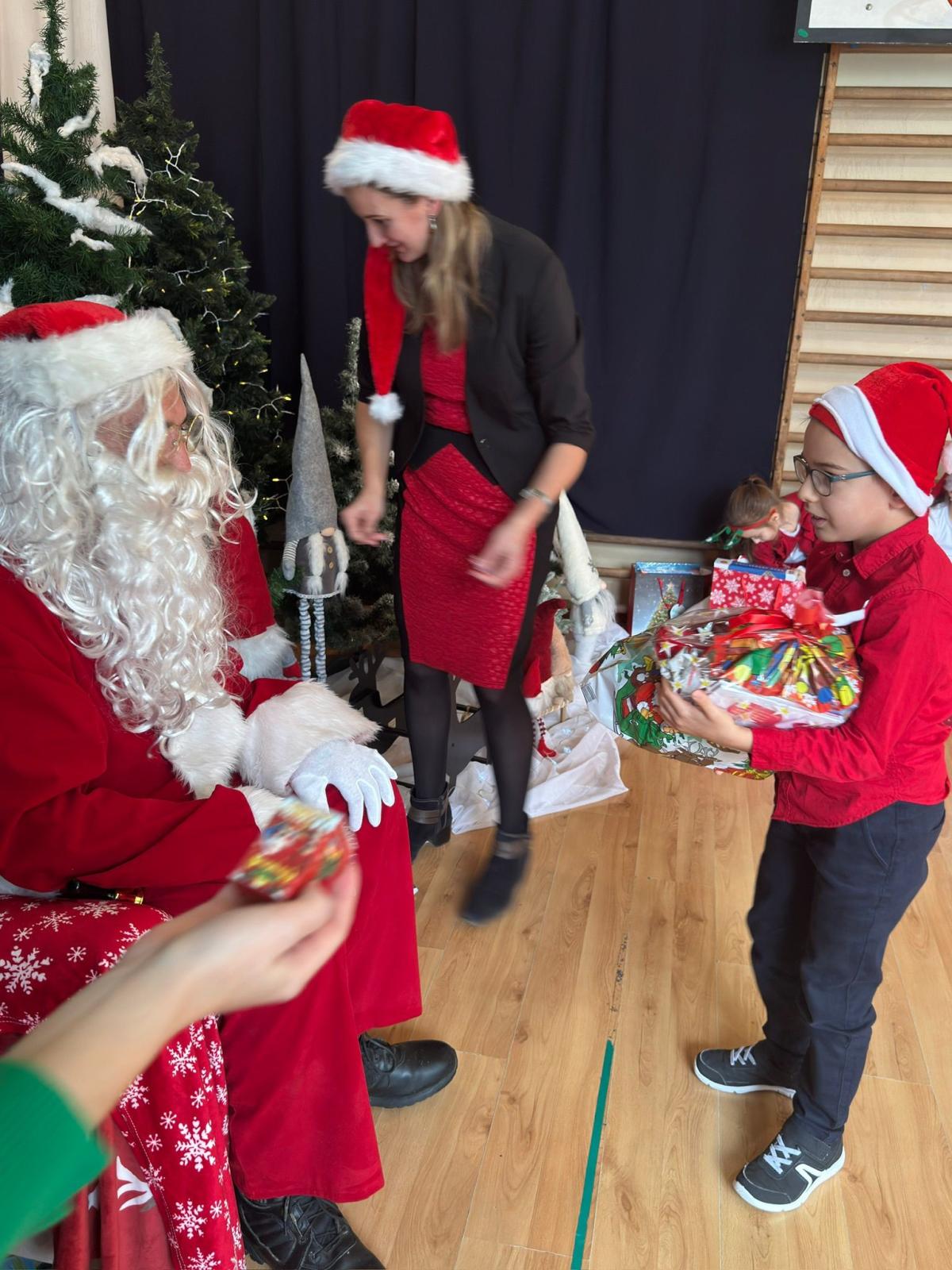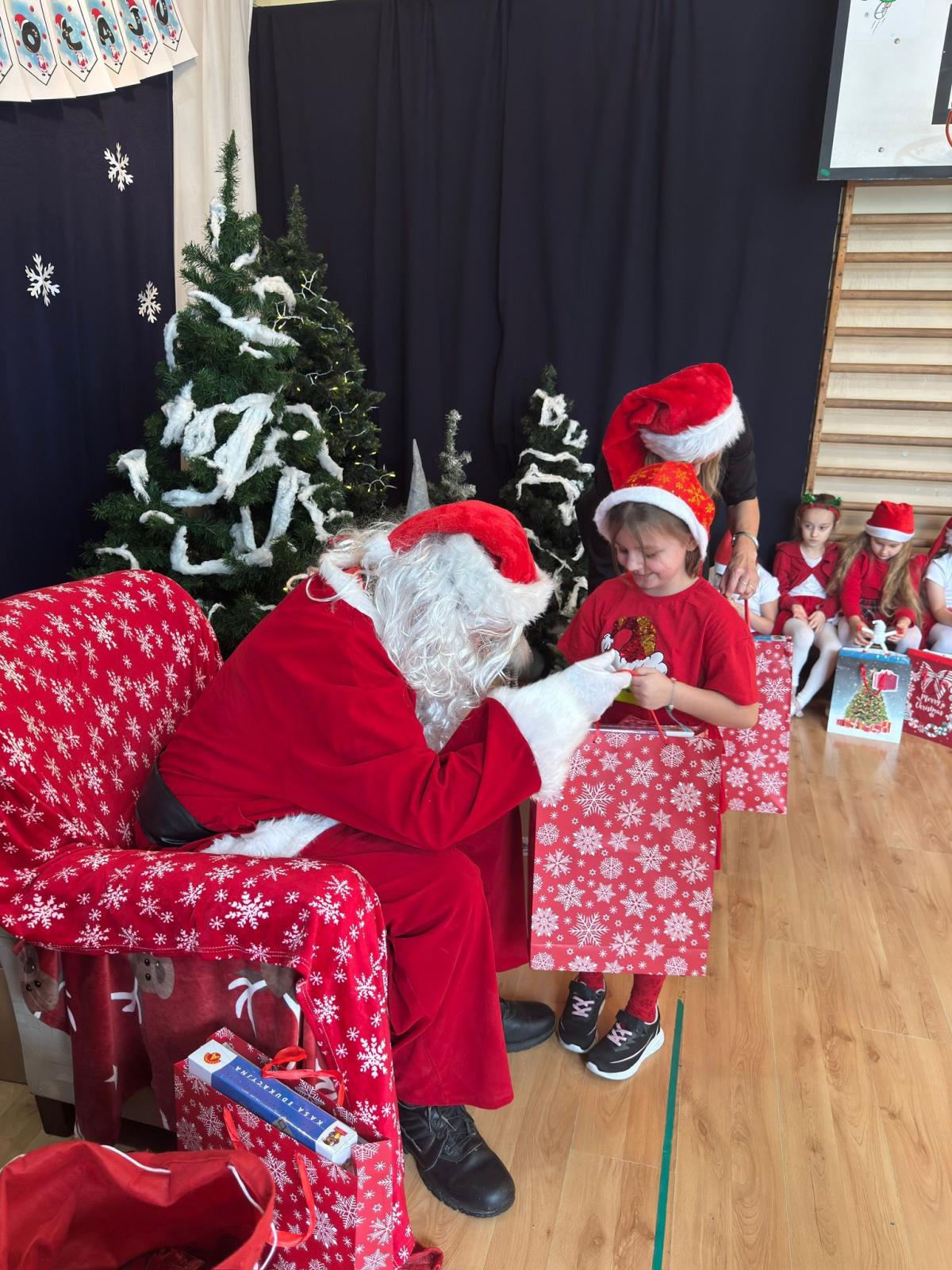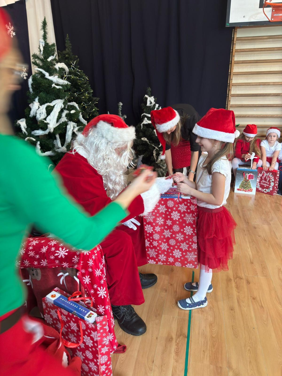 Święty Mikołaj obdarował każdego ucznia wspaniałym upominkiem, a w rozdawaniu prezentów wspierała go Rada Rodziców, której członkowie pełnili rolę dyskretnych pomocników. Mikołaj odwiedził również starszych uczniów z klas 4–8, przekazując im drobne, lecz pełne serca podarunki.