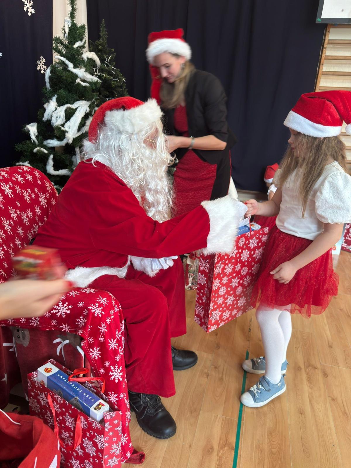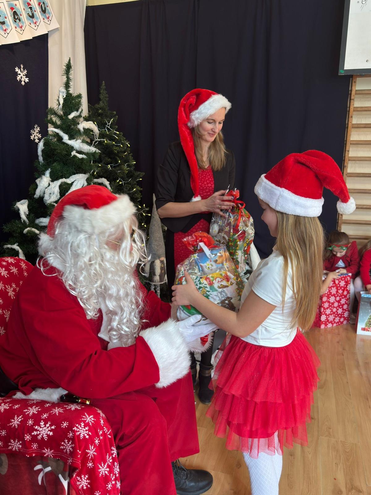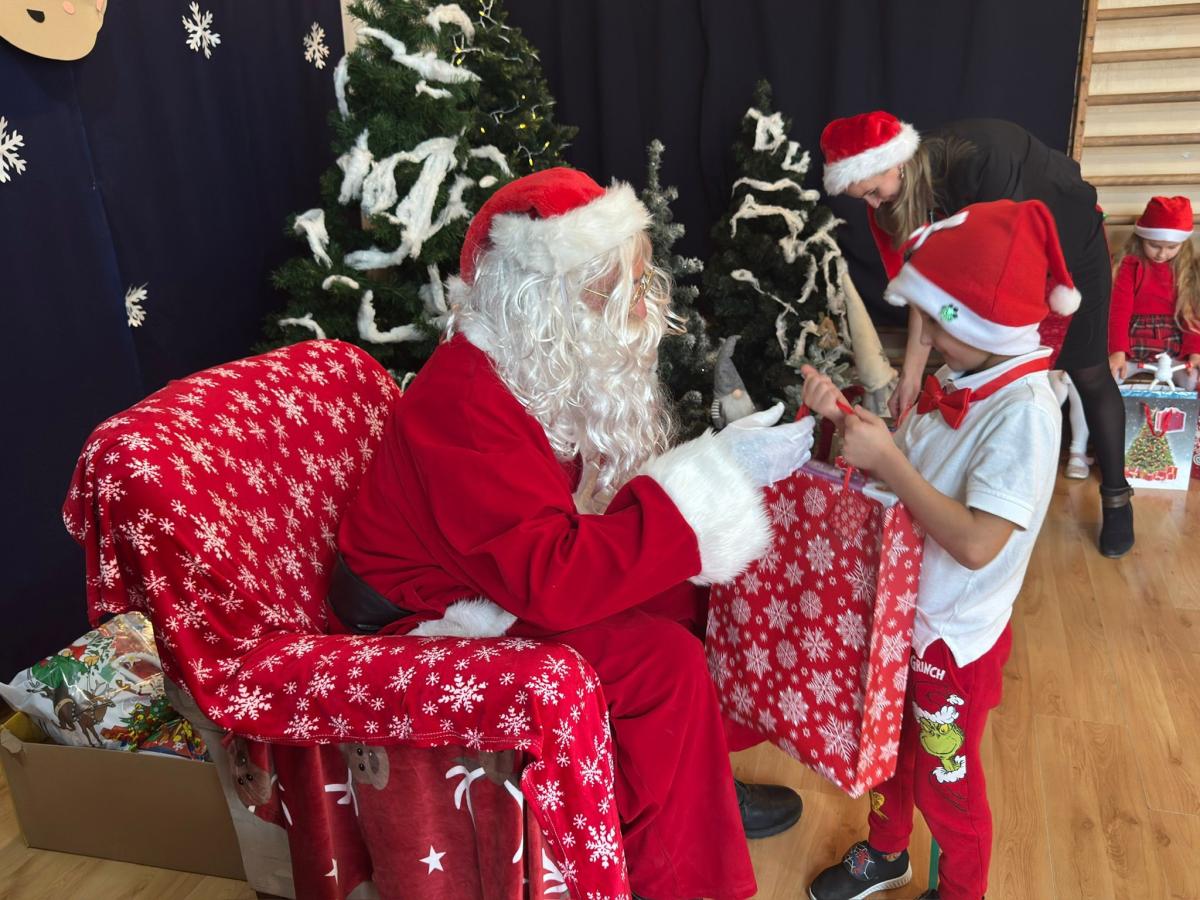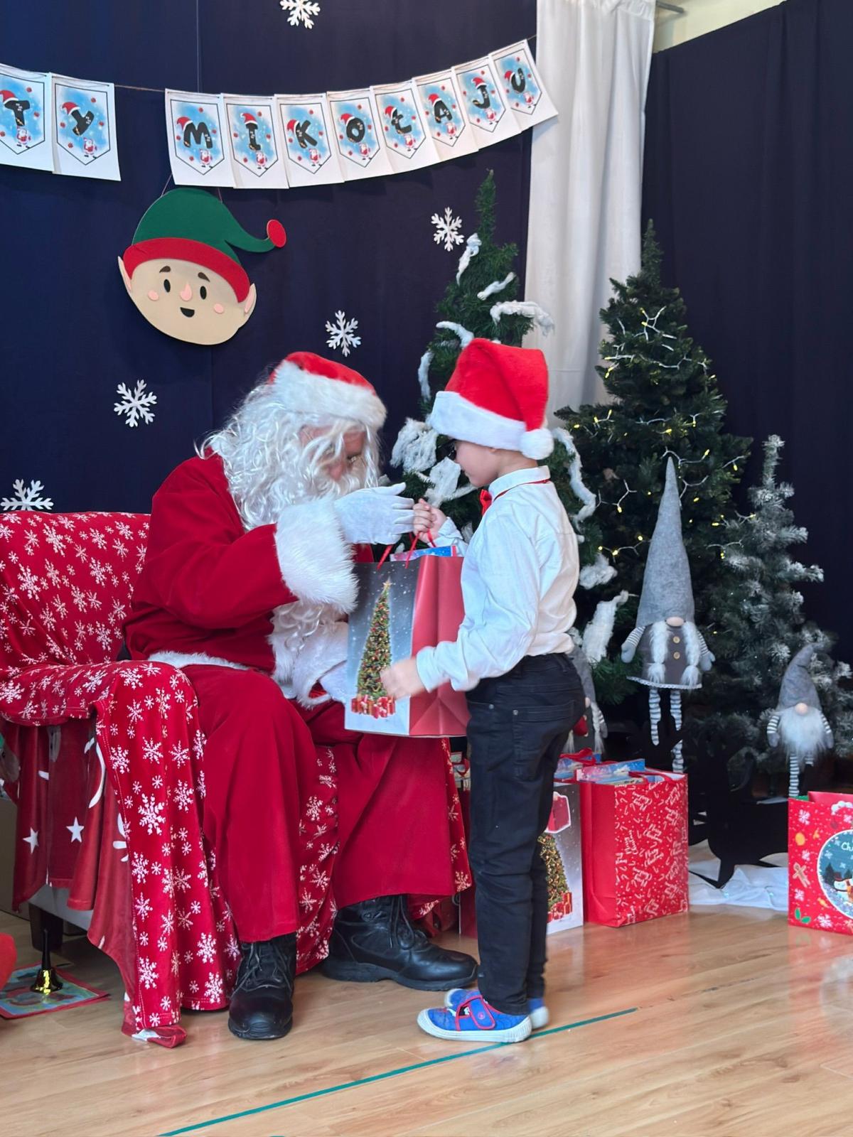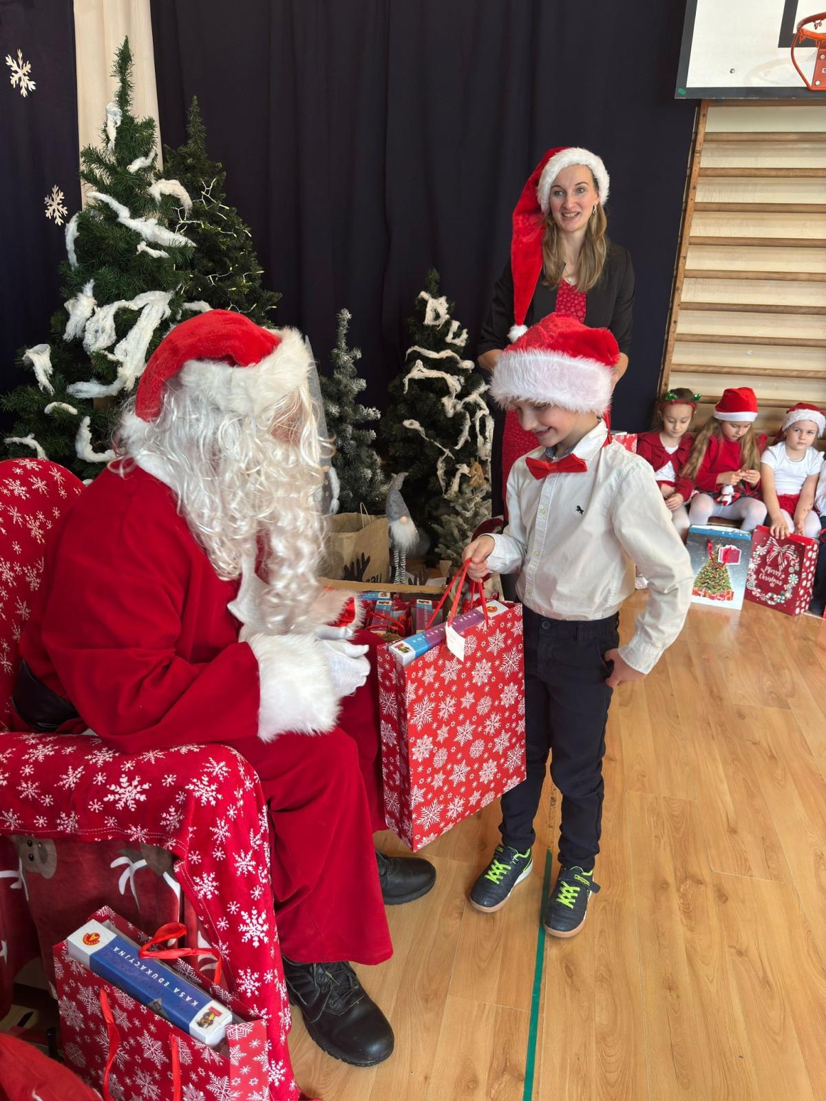 Święty Mikołaj obdarował każdego ucznia wspaniałym upominkiem, a w rozdawaniu prezentów wspierała go Rada Rodziców, której członkowie pełnili rolę dyskretnych pomocników. Mikołaj odwiedził również starszych uczniów z klas 4–8, przekazując im drobne, lecz pełne serca podarunki.