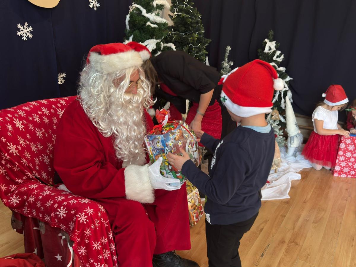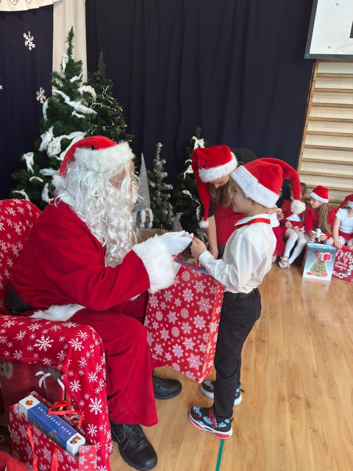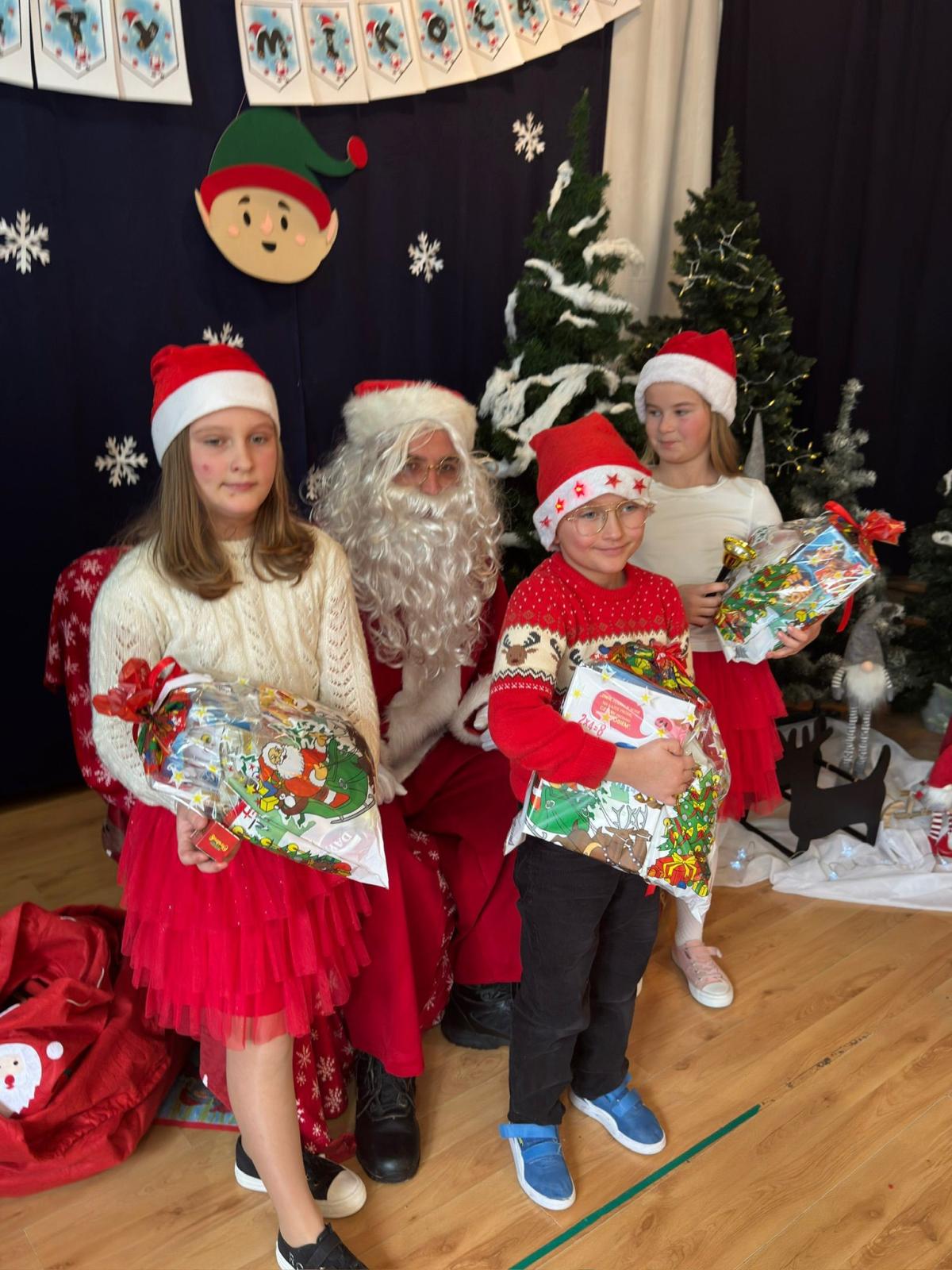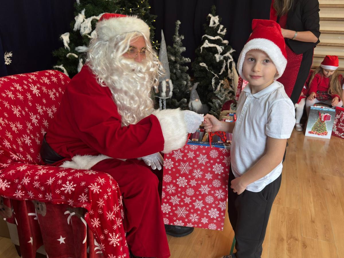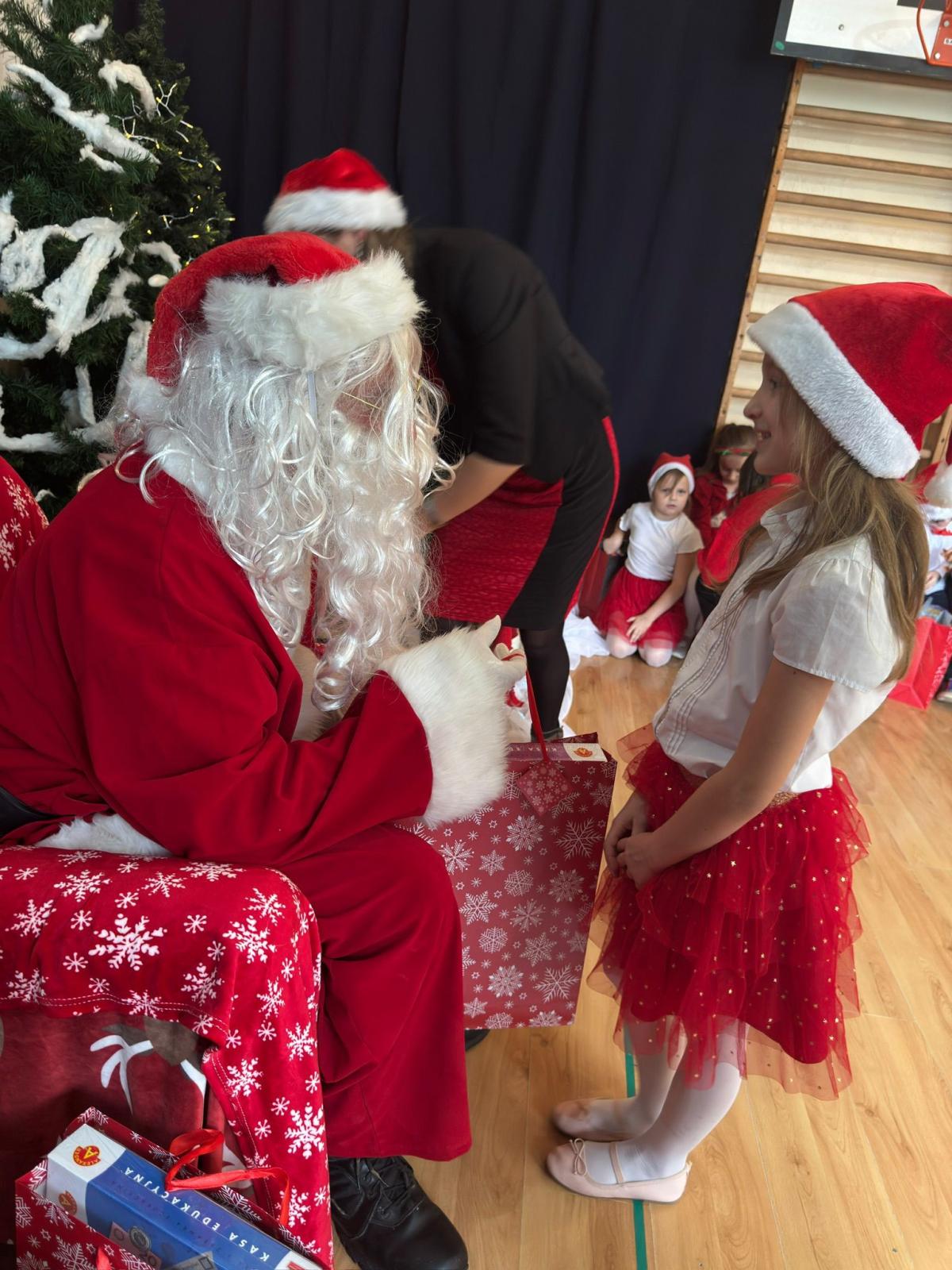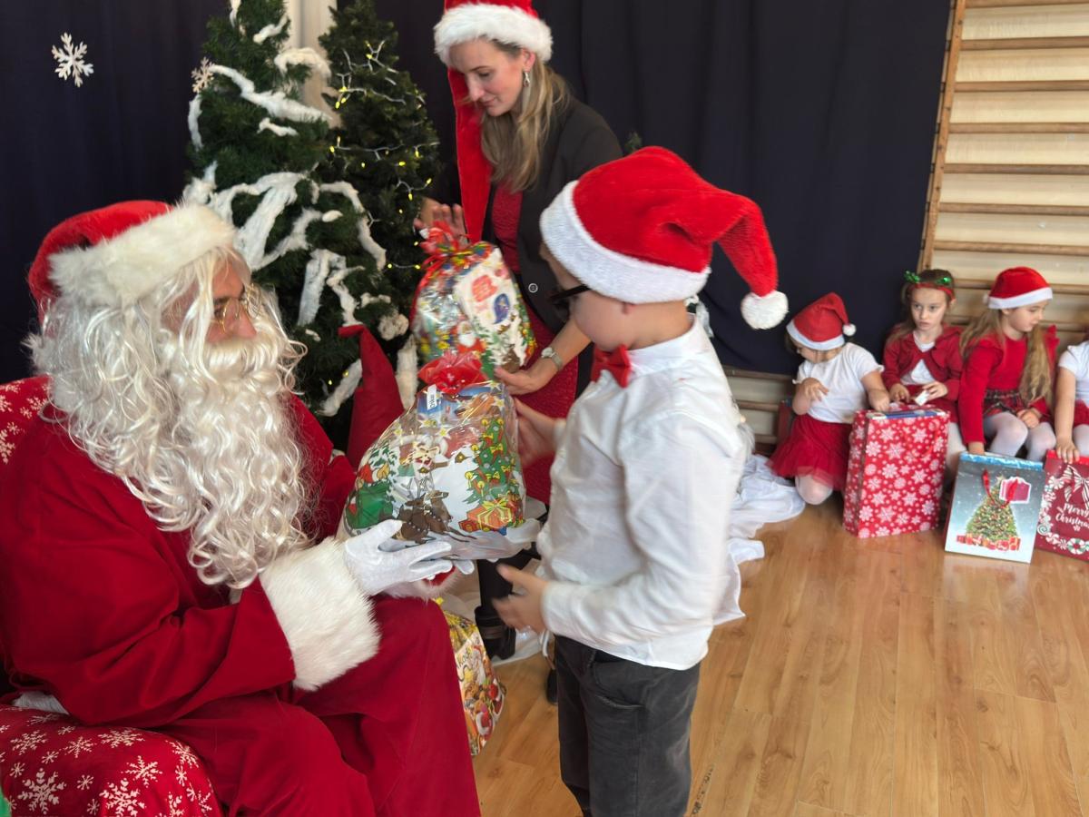 Święty Mikołaj obdarował każdego ucznia wspaniałym upominkiem, a w rozdawaniu prezentów wspierała go Rada Rodziców, której członkowie pełnili rolę dyskretnych pomocników. Mikołaj odwiedził również starszych uczniów z klas 4–8, przekazując im drobne, lecz pełne serca podarunki.