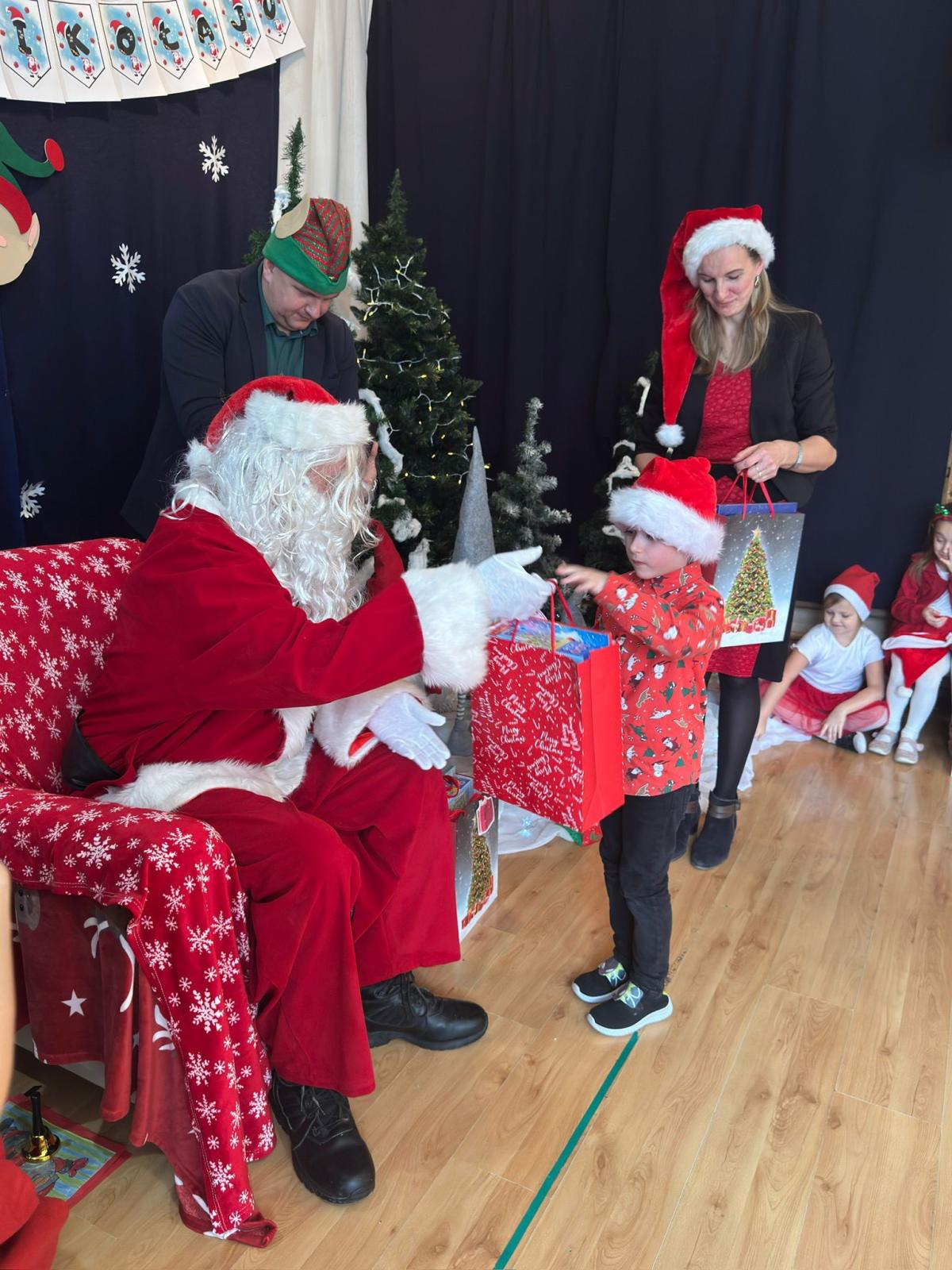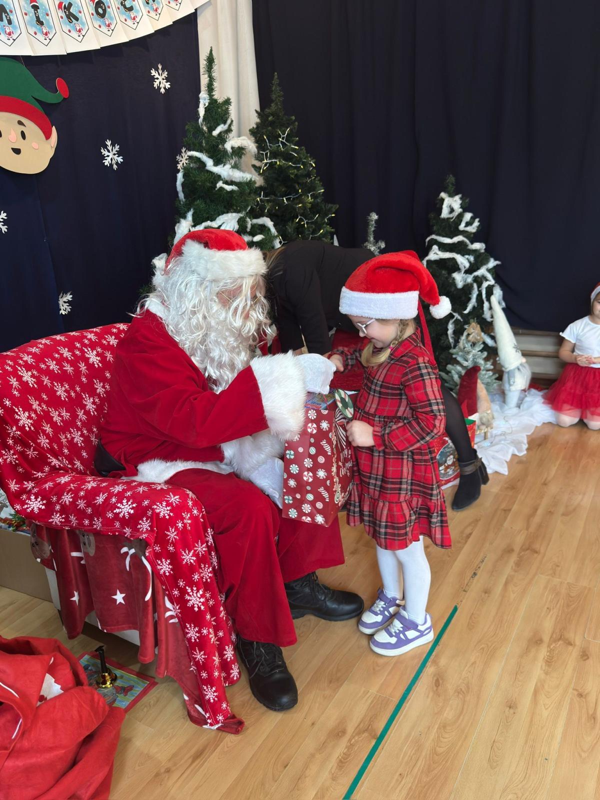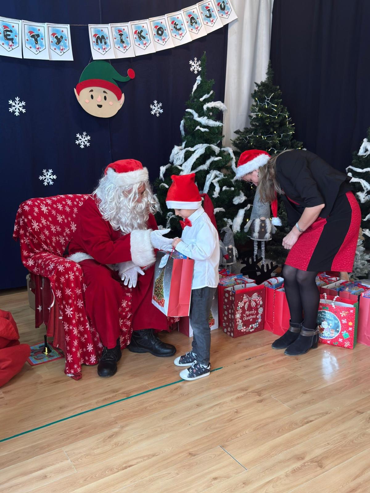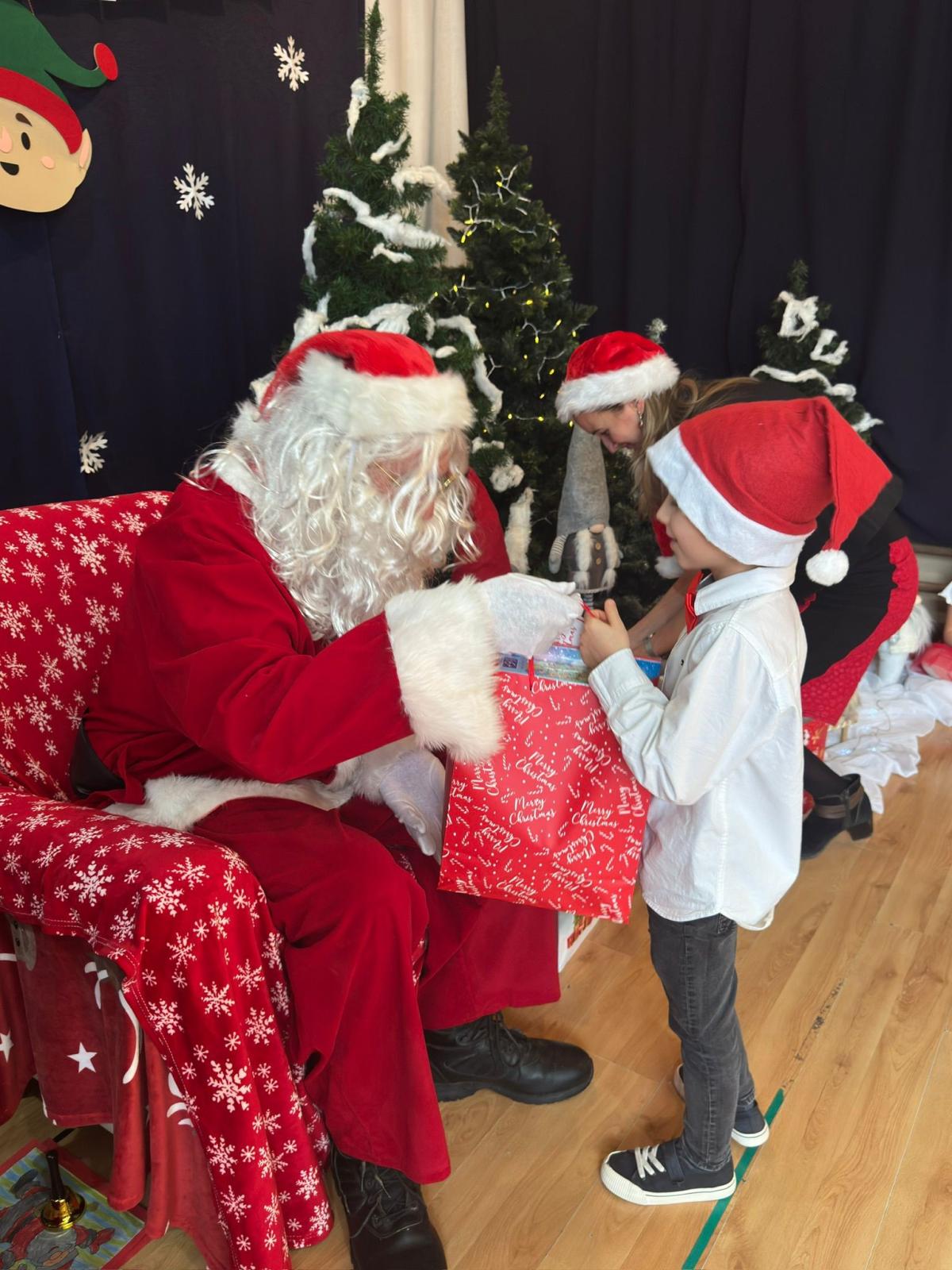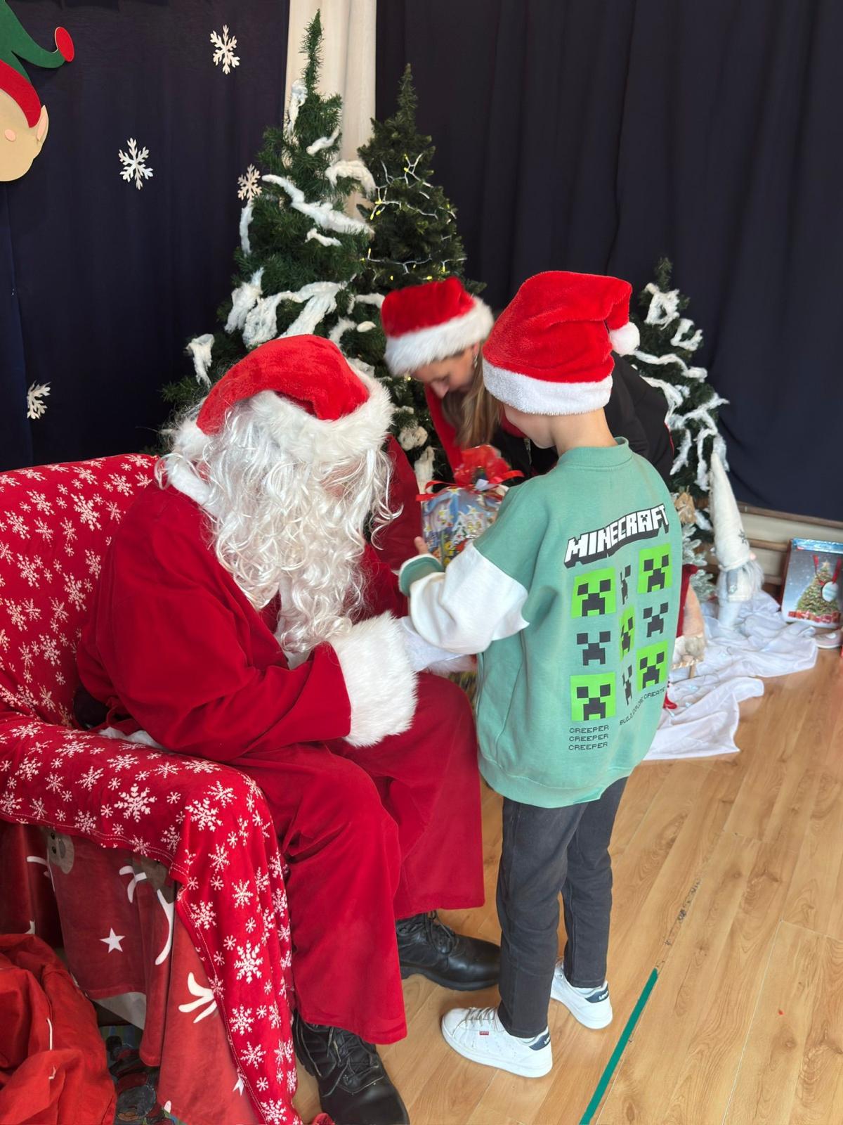 Święty Mikołaj obdarował każdego ucznia wspaniałym upominkiem, a w rozdawaniu prezentów wspierała go Rada Rodziców, której członkowie pełnili rolę dyskretnych pomocników. Mikołaj odwiedził również starszych uczniów z klas 4–8, przekazując im drobne, lecz pełne serca podarunki.