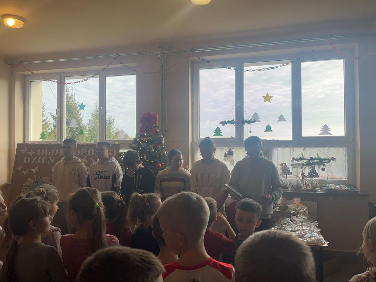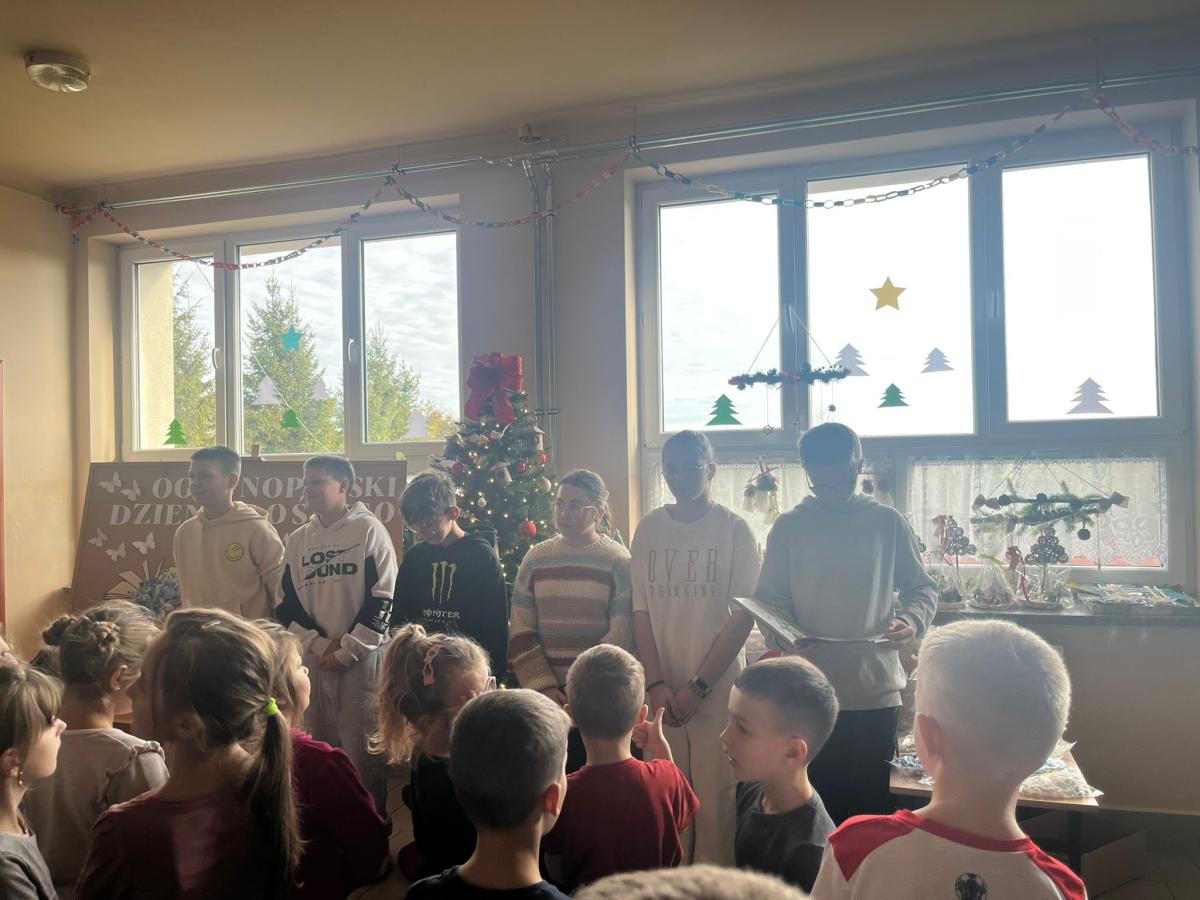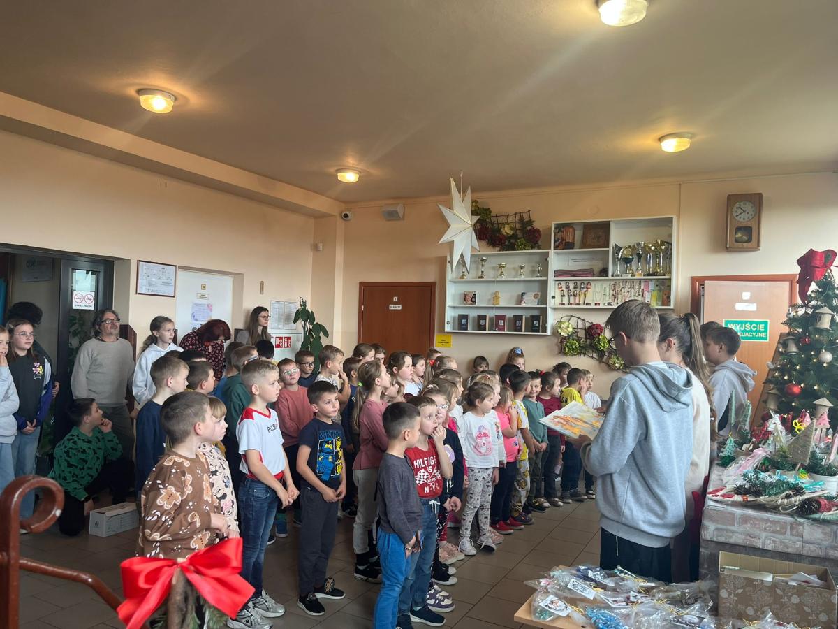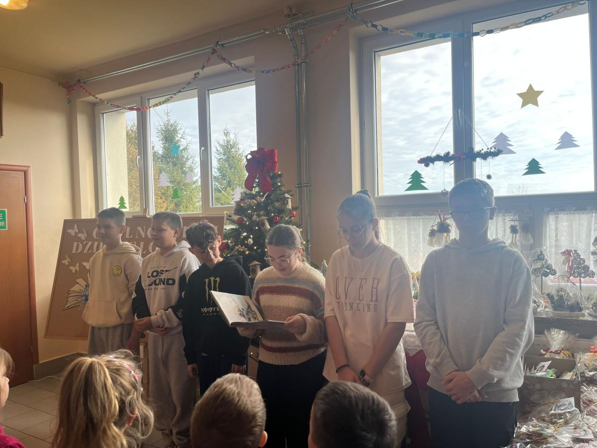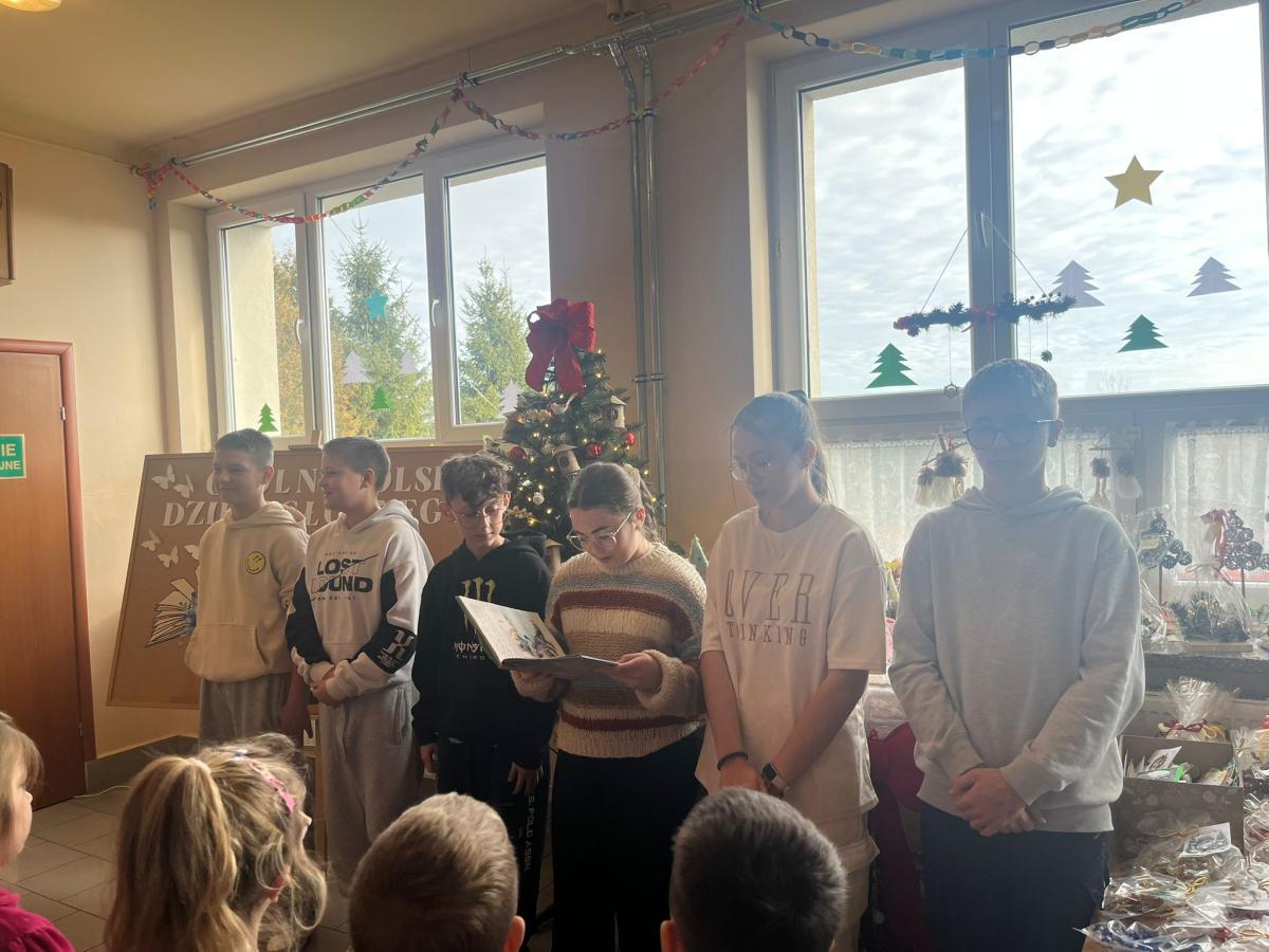 Dziś odbyła się kolejna edycja akcji głośnego czytania na przerwie, w której tym razem zaprezentowali się uczniowie klasy siódmej. Siódmoklasiści przygotowali krótką, pełną humoru i ciepła bajeczkę dla najmłodszych o lisku i wilku. Opowiadanie cieszyło się dużym zainteresowaniem, szczególnie naszych najmłodszych uczniów, którzy z uwagą słuchali, a czytający zadbali o wyrazistą intonację i przyjazną atmosferę.