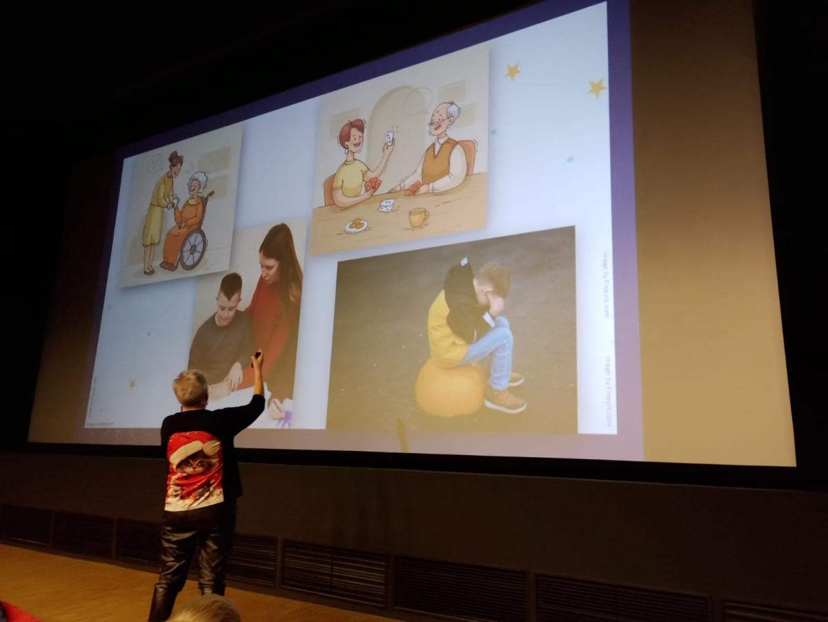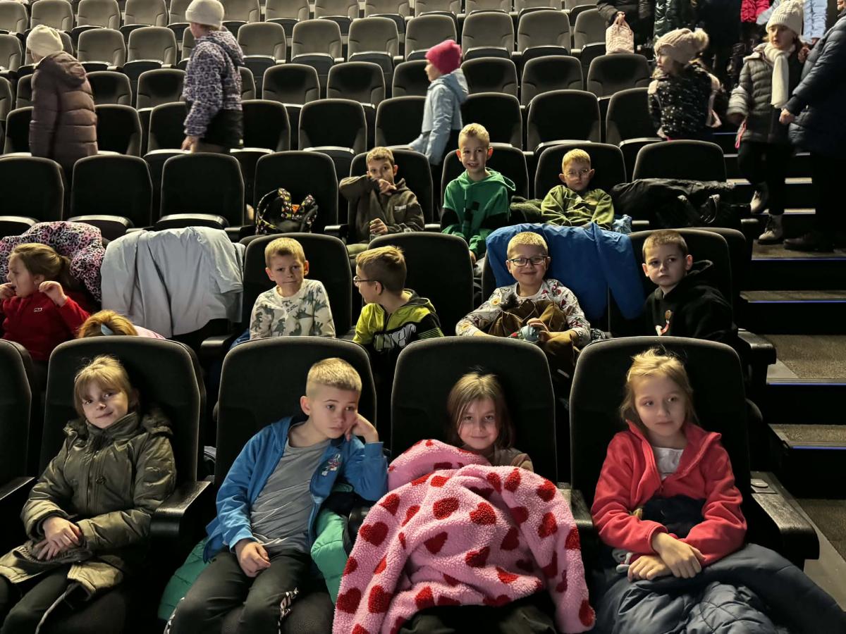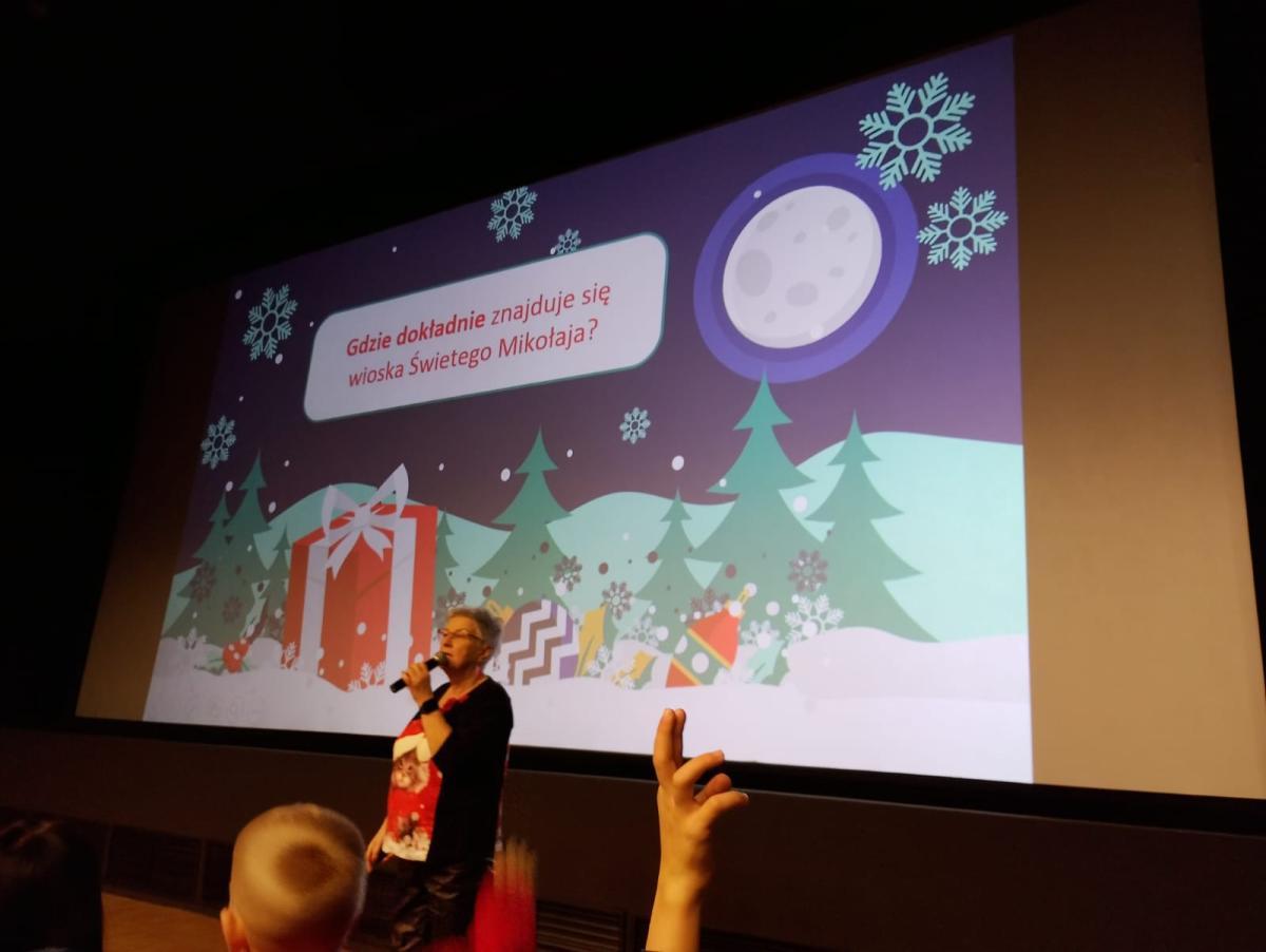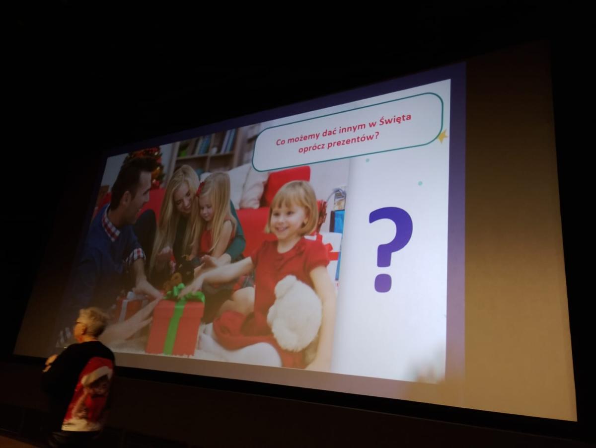 15 grudnia 2025 r. uczniowie klas I – III po raz trzeci uczestniczyli w warsztatach profilaktyczno – wychowawczych w kinie Sokół. Tematem dzisiejszego spotkania były „Święta jako czas dobrych uczynków. Prowadząca warsztaty p. Barbara Porzucek przedstawiła uczniom temat spotkania, który jest tak bardzo ważny, ponieważ zbliżają się Święta Bożego Narodzenia. Uczniowie z zainteresowaniem słuchali prowadzącej oraz chętnie włączali się w dyskusję i odpowiadali na pytania: