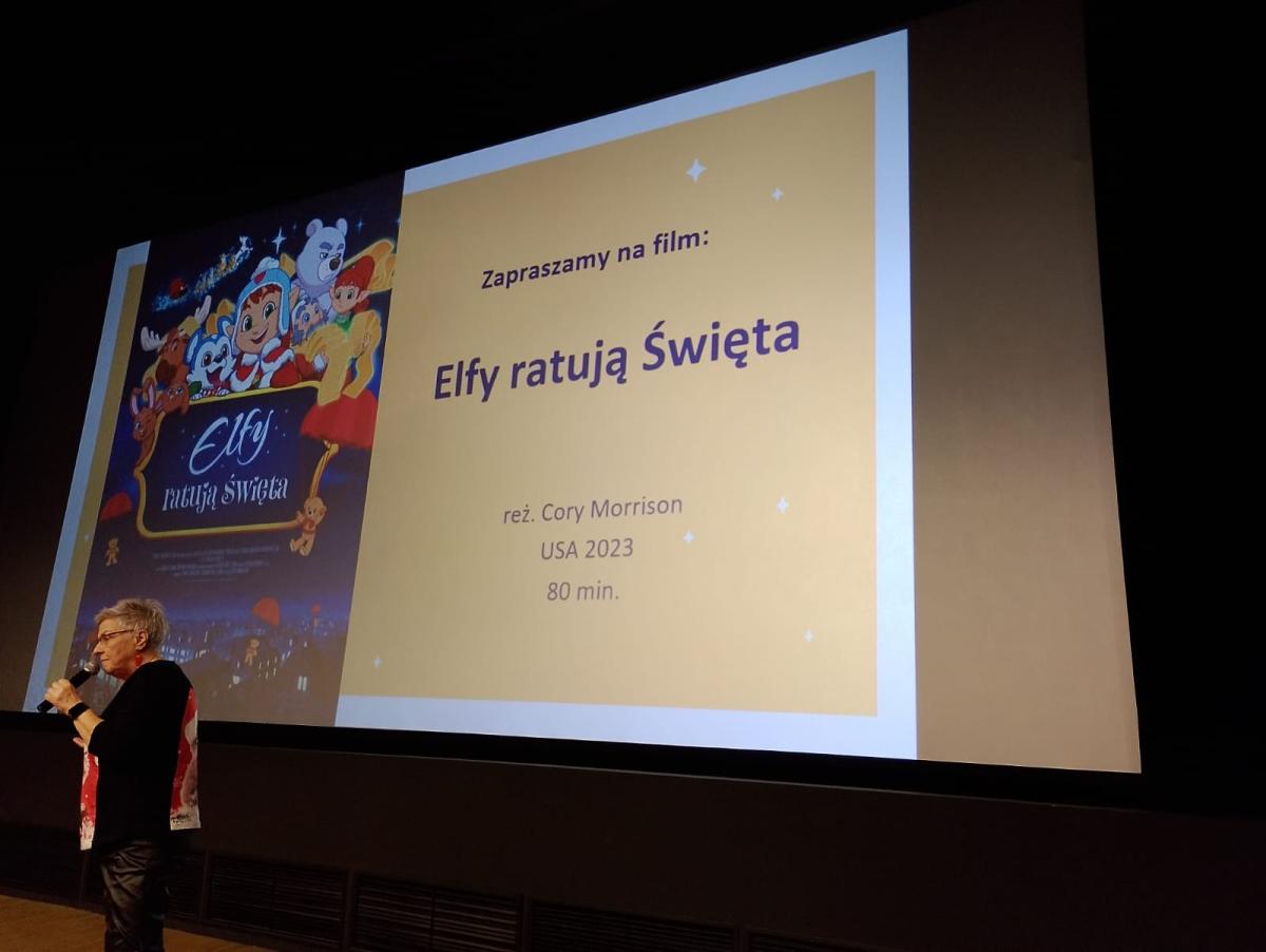 Po warsztatach odbyła się projekcja filmu pt. „Elfy ratują święta”. Młoda elfka Marcepan nie czuje magii Świąt. Jej mama postanawia coś z tym zrobić i zabiera ją na tajną misję. Muszą uwolnić zaczarowanego, śnieżnego renifera Glistena i ocalić Boże Narodzenie. Wspaniała, rodzinna i ciepła animacja o tym, że magia jest w nas i nie wolno nigdy się poddawać.
