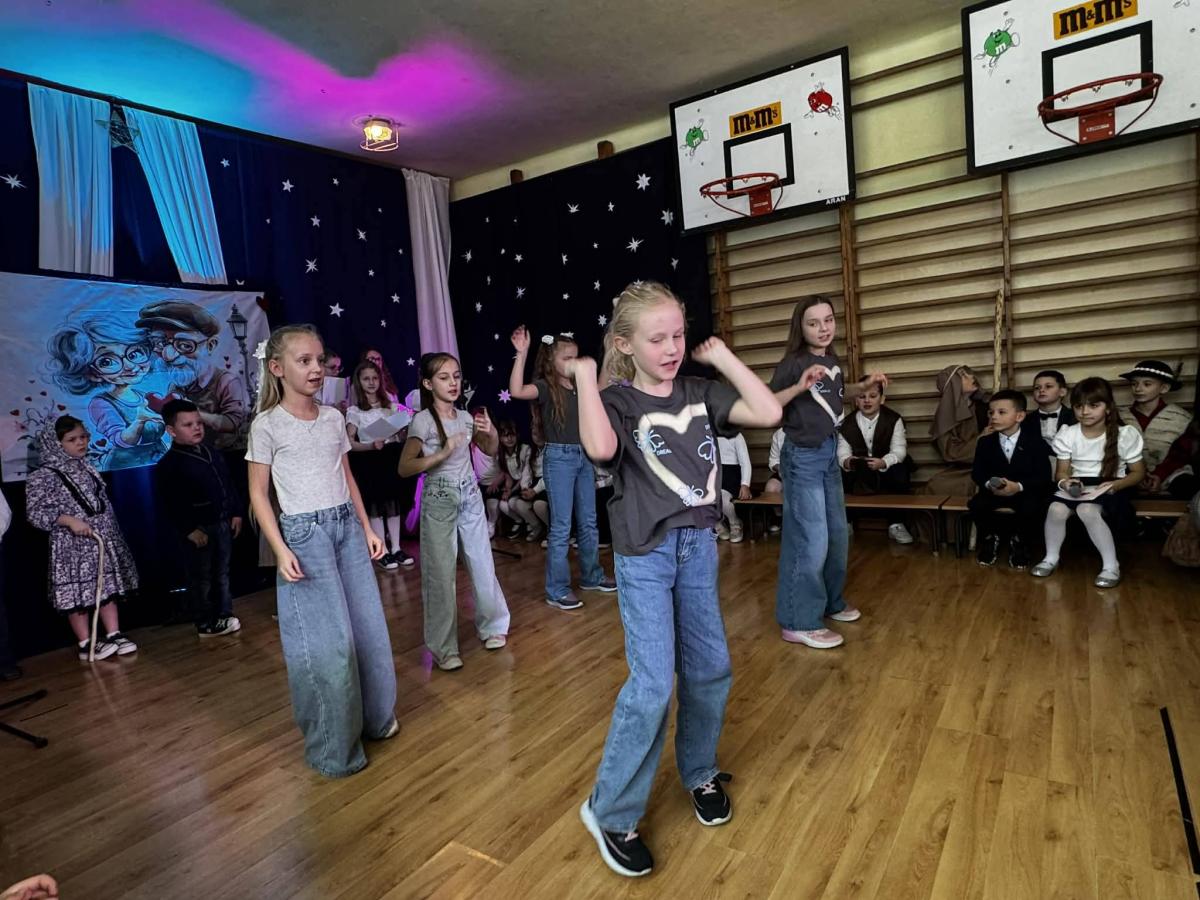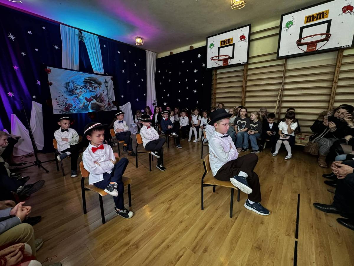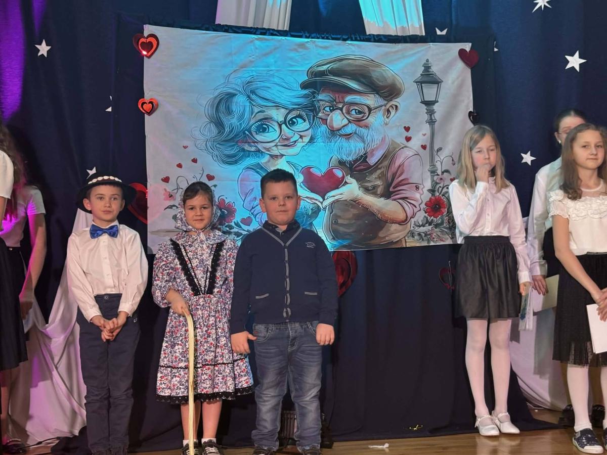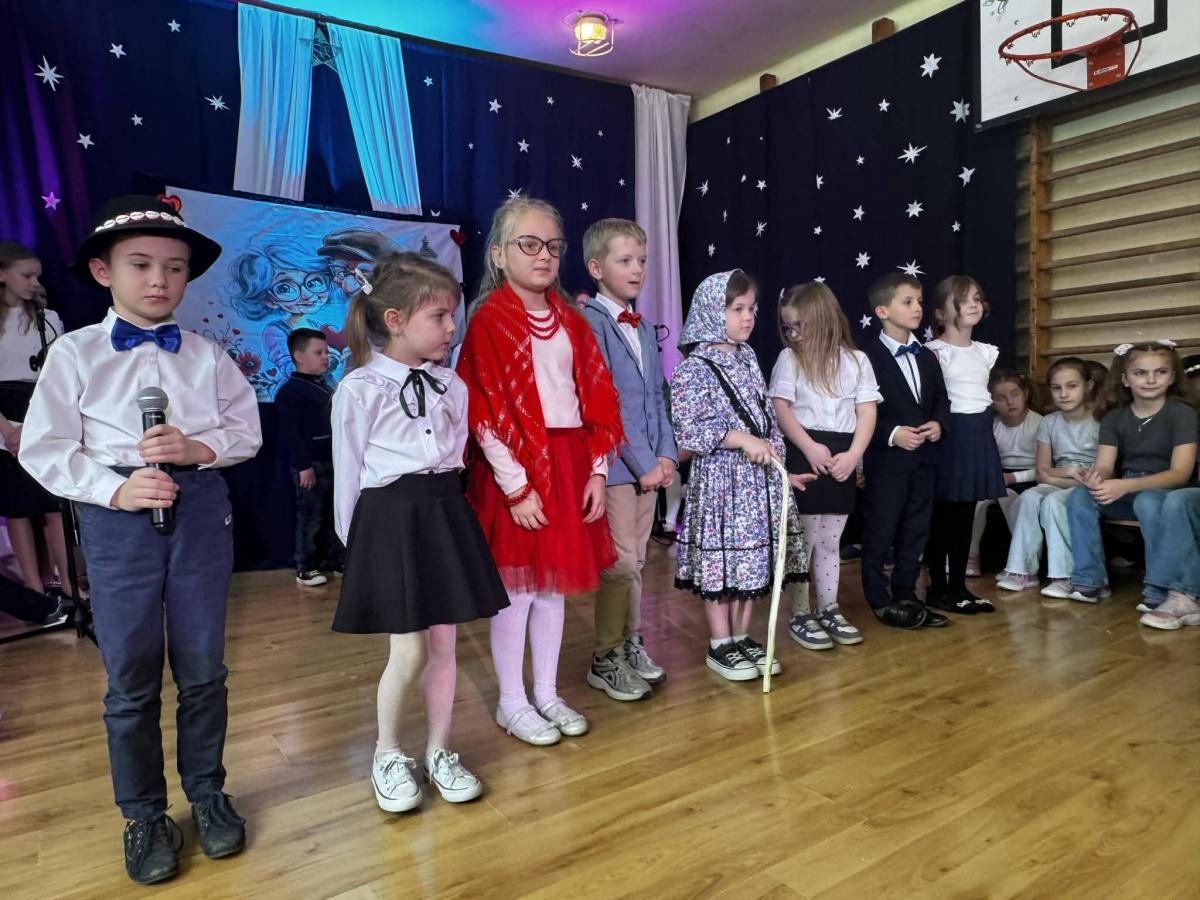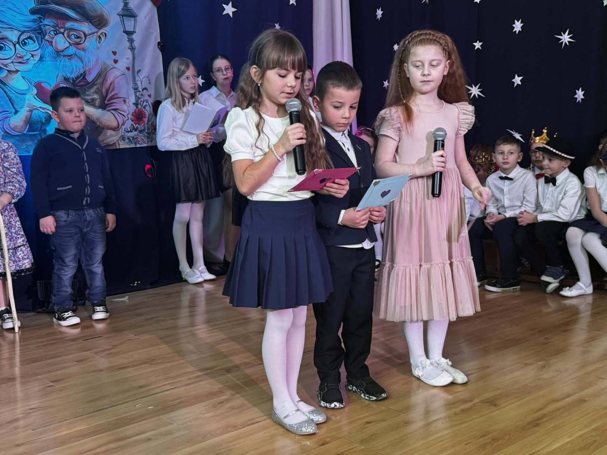22 stycznia mieliśmy zaszczyt gościć w naszej szkole Babcie i Dziadków. Przybyli Oni na zaproszenie swoich wnuków, którzy chcieli w tym dniu podziękować im za okazywaną miłość, troskę, opiekę oraz przekazywanie tradycji. Uroczystość podzielona została na dwie części. W pierwszej części uczniowie klasy II i III oraz chór zaprezentowali „Jasełka”. W drugiej części dzieci z oddziału przedszkolnego i klasy I przedstawiły widowisko pt. „Jak babcia z dziadkiem się poznali”. Spektakl ukazał historię poznania się babci i dziadka oraz ich rozwijającej się miłości. Następnie dziewczynki i chłopcy przedstawili współczesne układy taneczne, a Fabian zagrał dla gości „Sto lat”.
