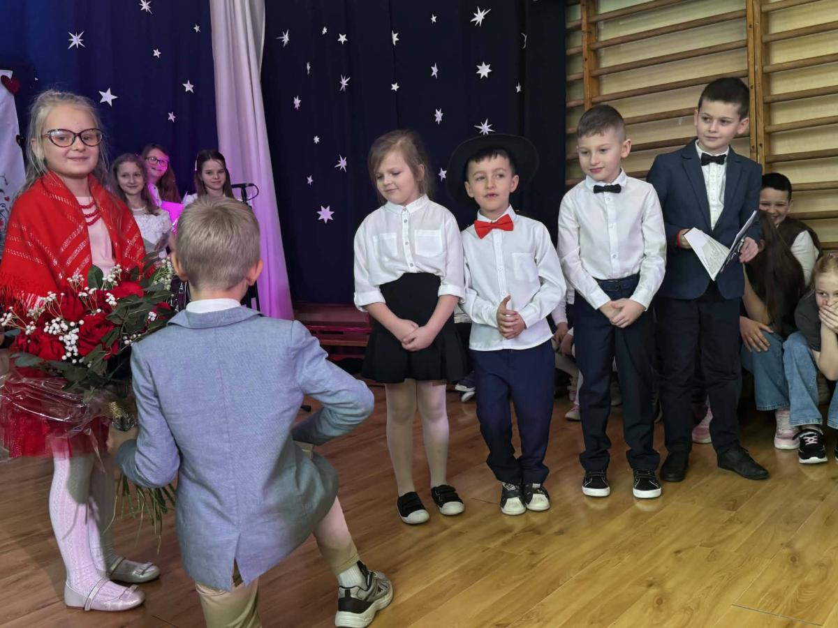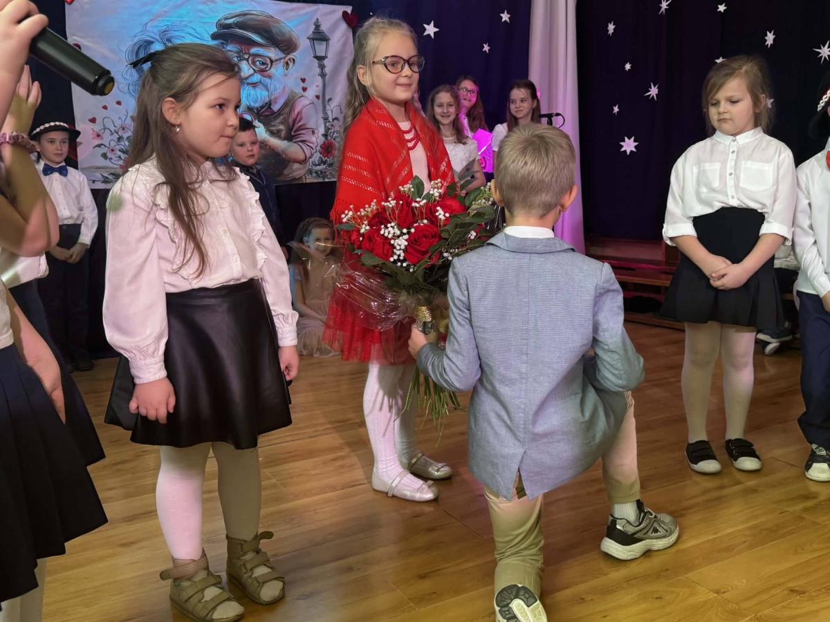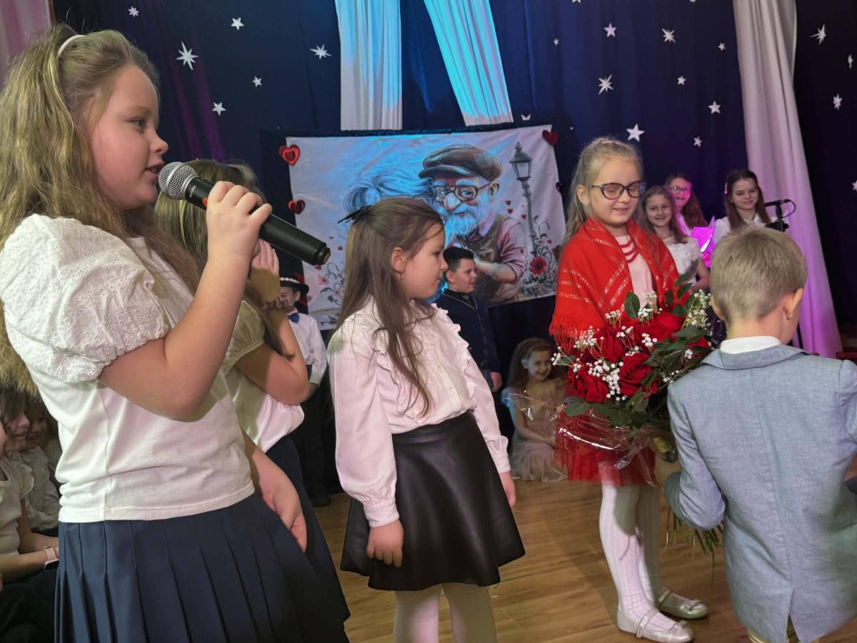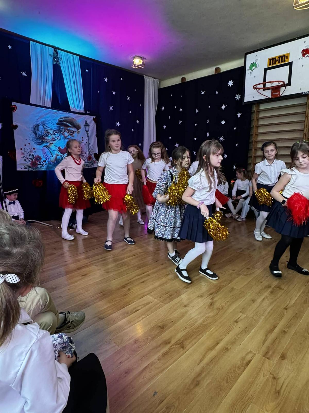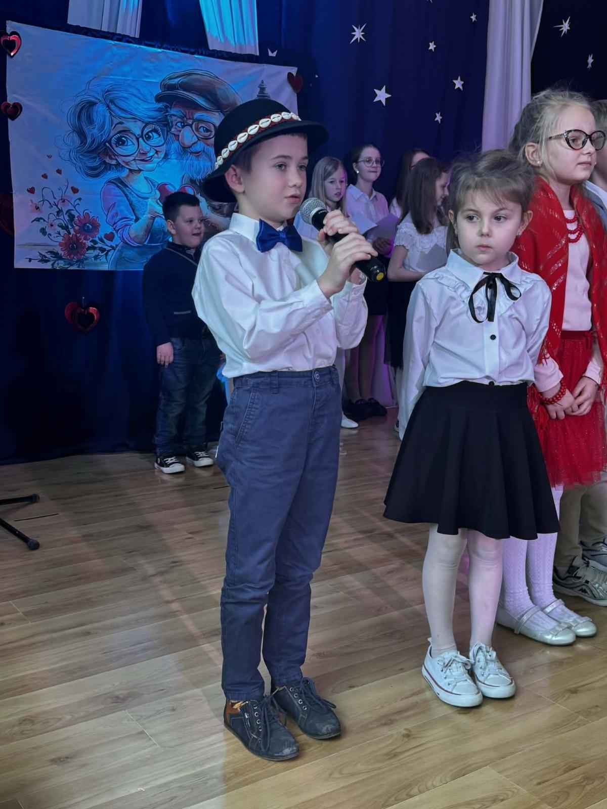 22 stycznia mieliśmy zaszczyt gościć w naszej szkole Babcie i Dziadków. Przybyli Oni na zaproszenie swoich wnuków, którzy chcieli w tym dniu podziękować im za okazywaną miłość, troskę, opiekę oraz przekazywanie tradycji. Uroczystość podzielona została na dwie części. W pierwszej części uczniowie klasy II i III oraz chór zaprezentowali „Jasełka”. W drugiej części dzieci z oddziału przedszkolnego i klasy I przedstawiły widowisko pt. „Jak babcia z dziadkiem się poznali”. Spektakl ukazał historię poznania się babci i dziadka oraz ich rozwijającej się miłości. Następnie dziewczynki i chłopcy przedstawili współczesne układy taneczne, a Fabian zagrał dla gości „Sto lat”.