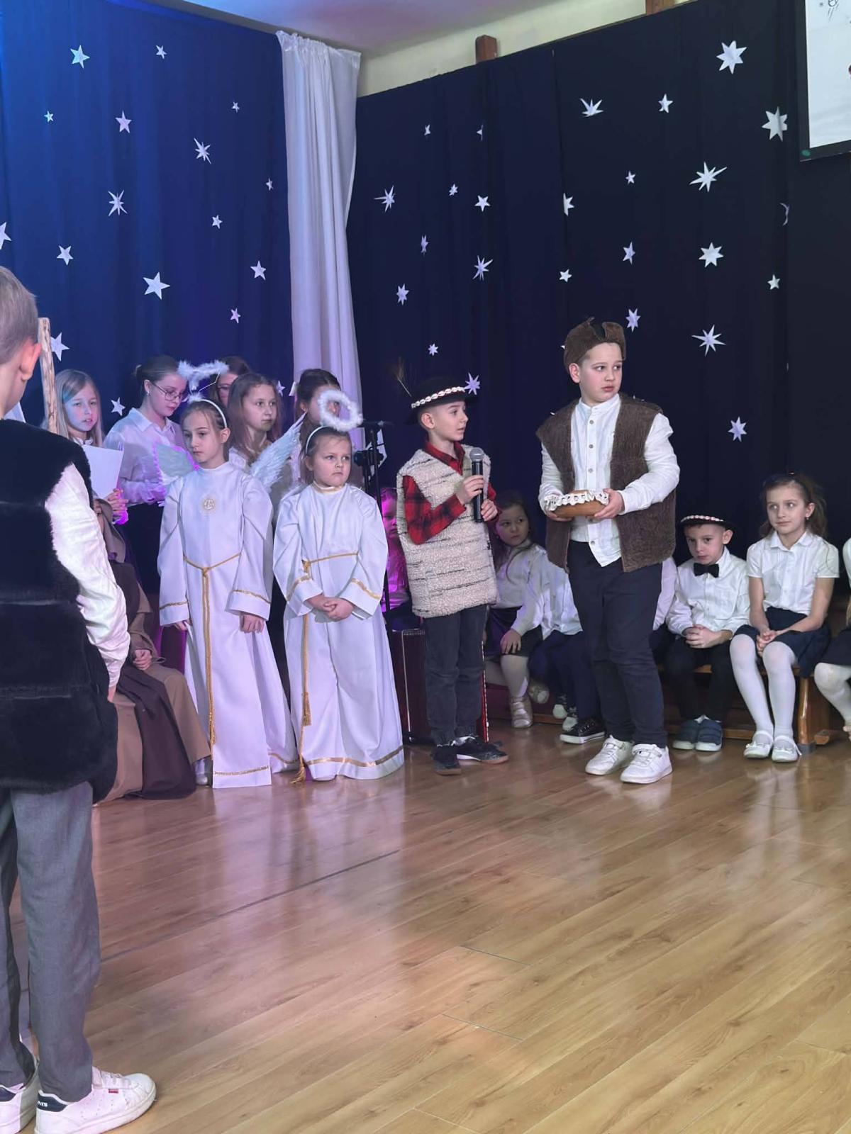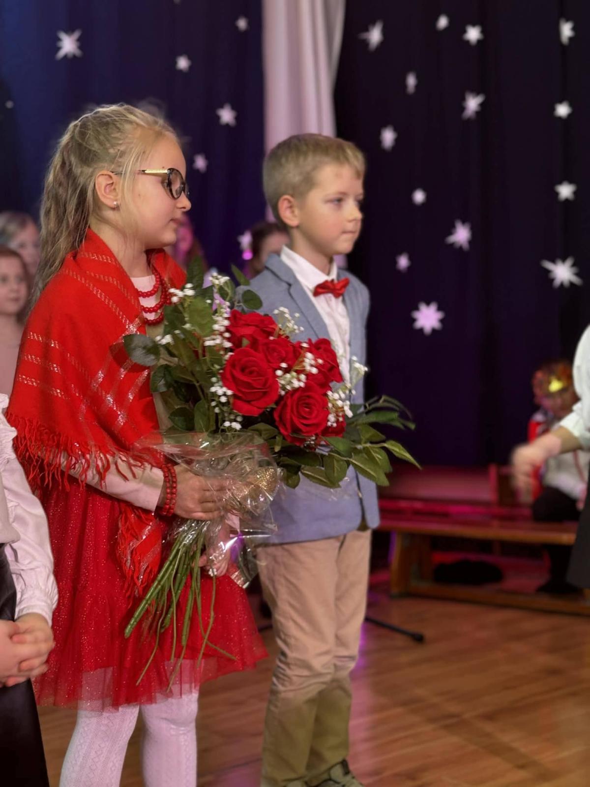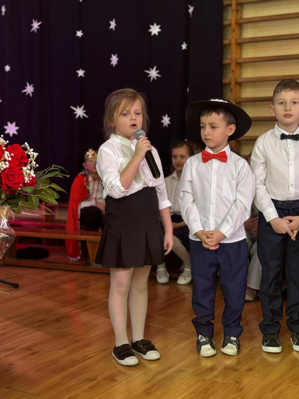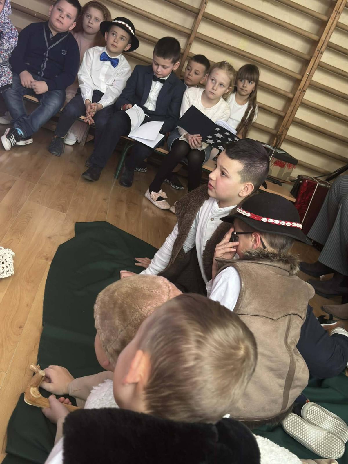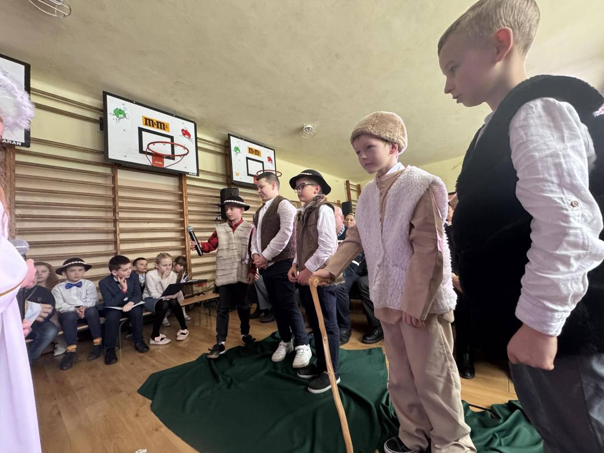 22 stycznia mieliśmy zaszczyt gościć w naszej szkole Babcie i Dziadków. Przybyli Oni na zaproszenie swoich wnuków, którzy chcieli w tym dniu podziękować im za okazywaną miłość, troskę, opiekę oraz przekazywanie tradycji. Uroczystość podzielona została na dwie części. W pierwszej części uczniowie klasy II i III oraz chór zaprezentowali „Jasełka”. W drugiej części dzieci z oddziału przedszkolnego i klasy I przedstawiły widowisko pt. „Jak babcia z dziadkiem się poznali”. Spektakl ukazał historię poznania się babci i dziadka oraz ich rozwijającej się miłości. Następnie dziewczynki i chłopcy przedstawili współczesne układy taneczne, a Fabian zagrał dla gości „Sto lat”.
