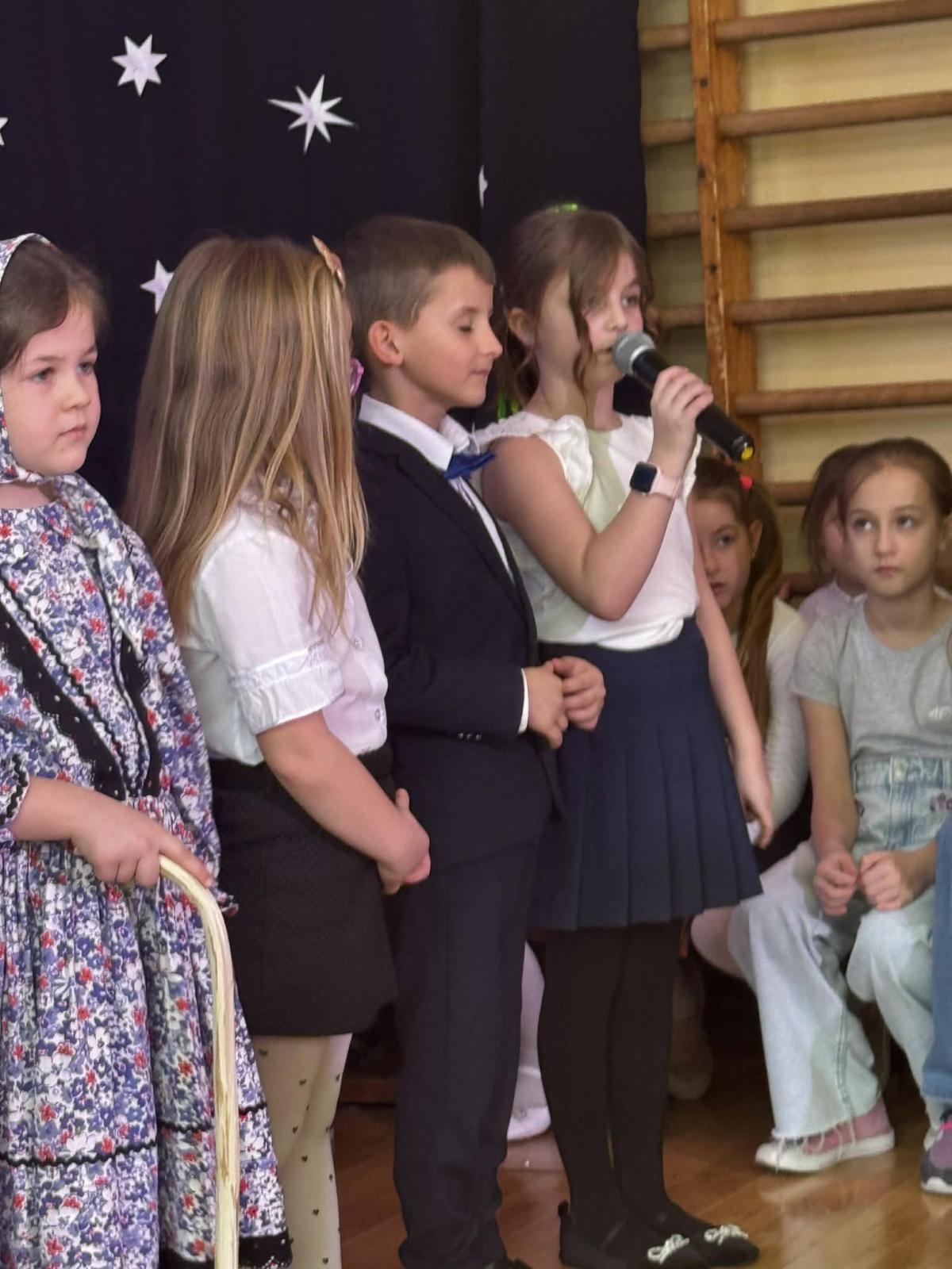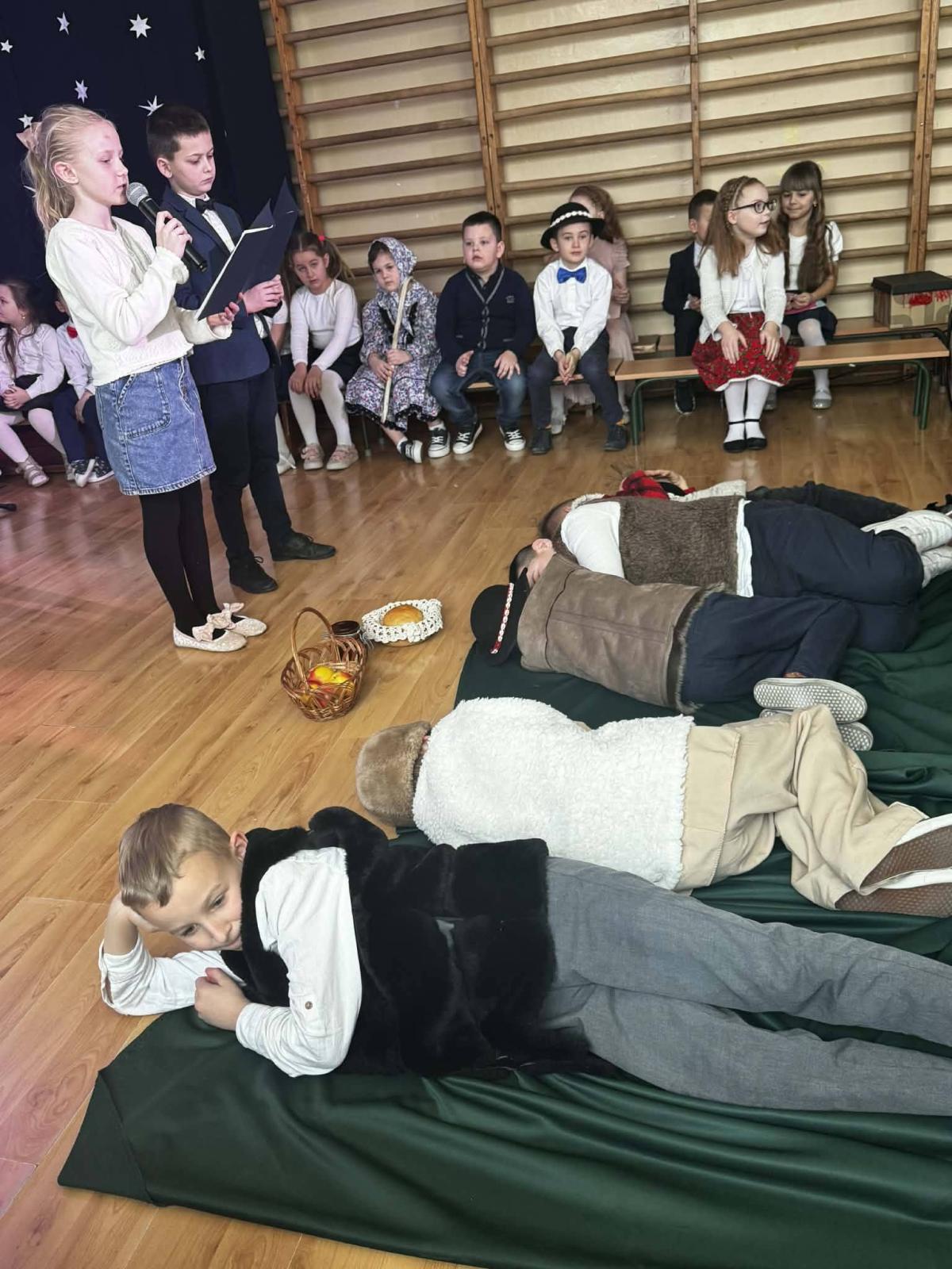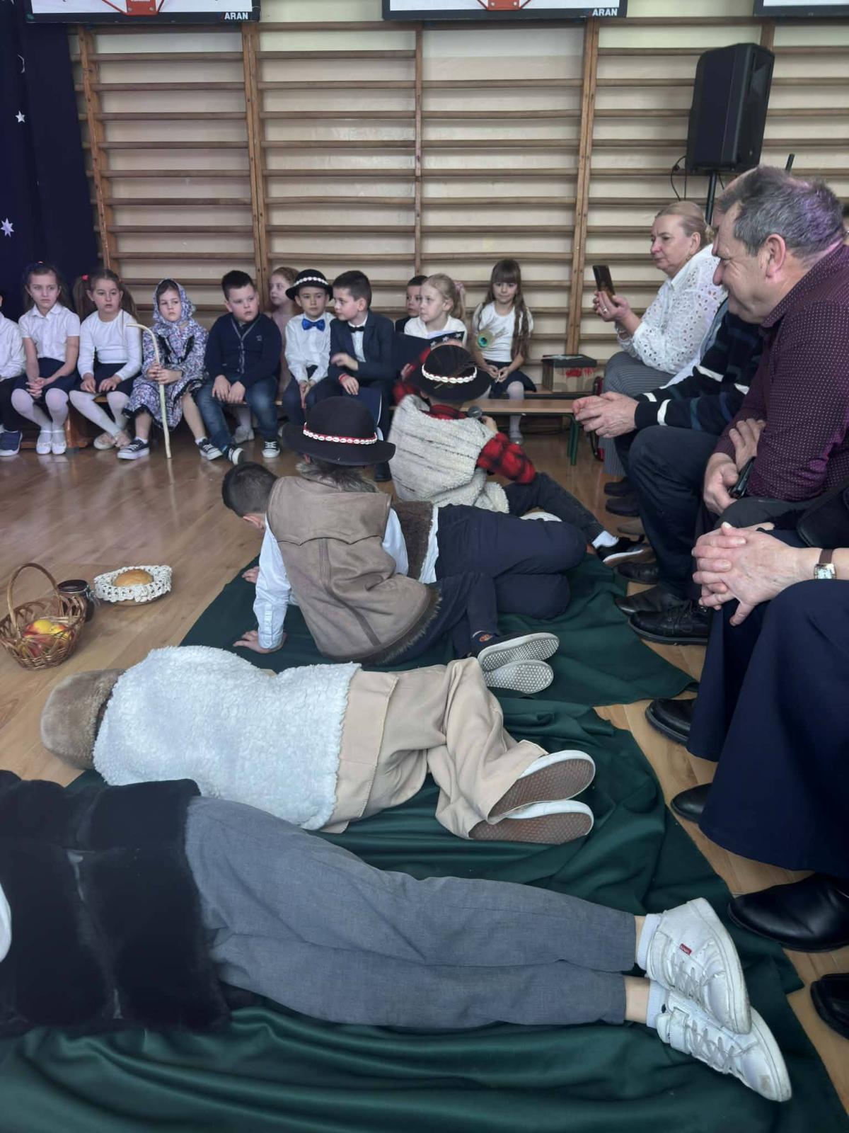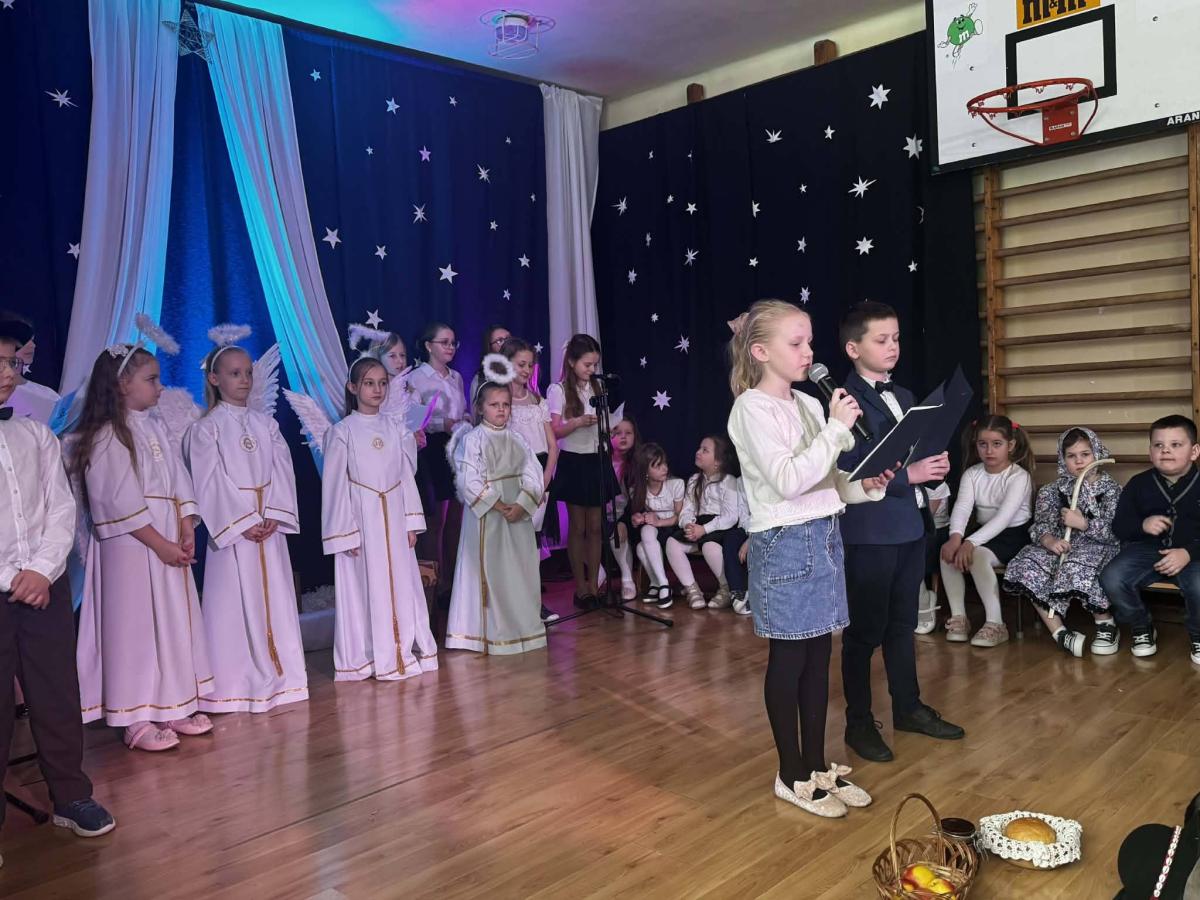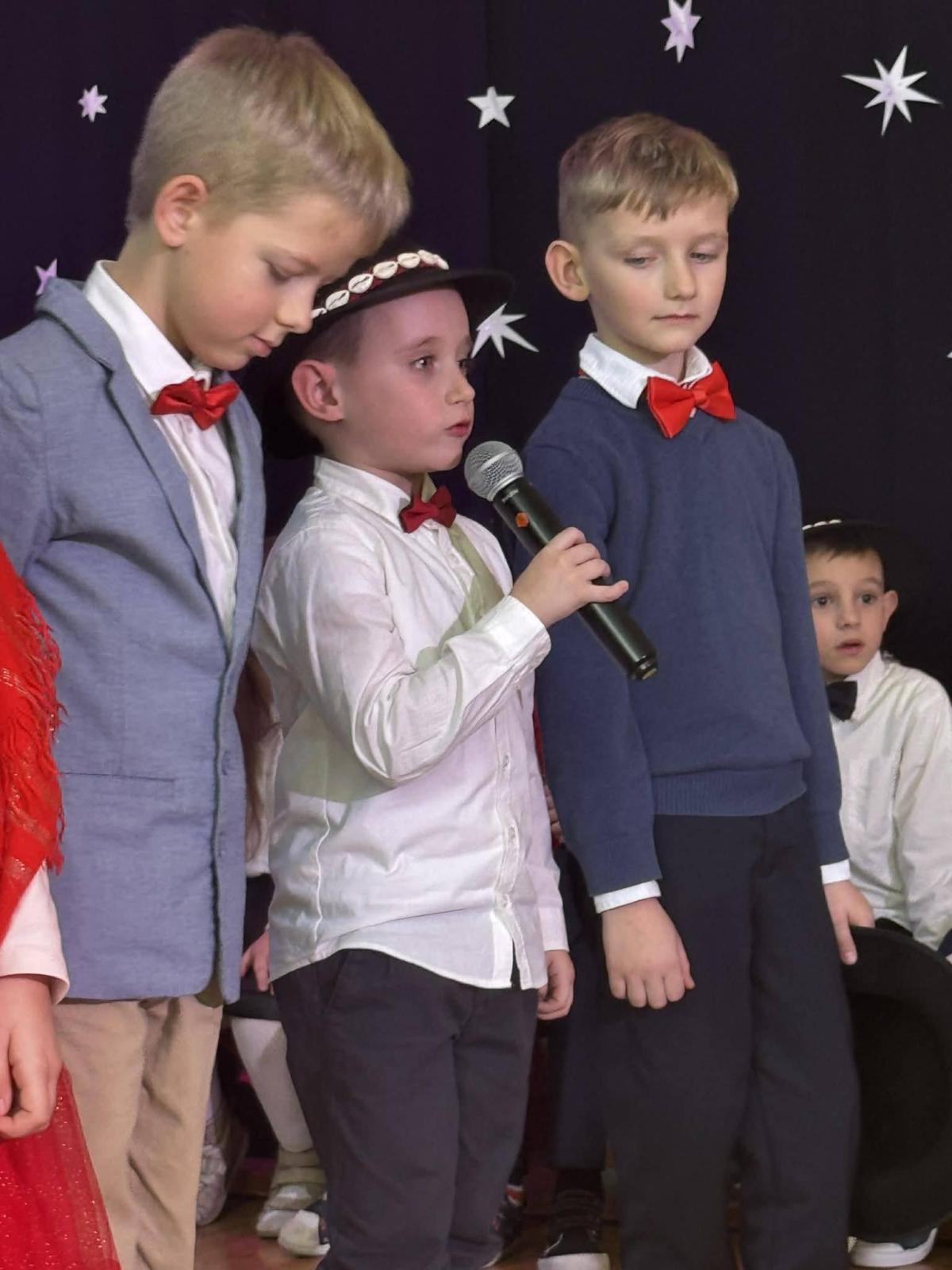 22 stycznia mieliśmy zaszczyt gościć w naszej szkole Babcie i Dziadków. Przybyli Oni na zaproszenie swoich wnuków, którzy chcieli w tym dniu podziękować im za okazywaną miłość, troskę, opiekę oraz przekazywanie tradycji. Uroczystość podzielona została na dwie części. W pierwszej części uczniowie klasy II i III oraz chór zaprezentowali „Jasełka”. W drugiej części dzieci z oddziału przedszkolnego i klasy I przedstawiły widowisko pt. „Jak babcia z dziadkiem się poznali”. Spektakl ukazał historię poznania się babci i dziadka oraz ich rozwijającej się miłości. Następnie dziewczynki i chłopcy przedstawili współczesne układy taneczne, a Fabian zagrał dla gości „Sto lat”.