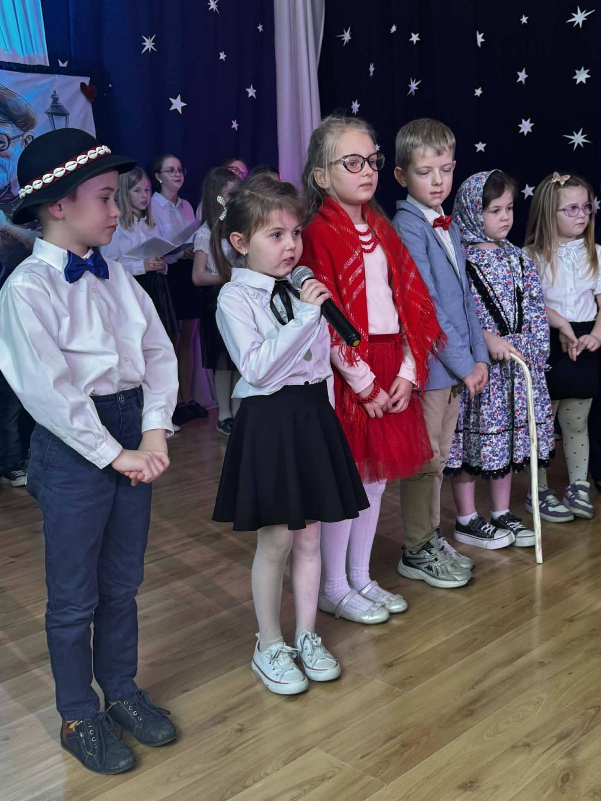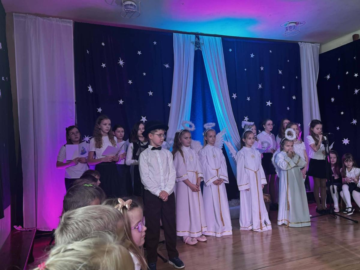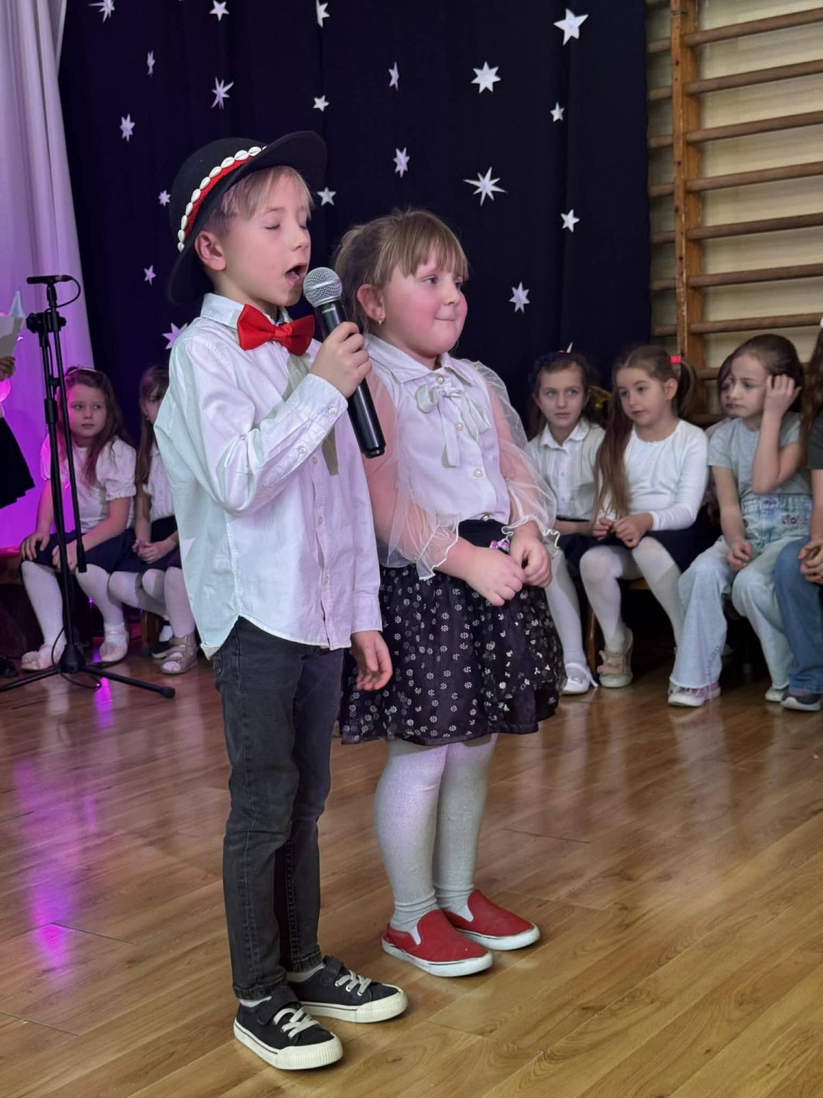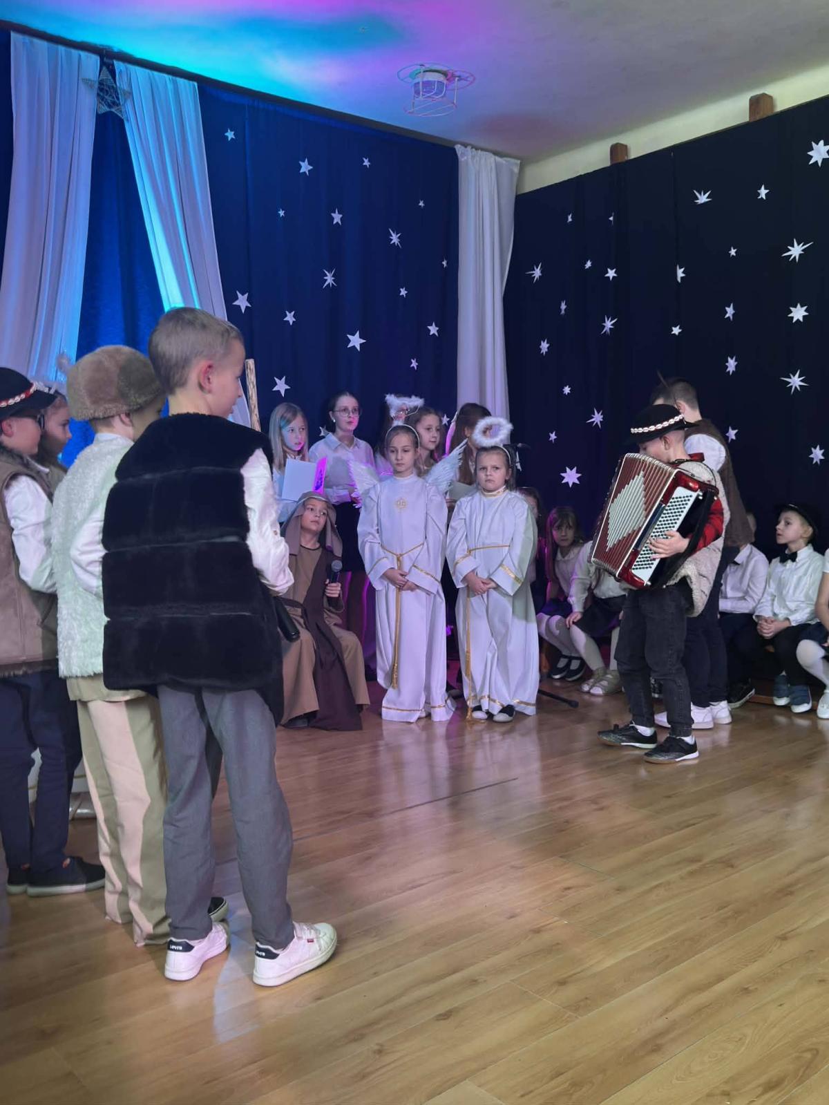 22 stycznia mieliśmy zaszczyt gościć w naszej szkole Babcie i Dziadków. Przybyli Oni na zaproszenie swoich wnuków, którzy chcieli w tym dniu podziękować im za okazywaną miłość, troskę, opiekę oraz przekazywanie tradycji. Uroczystość podzielona została na dwie części. W pierwszej części uczniowie klasy II i III oraz chór zaprezentowali „Jasełka”. W drugiej części dzieci z oddziału przedszkolnego i klasy I przedstawiły widowisko pt. „Jak babcia z dziadkiem się poznali”. Spektakl ukazał historię poznania się babci i dziadka oraz ich rozwijającej się miłości. Następnie dziewczynki i chłopcy przedstawili współczesne układy taneczne, a Fabian zagrał dla gości „Sto lat”.