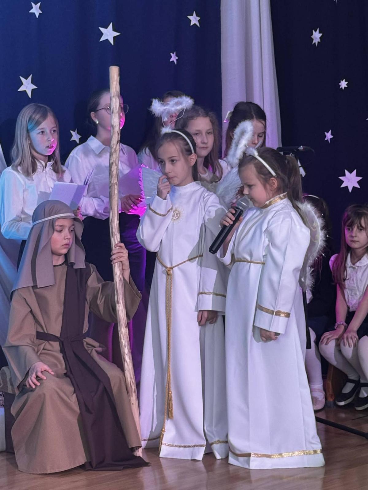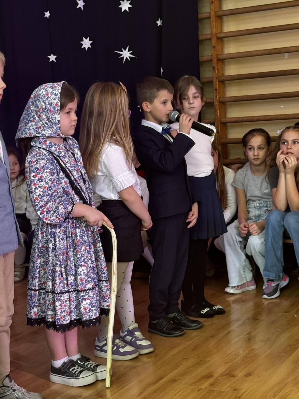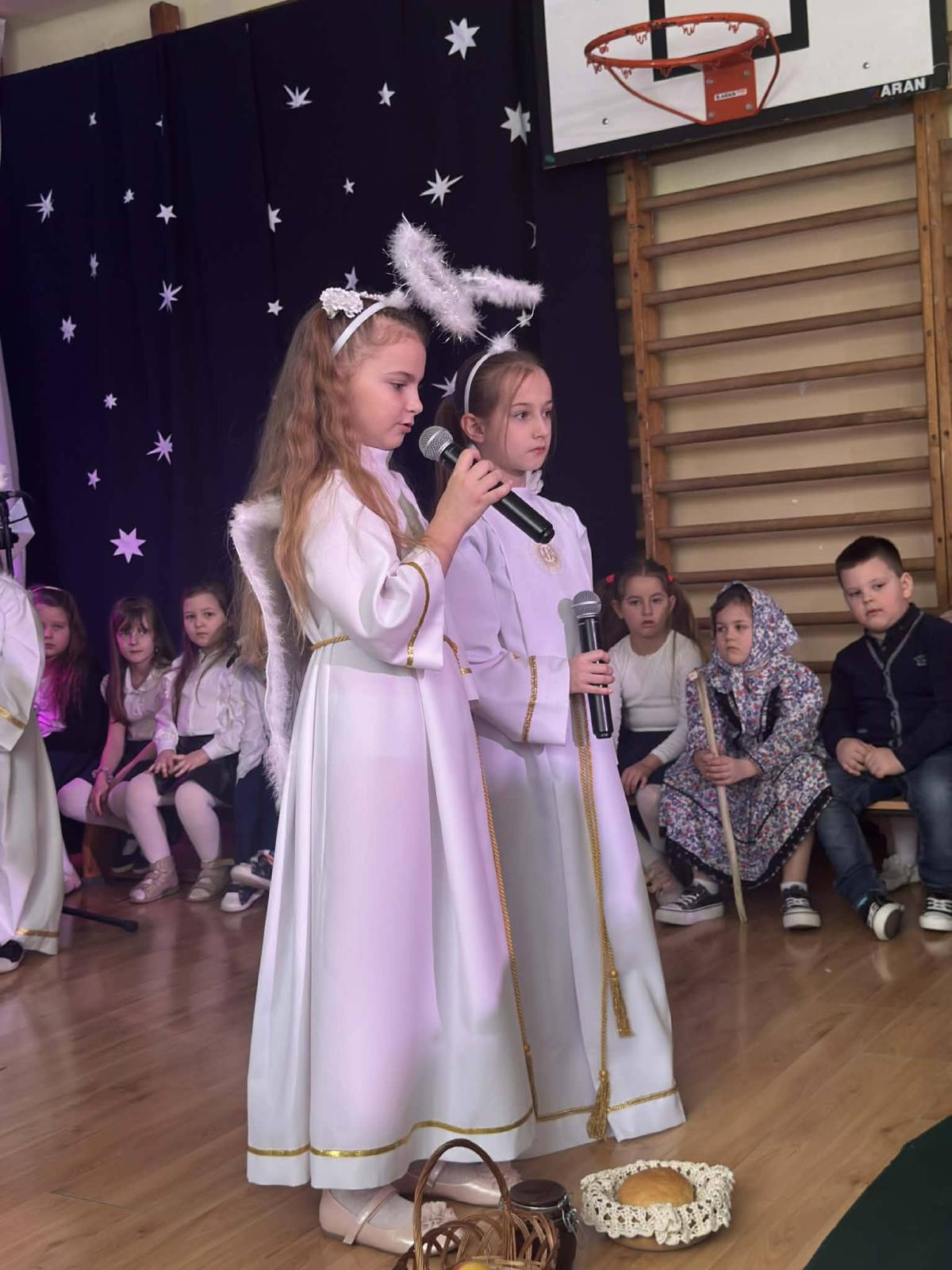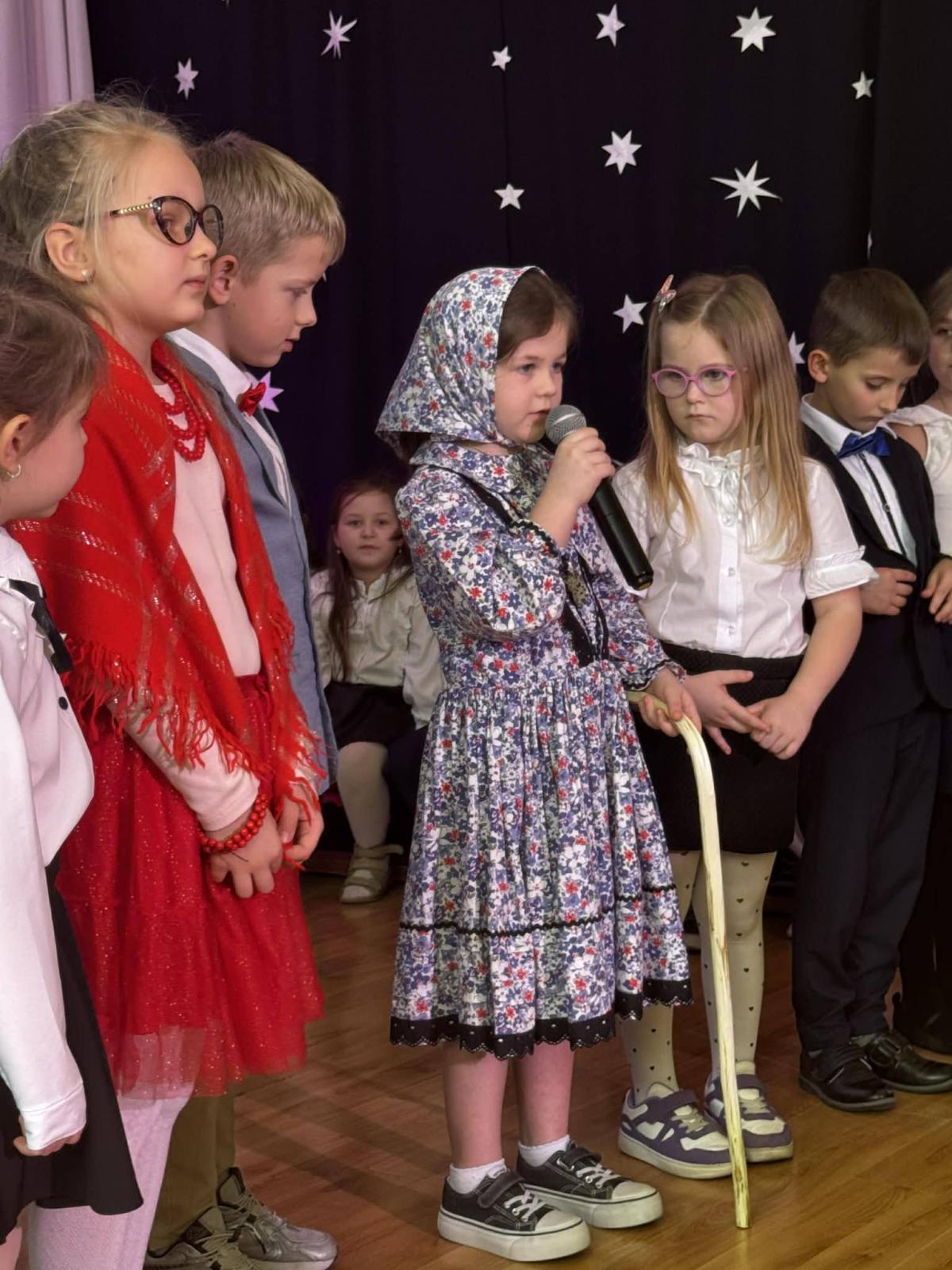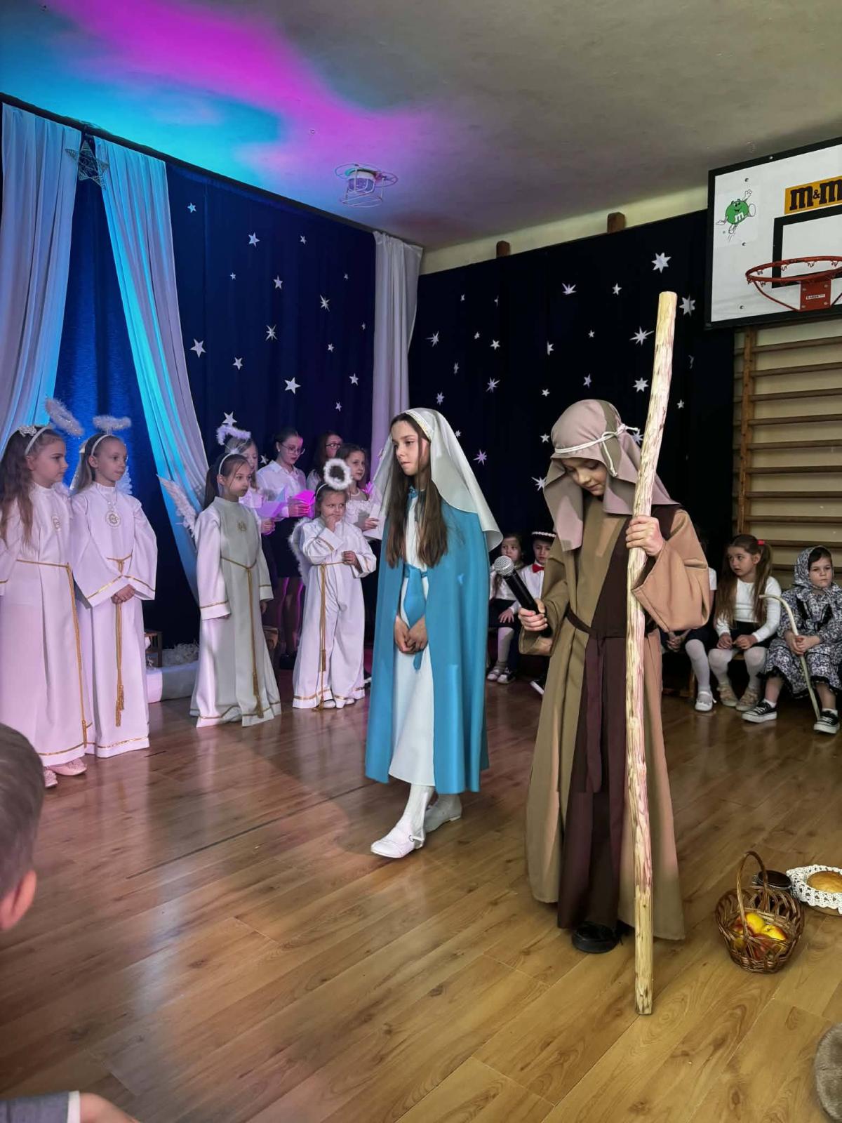 22 stycznia mieliśmy zaszczyt gościć w naszej szkole Babcie i Dziadków. Przybyli Oni na zaproszenie swoich wnuków, którzy chcieli w tym dniu podziękować im za okazywaną miłość, troskę, opiekę oraz przekazywanie tradycji. Uroczystość podzielona została na dwie części. W pierwszej części uczniowie klasy II i III oraz chór zaprezentowali „Jasełka”. W drugiej części dzieci z oddziału przedszkolnego i klasy I przedstawiły widowisko pt. „Jak babcia z dziadkiem się poznali”. Spektakl ukazał historię poznania się babci i dziadka oraz ich rozwijającej się miłości. Następnie dziewczynki i chłopcy przedstawili współczesne układy taneczne, a Fabian zagrał dla gości „Sto lat”.