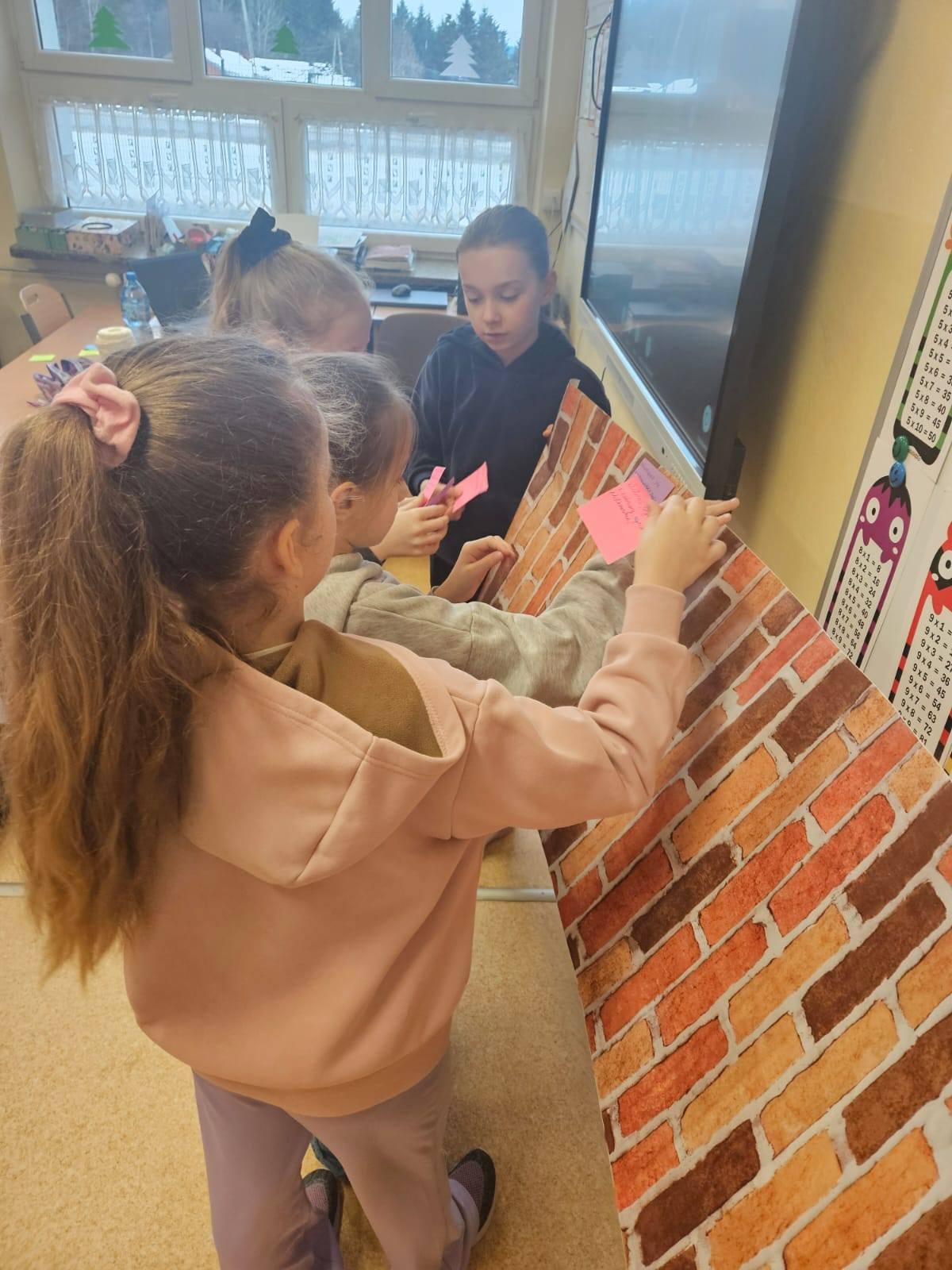 W klasie 3 zostały przeprowadzone zajęcia poświęcone tematowi murów i mostów w relacjach międzyludzkich. Uczniowie zastanawiali się, czym są „mury”, które mogą nas od siebie oddzielać, oraz czym są „mosty”, które pomagają się porozumieć, zbliżają ludzi i budują dobre relacje w klasie.