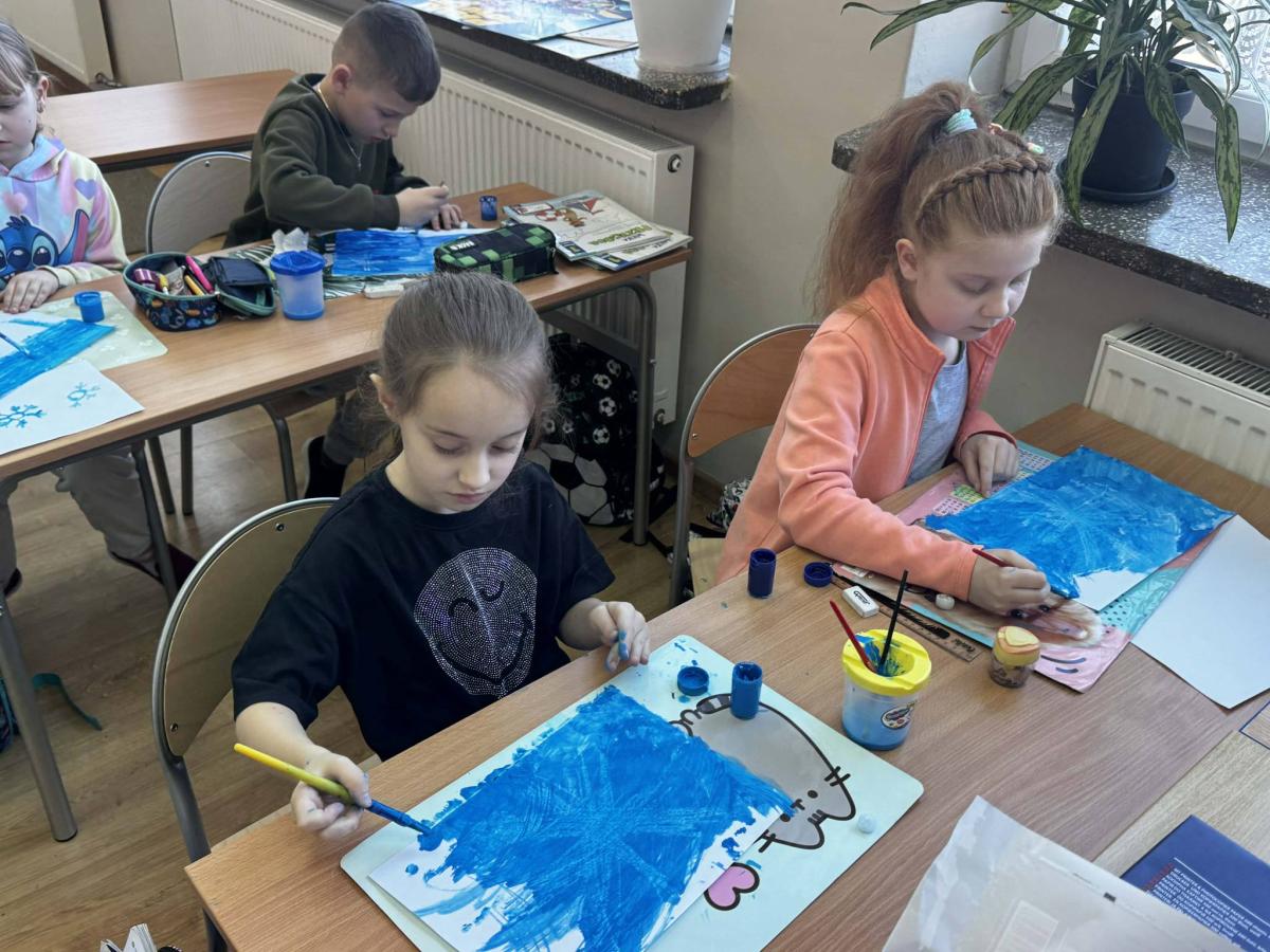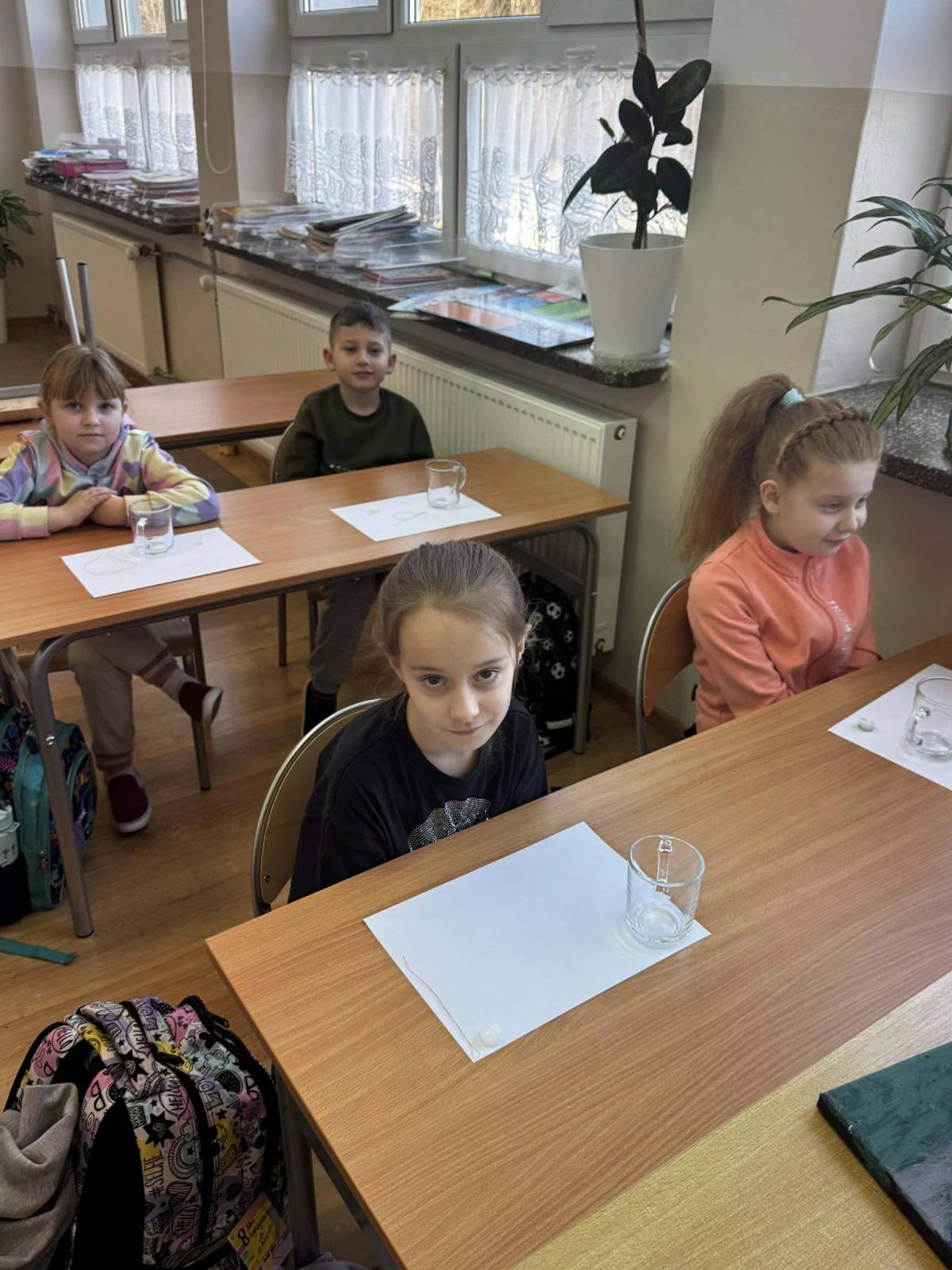 Zajęcia zakończyły się quizem podsumowującym oraz wykonaniem zimowych prac plastycznych z wykorzystaniem świecy i farb. Uczniowie zaobserwowali, że wosk nie wchłania wody