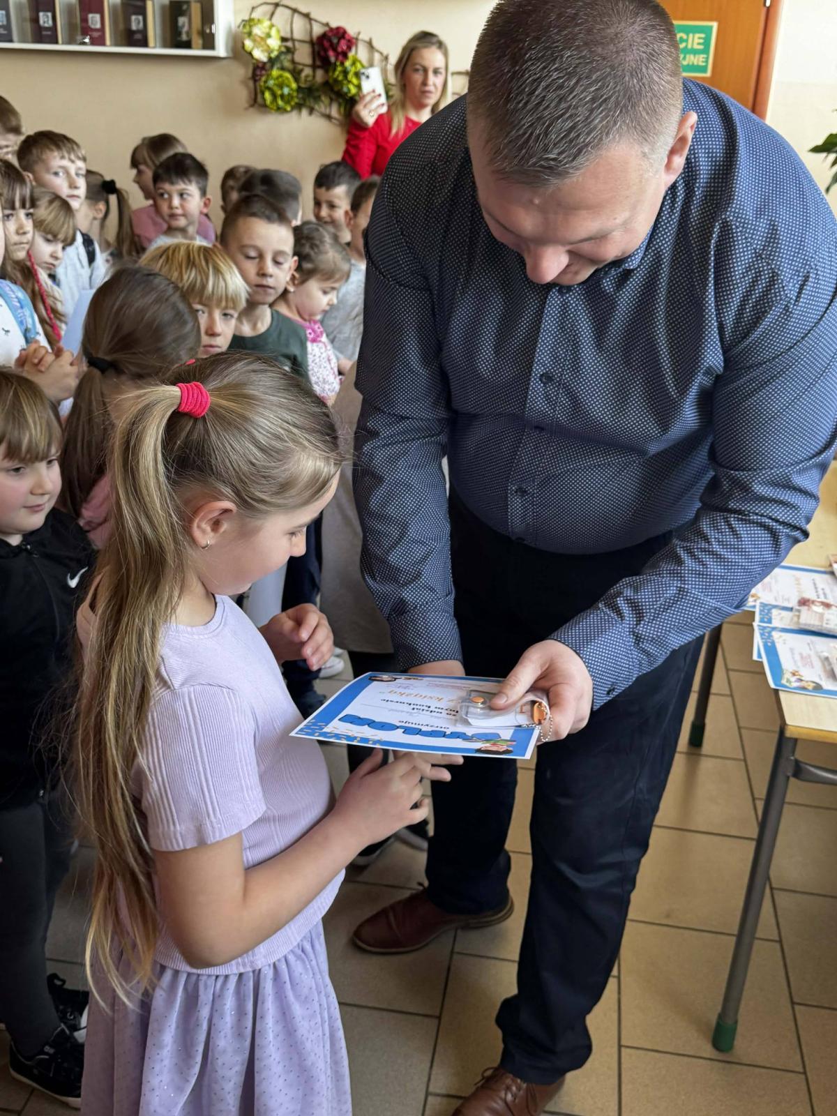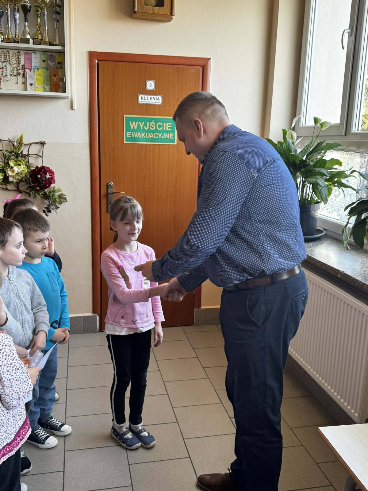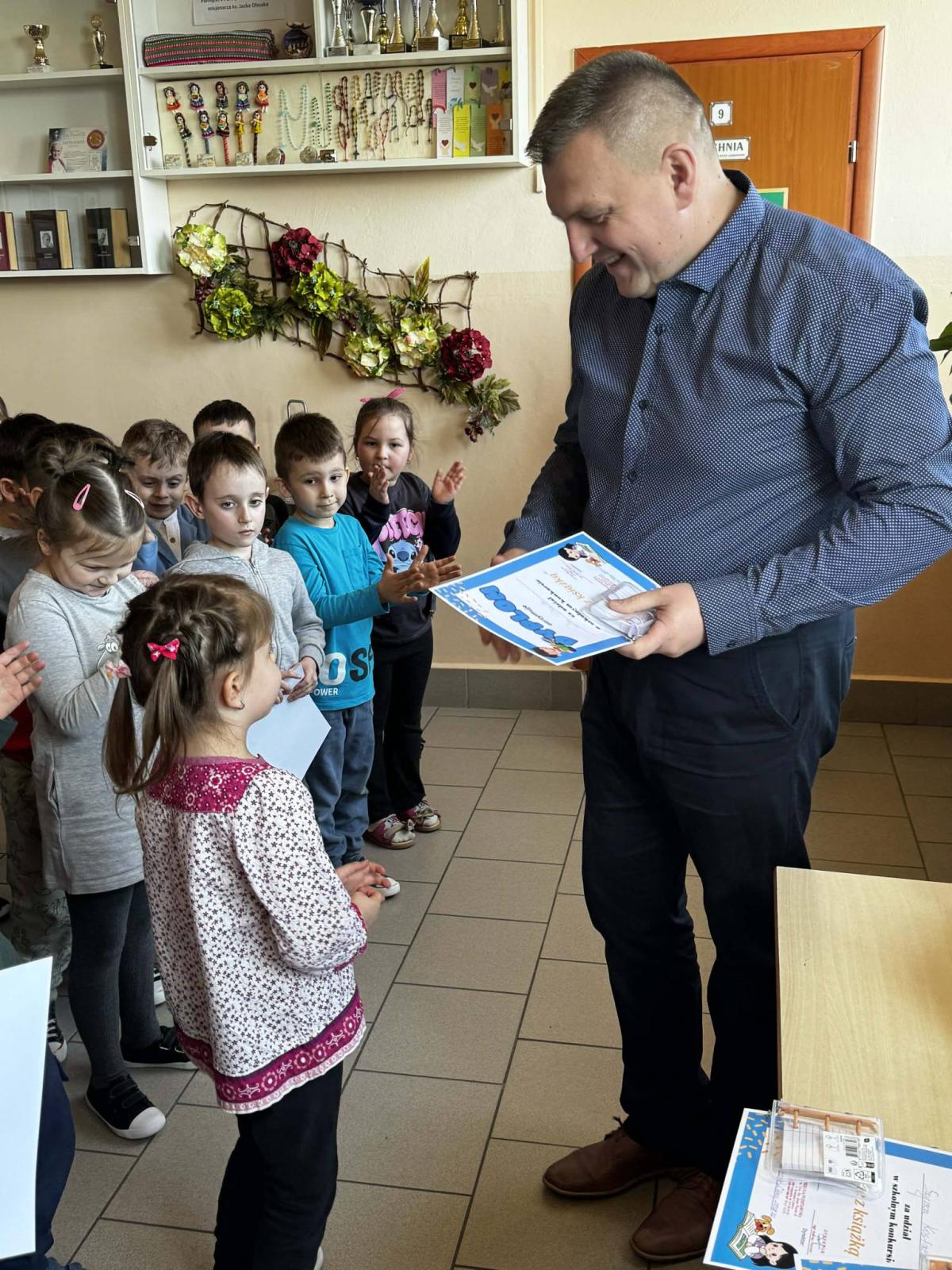 Podczas apelu ogłoszono również wyniki konkursu plastycznego „Ferie z książką”, który był skierowany do uczniów klas 0–3. Konkurs cieszył się dużym zainteresowaniem – wielu uczniów przygotowało pomysłowe i kolorowe prace inspirowane tematyką książek i zimowego wypoczynku. Wszystkim uczestnikom pogratulowano kreatywności i zaangażowania. Uczniowie, którzy wzięli udział w konkursie, otrzymali pamiątkowe dyplomy oraz drobne nagrody rzeczowe.