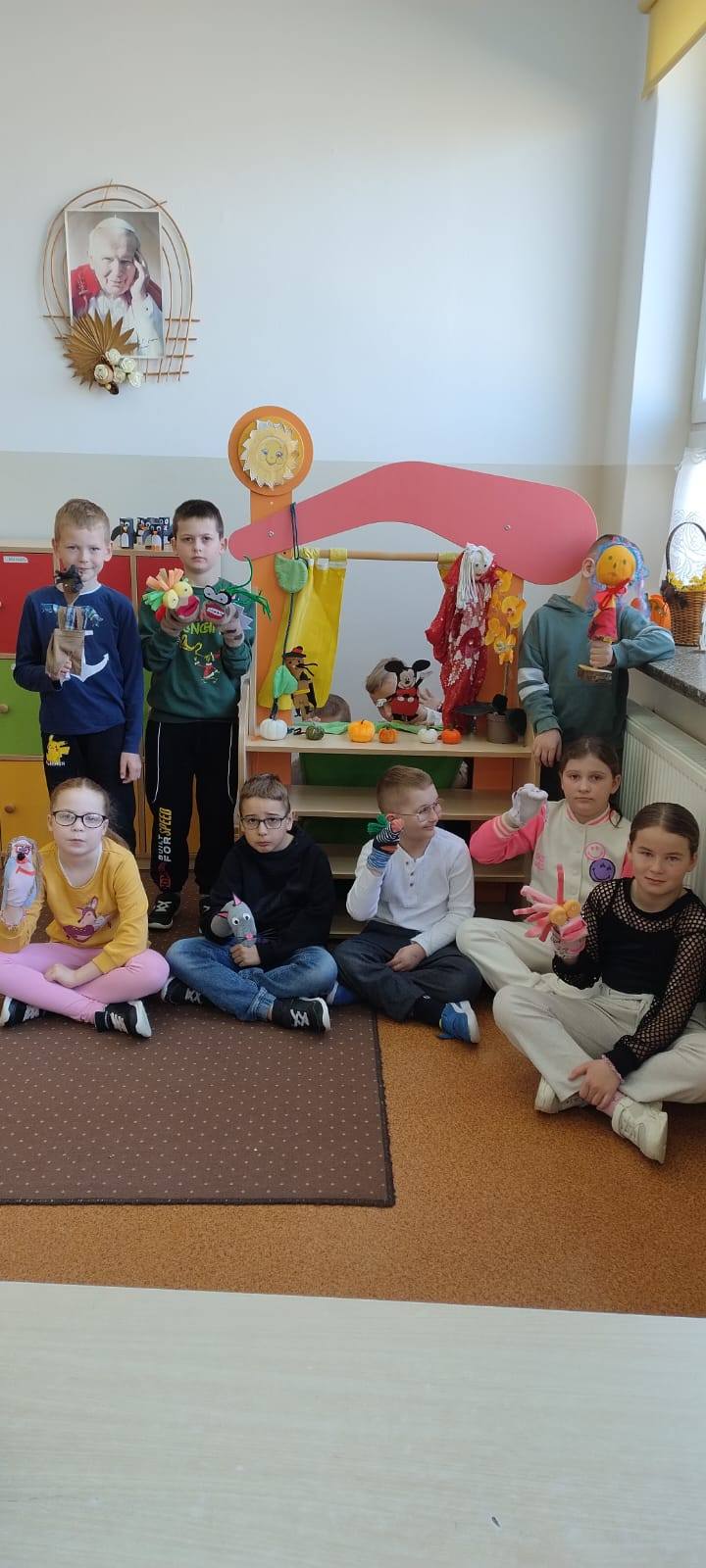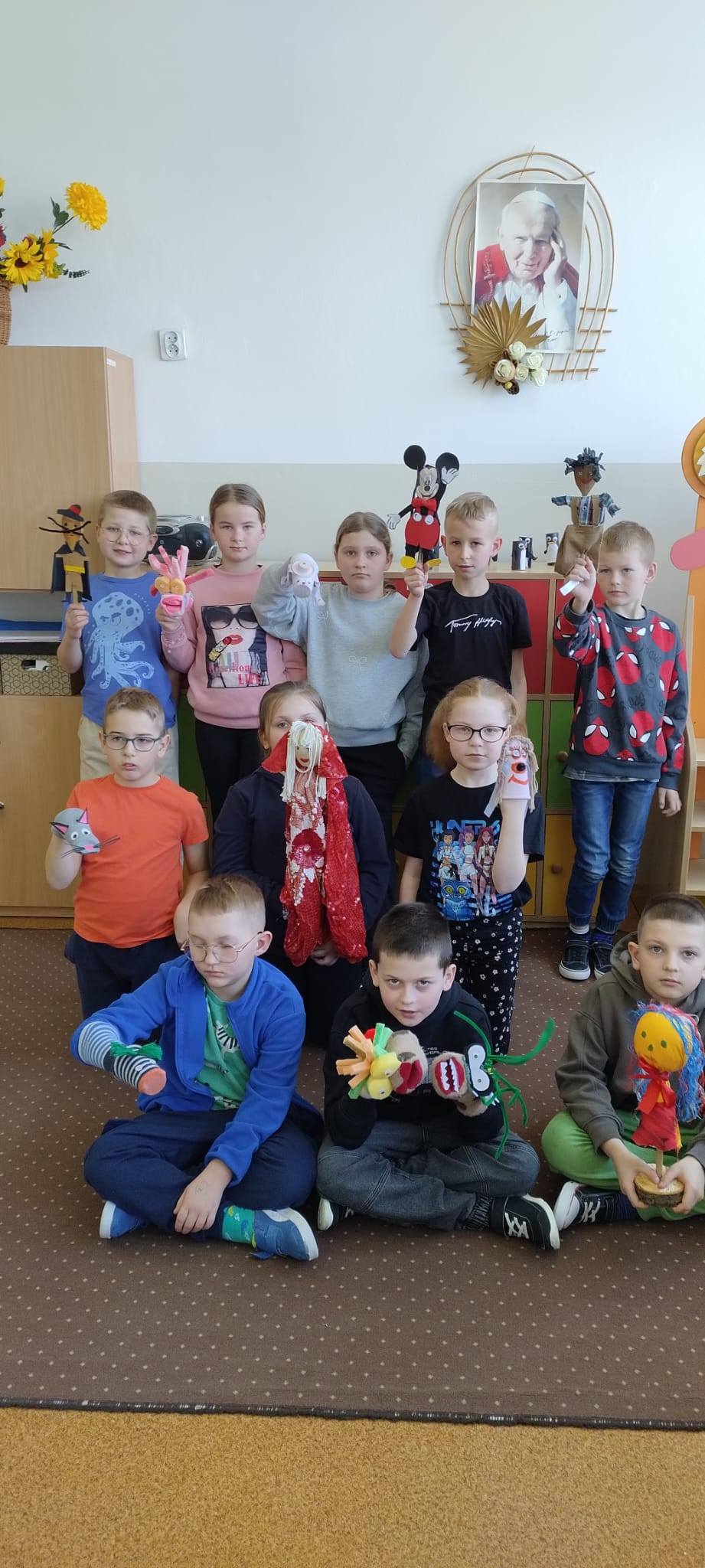 Po zakończeniu cyklu zajęć uczniowie przygotowali pacynki i kukiełki, które wykorzystali podczas zabawy w teatr. Dzieci organizowały własne przedstawienia, poszerzając słownictwo związane z teatrem.