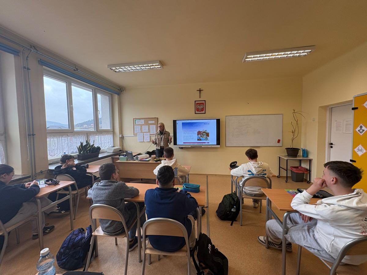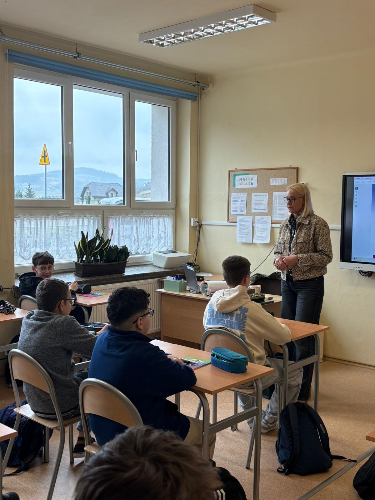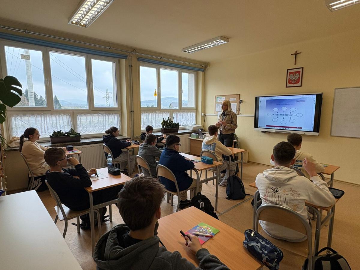 Uczniowie klasy VII wzięli udział w spotkaniu z przedstawicielem Zakładu Ubezpieczeń Społecznych, panią Anną Mieczkowską, w ramach projektu „Projekt z ZUS”. Projekt jest przeznaczony dla uczniów szkół podstawowych i ma na celu uświadomienie młodym ludziom, dlaczego warto podlegać ubezpieczeniom społecznym oraz na jakie świadczenia można liczyć przy regularnym opłacaniu składek. Podczas zajęć uczniowie poznali podstawy systemu ubezpieczeń społecznych oraz obowiązki i prawa ubezpieczonych, płatników i świadczeniobiorców.