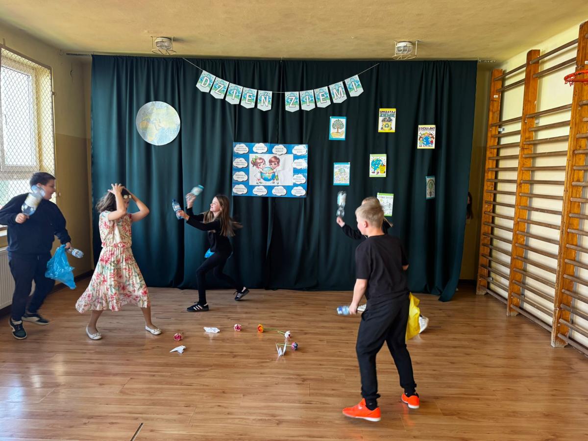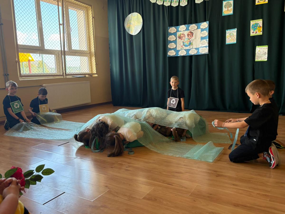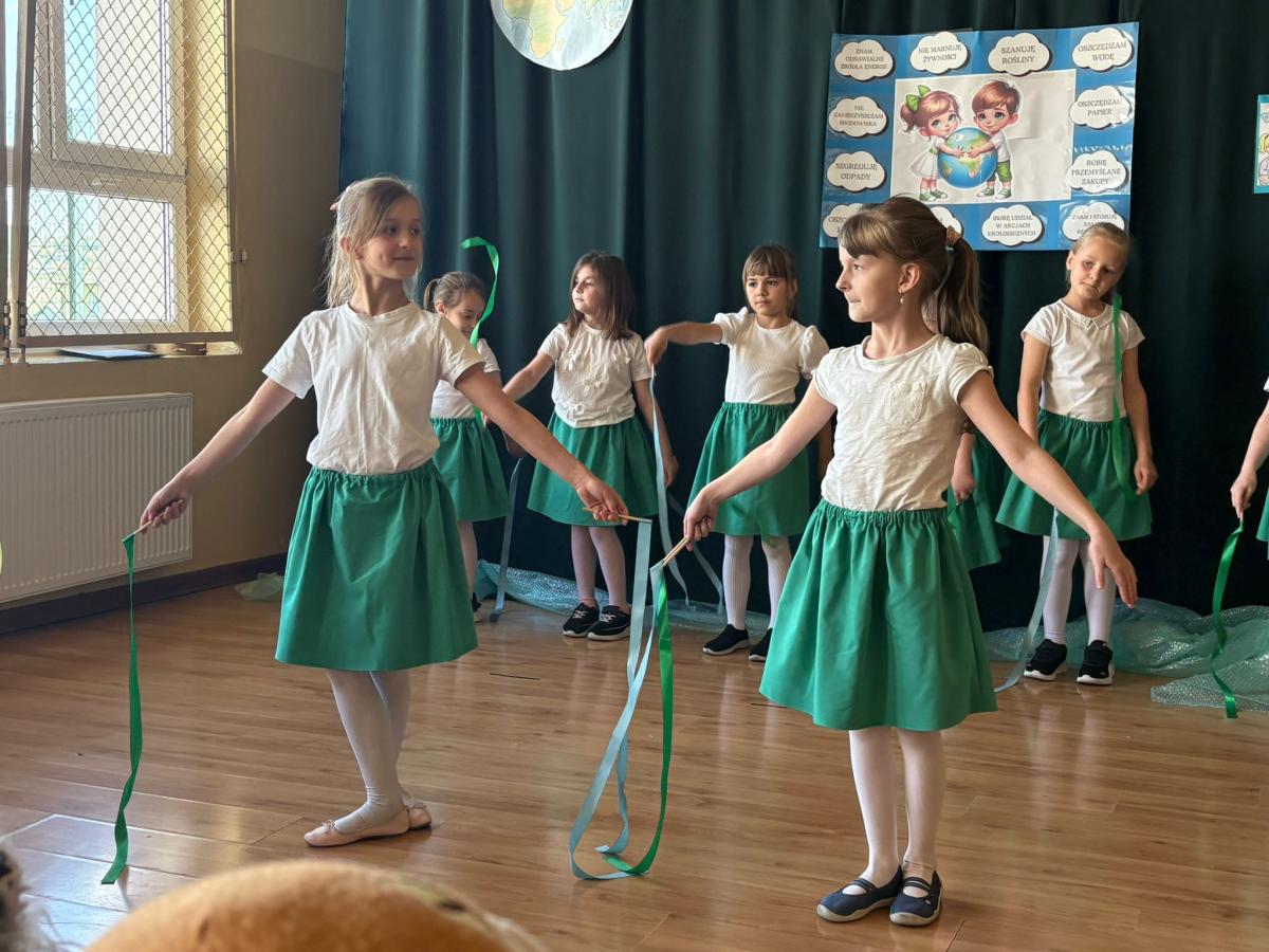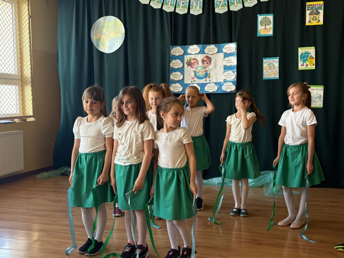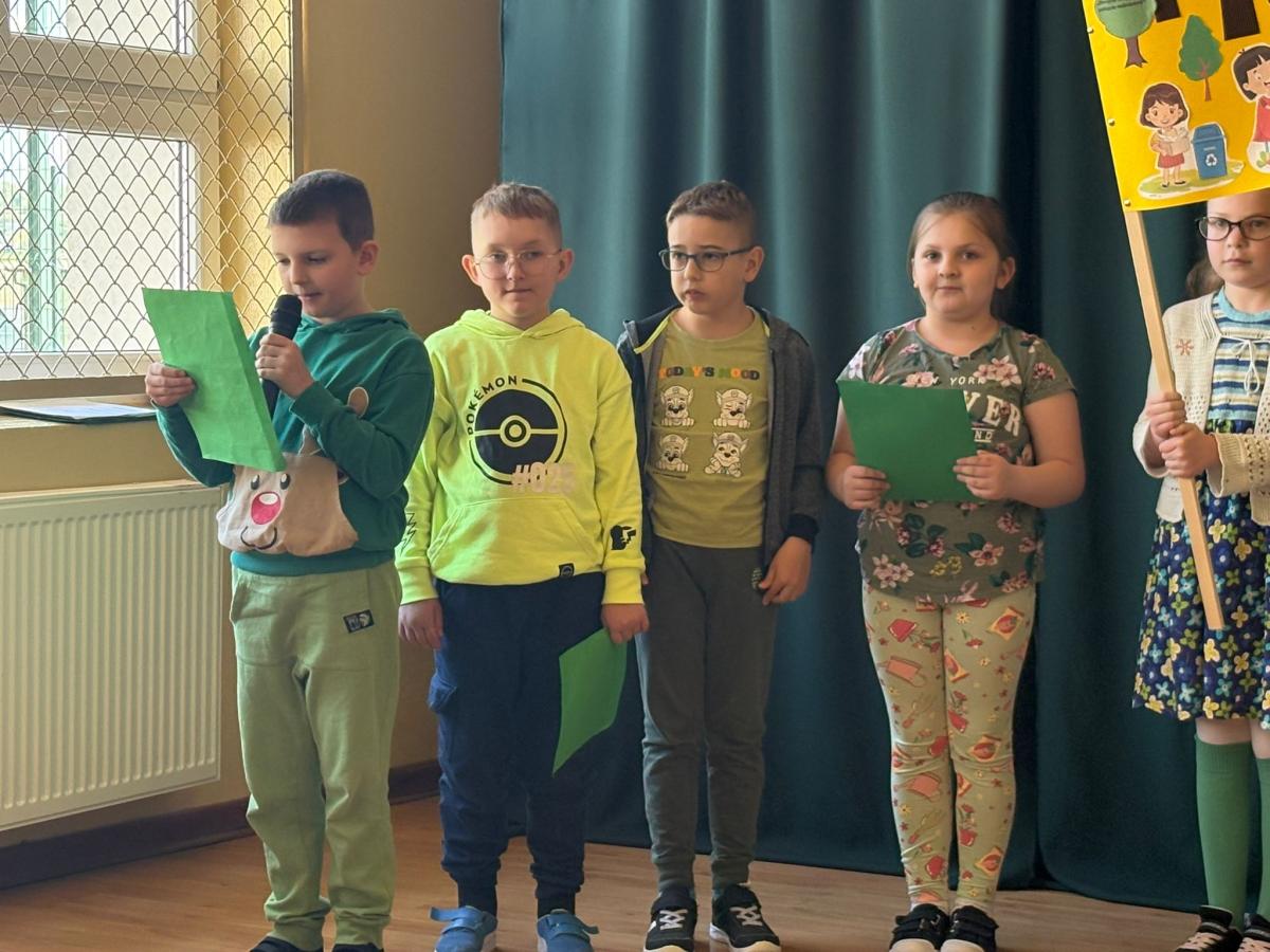 Oddział zerowy zaprezentował piękną scenkę leśną, ukazującą problem zanieczyszczenia i niszczenia środowiska. Dzieci wystąpiły w barwnych strojach przypominających zwierzęta leśne. Klasa pierwsza wykonała taniec o tematyce ekologicznej do muzyki Michaela Jacksona. Klasa czwarta przedstawiła pantomimę obrazującą powstanie Ziemi, negatywny wpływ działalności człowieka oraz działania związane z recyklingiem i odbudową środowiska. Klasa piąta przygotowała „wakacyjną” scenkę dotyczącą ochrony przyrody. Na zakończenie apelu klasa ósma, po przedstawieniu swojego hasła, urządziła mini-warsztaty poświęcone zasadom prawidłowej segregacji odpadów.