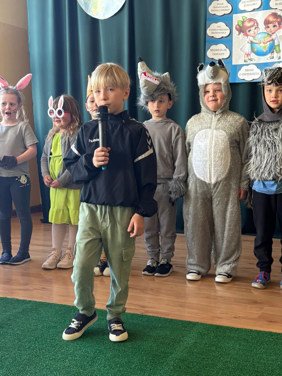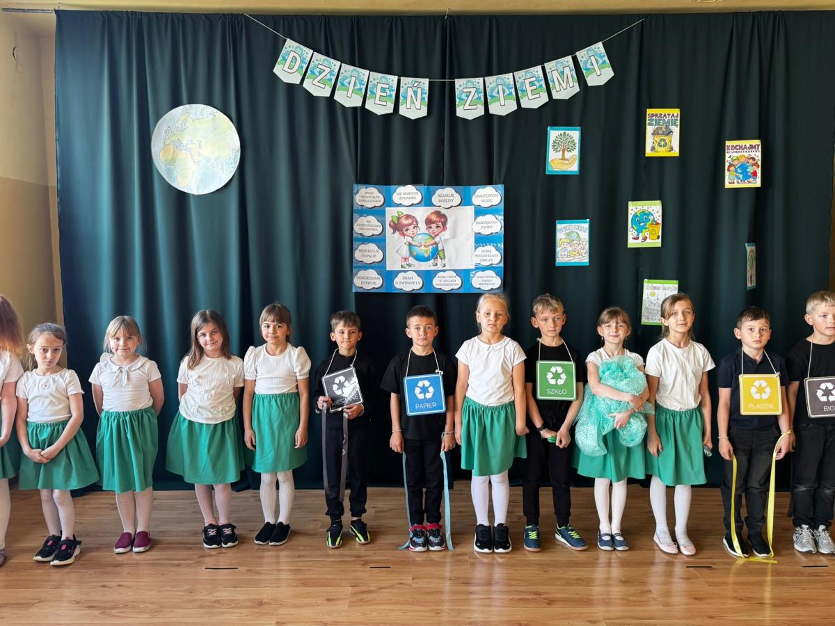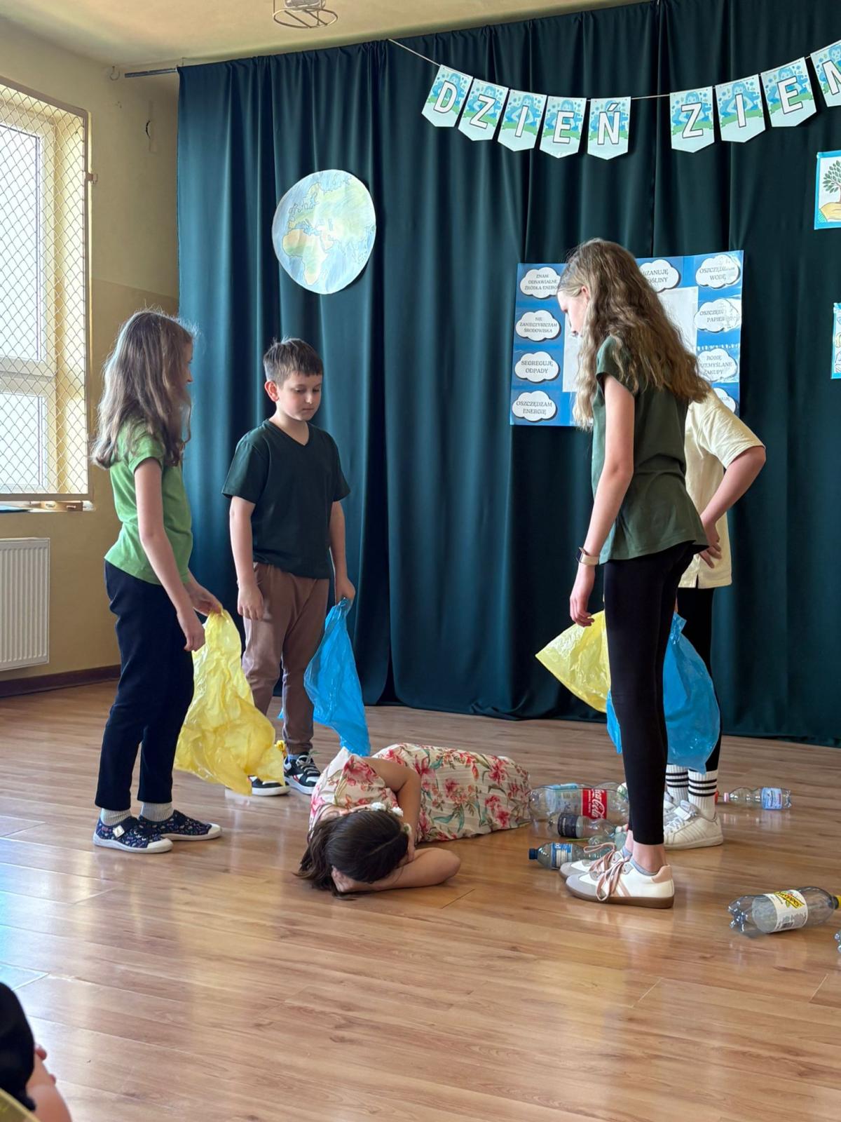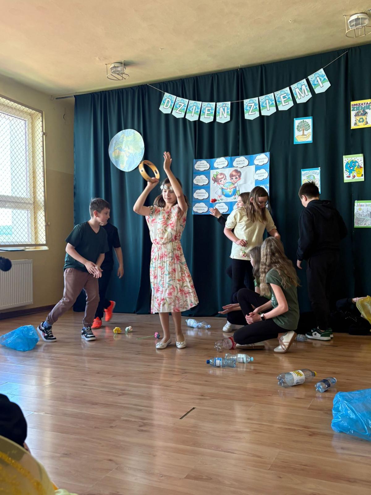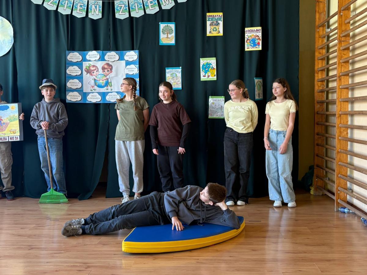 Oddział zerowy zaprezentował piękną scenkę leśną, ukazującą problem zanieczyszczenia i niszczenia środowiska. Dzieci wystąpiły w barwnych strojach przypominających zwierzęta leśne. Klasa pierwsza wykonała taniec o tematyce ekologicznej do muzyki Michaela Jacksona. Klasa czwarta przedstawiła pantomimę obrazującą powstanie Ziemi, negatywny wpływ działalności człowieka oraz działania związane z recyklingiem i odbudową środowiska. Klasa piąta przygotowała „wakacyjną” scenkę dotyczącą ochrony przyrody. Na zakończenie apelu klasa ósma, po przedstawieniu swojego hasła, urządziła mini-warsztaty poświęcone zasadom prawidłowej segregacji odpadów.