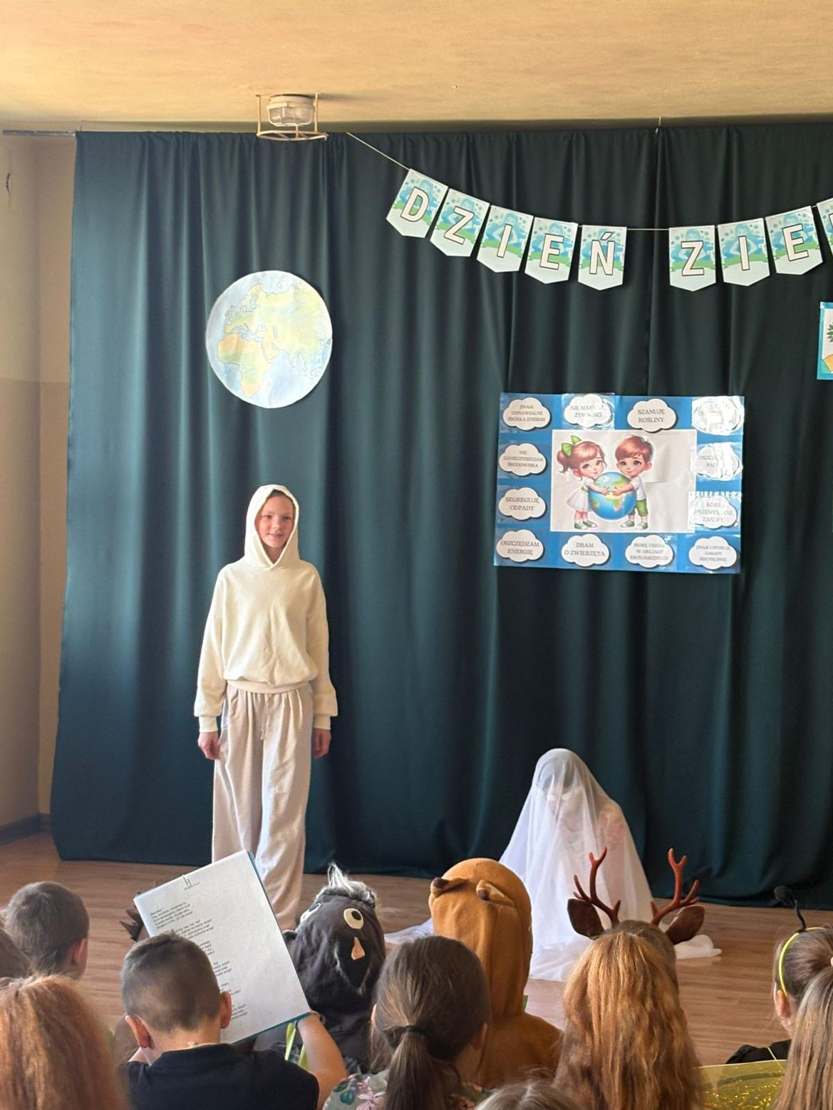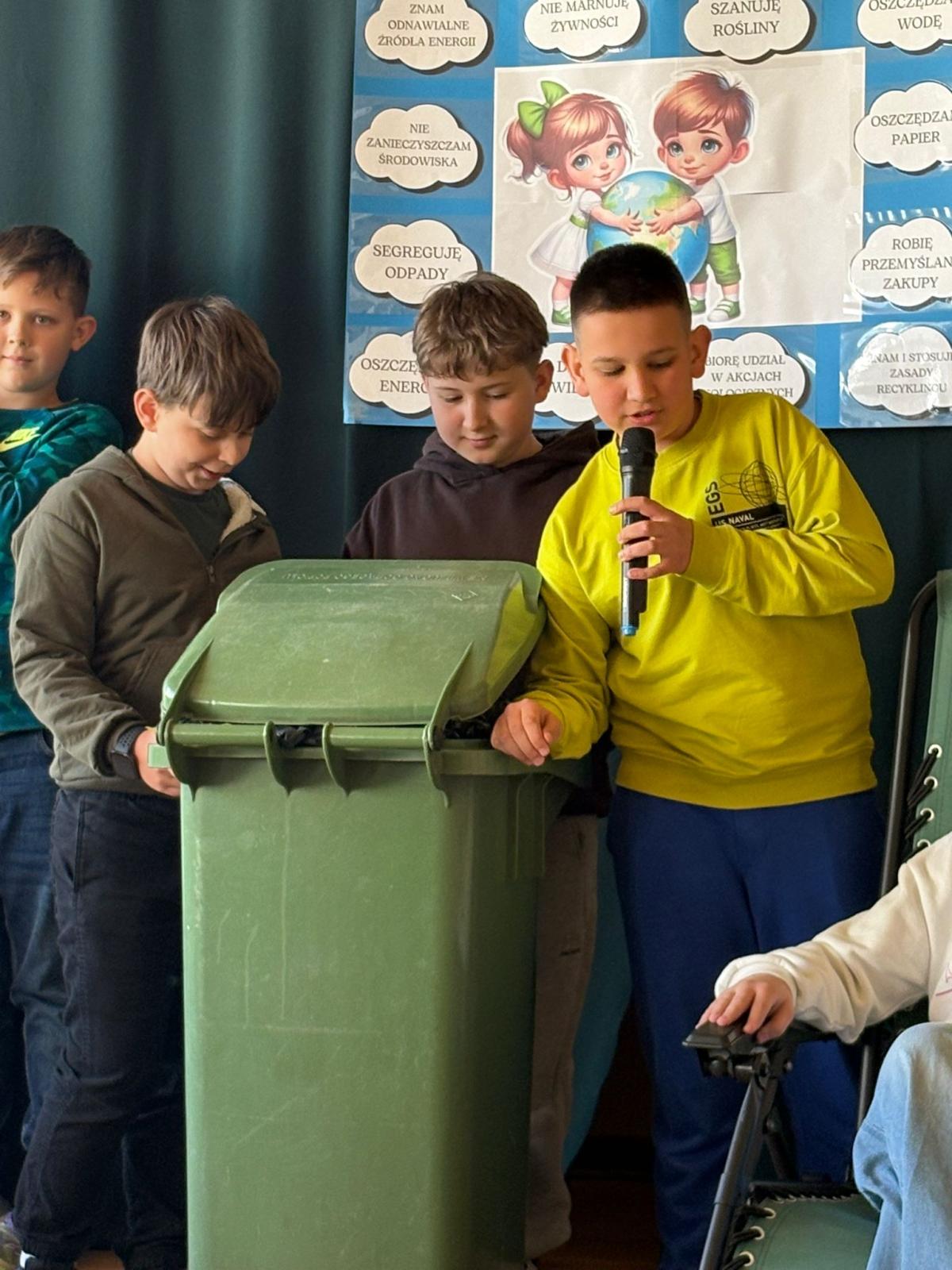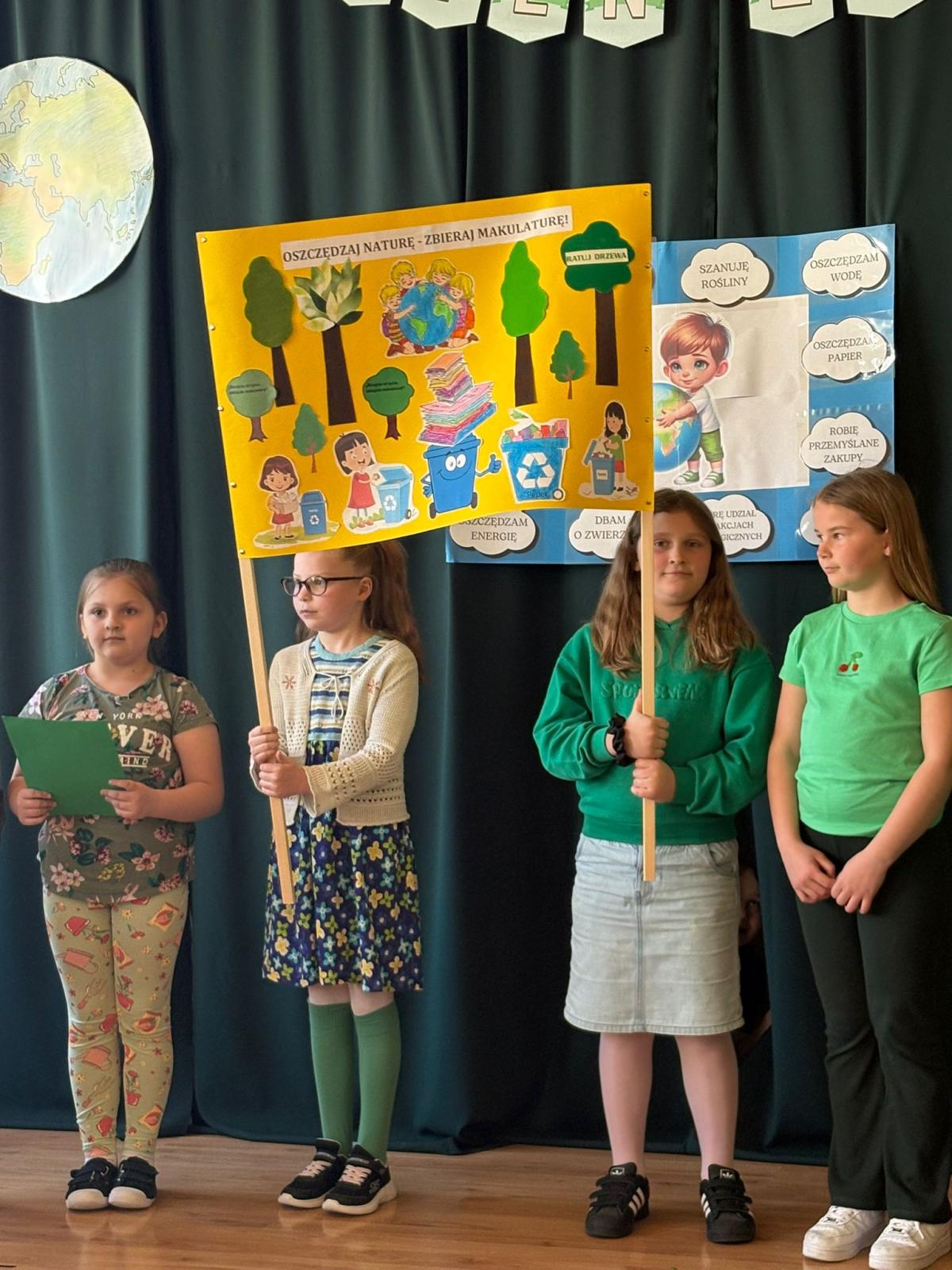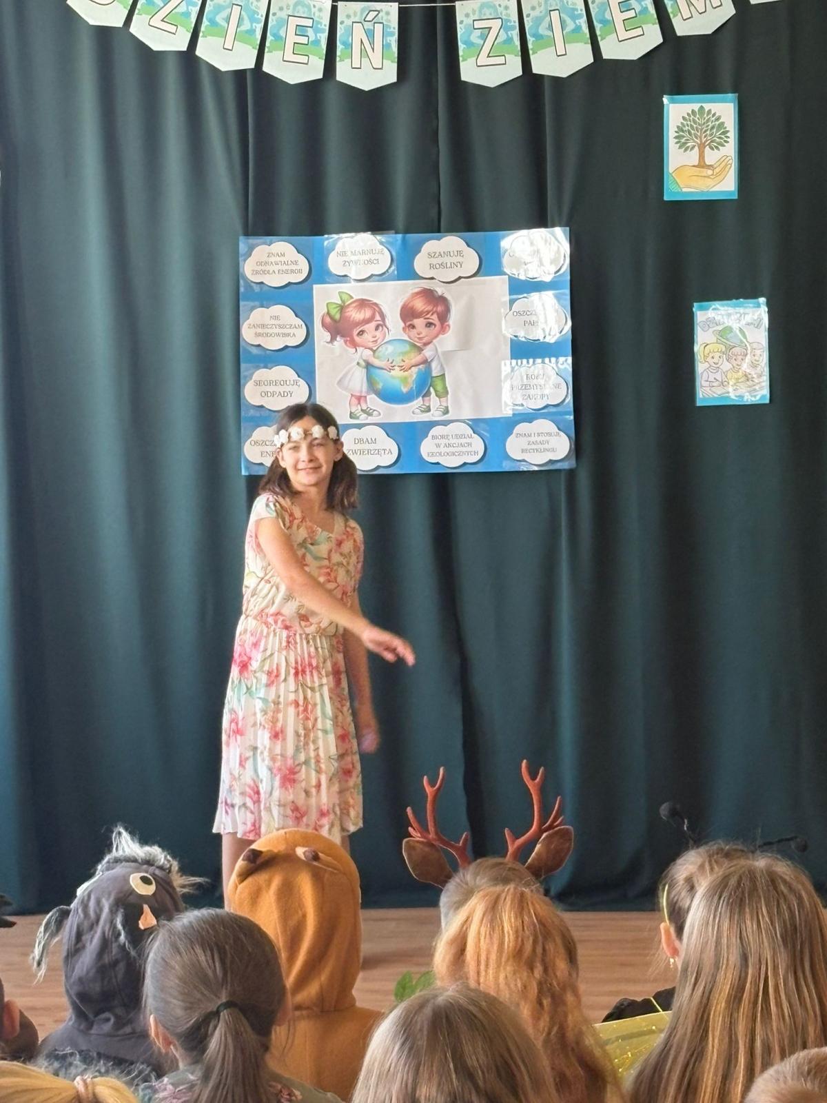 Oddział zerowy zaprezentował piękną scenkę leśną, ukazującą problem zanieczyszczenia i niszczenia środowiska. Dzieci wystąpiły w barwnych strojach przypominających zwierzęta leśne. Klasa pierwsza wykonała taniec o tematyce ekologicznej do muzyki Michaela Jacksona. Klasa czwarta przedstawiła pantomimę obrazującą powstanie Ziemi, negatywny wpływ działalności człowieka oraz działania związane z recyklingiem i odbudową środowiska. Klasa piąta przygotowała „wakacyjną” scenkę dotyczącą ochrony przyrody. Na zakończenie apelu klasa ósma, po przedstawieniu swojego hasła, urządziła mini-warsztaty poświęcone zasadom prawidłowej segregacji odpadów.
