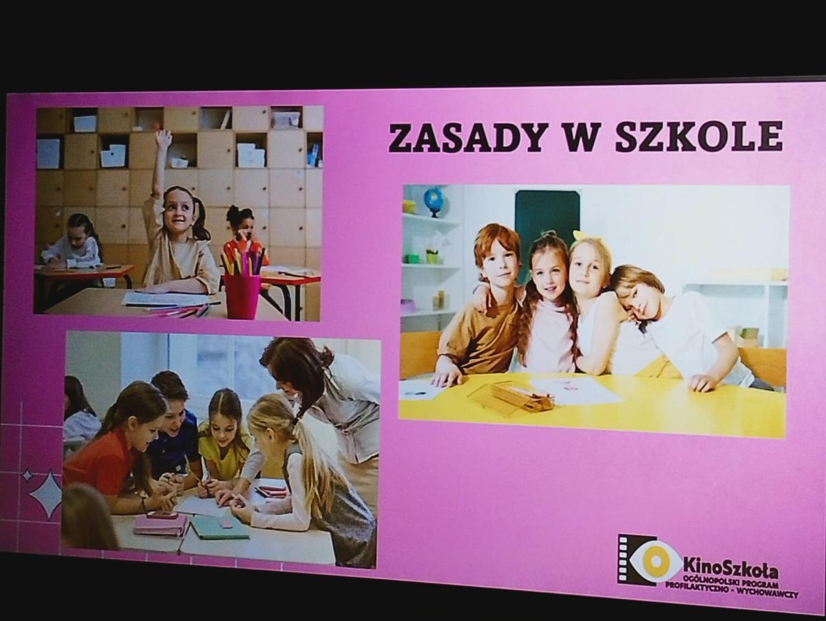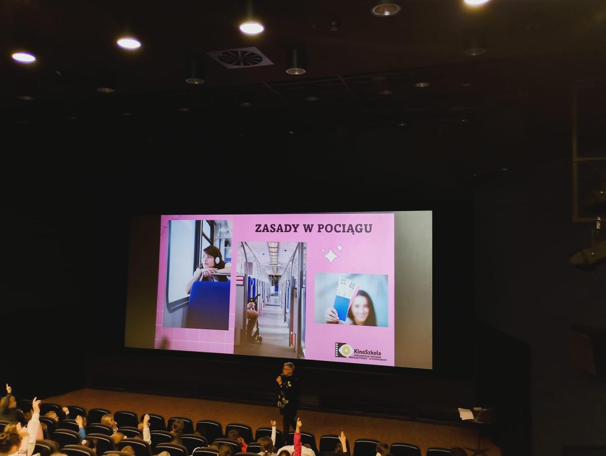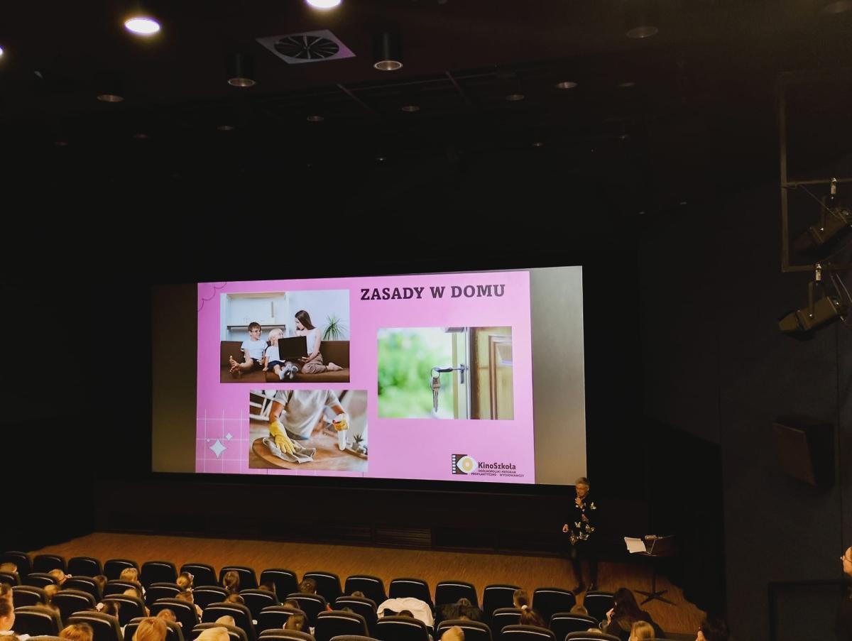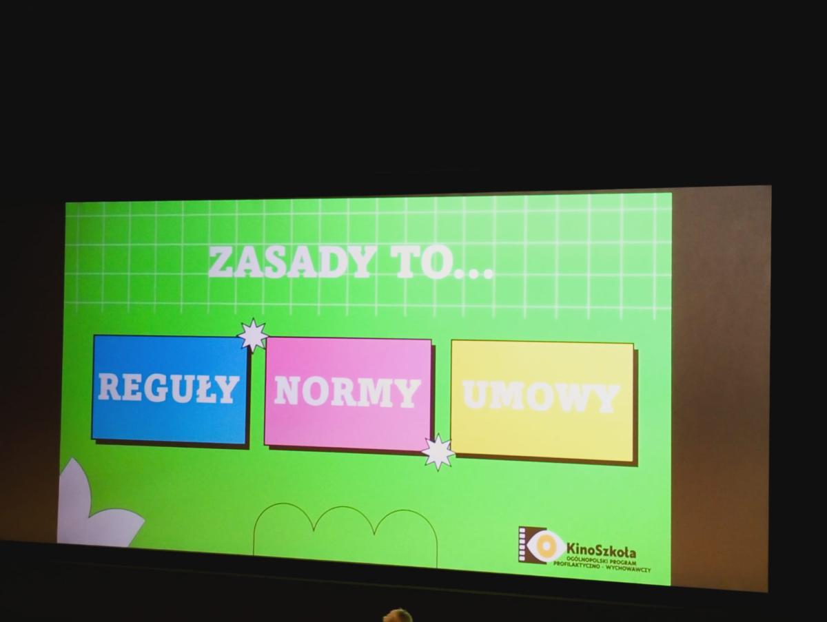 27 kwietnia 2026 r. uczniowie klas I – III po raz czwarty uczestniczyli w warsztatach profilaktyczno – wychowawczych w kinie Sokół. Dzisiejszy temat poruszał zasady, którymi każdy z nas powinien się kierować. Prowadząca warsztaty p. Barbara Porzucek przywitała się z wszystkimi uczestnikami. Następnie rozpoczęła warsztaty na temat „Po co nam zasady”. Przypomniała o prawach i obowiązkach każdego z nas, zapoznała również dzieci z tym, kto ustala zasady w domu, w szkole, w kinie, w środkach transportu … Dzieci chętnie brały udział dyskusji, ich wypowiedzi były trafne, a spostrzeżenia właściwe.